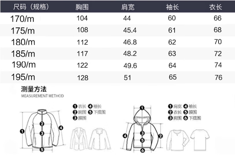 China (cm) 160-165/84-86 165-170 / 88-90 167-172 / 92-96 168-173 / 98-102 170-176 / 106-110