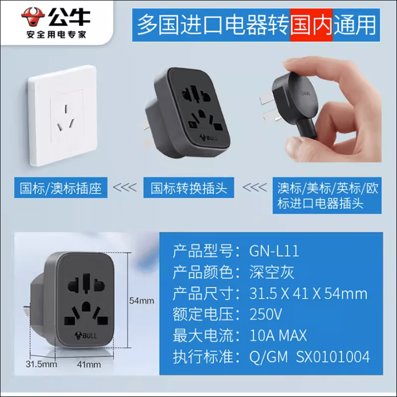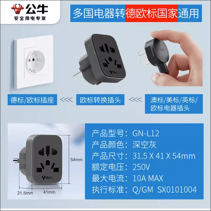 Bull socket converter plug European standard Italian standard Swiss standard European German, French, Italian and Swiss L01T-L01W L11-plug for domestic use