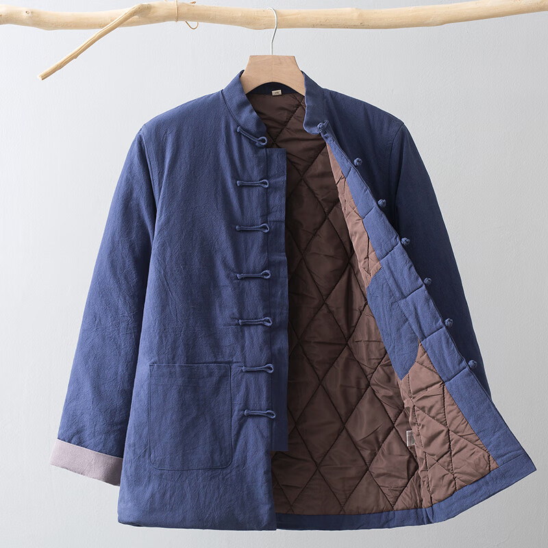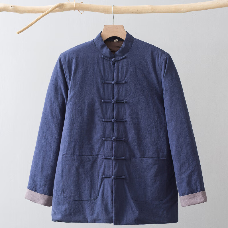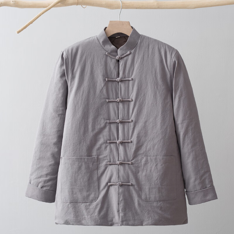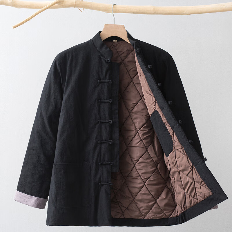 ROMON Winter Tang suit cotton-padded jacket for young men, Chinese-style men's clothing, Chinese-style retro buckle, middle-aged and elderly thickened warm cotton-padded jacket, black L 170 125-140Jin Jin equals 0.5 kg