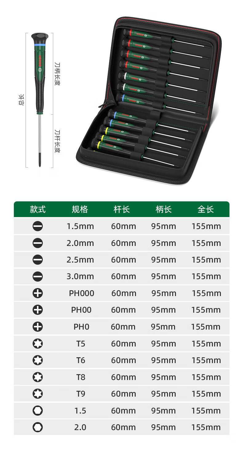 Bosch (BOSCH) precision screwdriver set, cross-shaped plum blossom clock screwdriver, small notebook repair tool, 13-piece precision screwdriver set