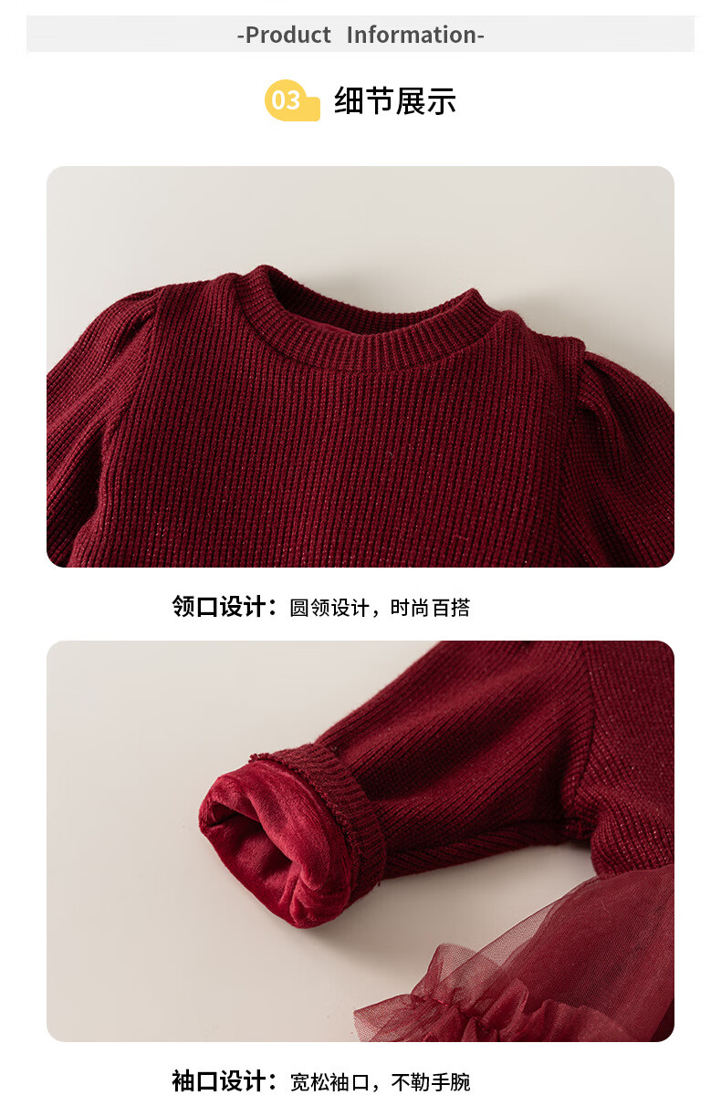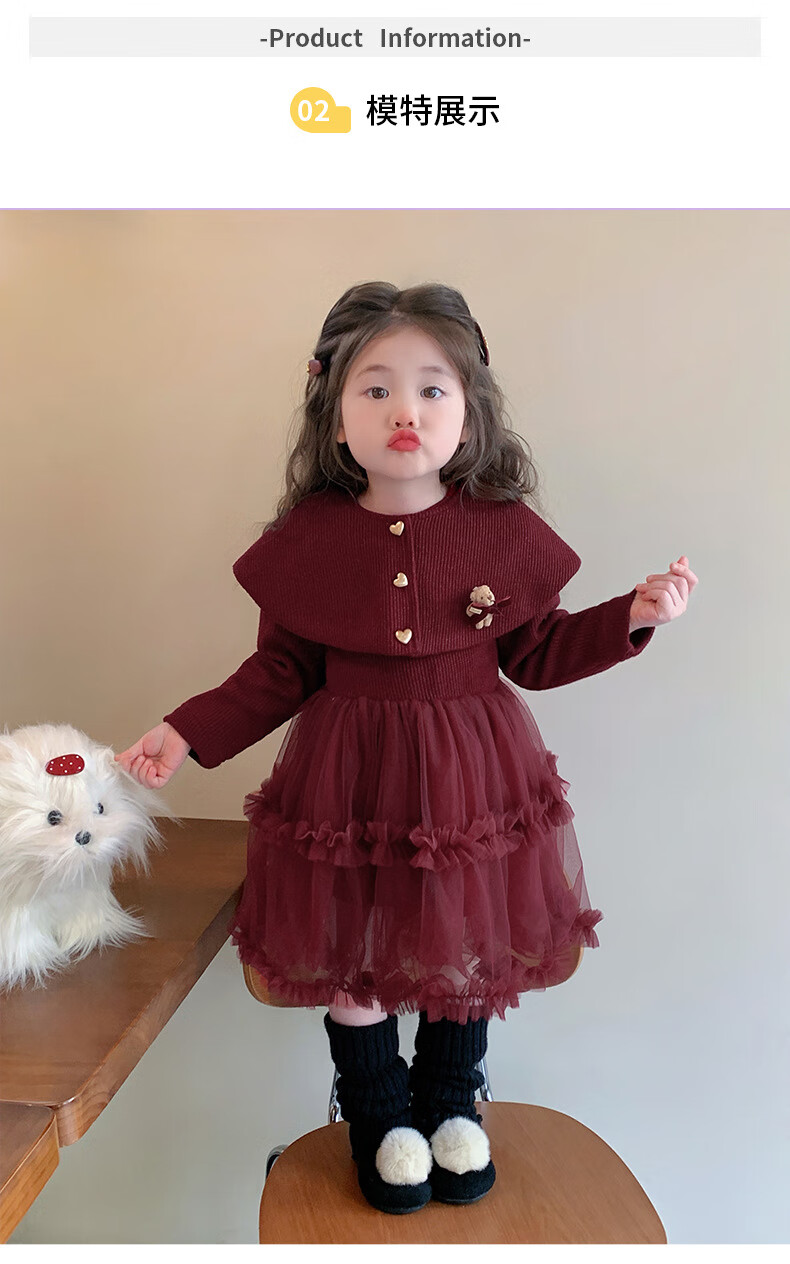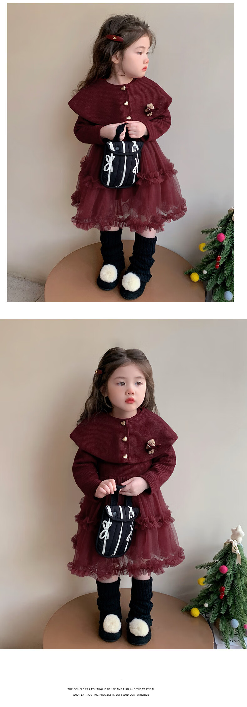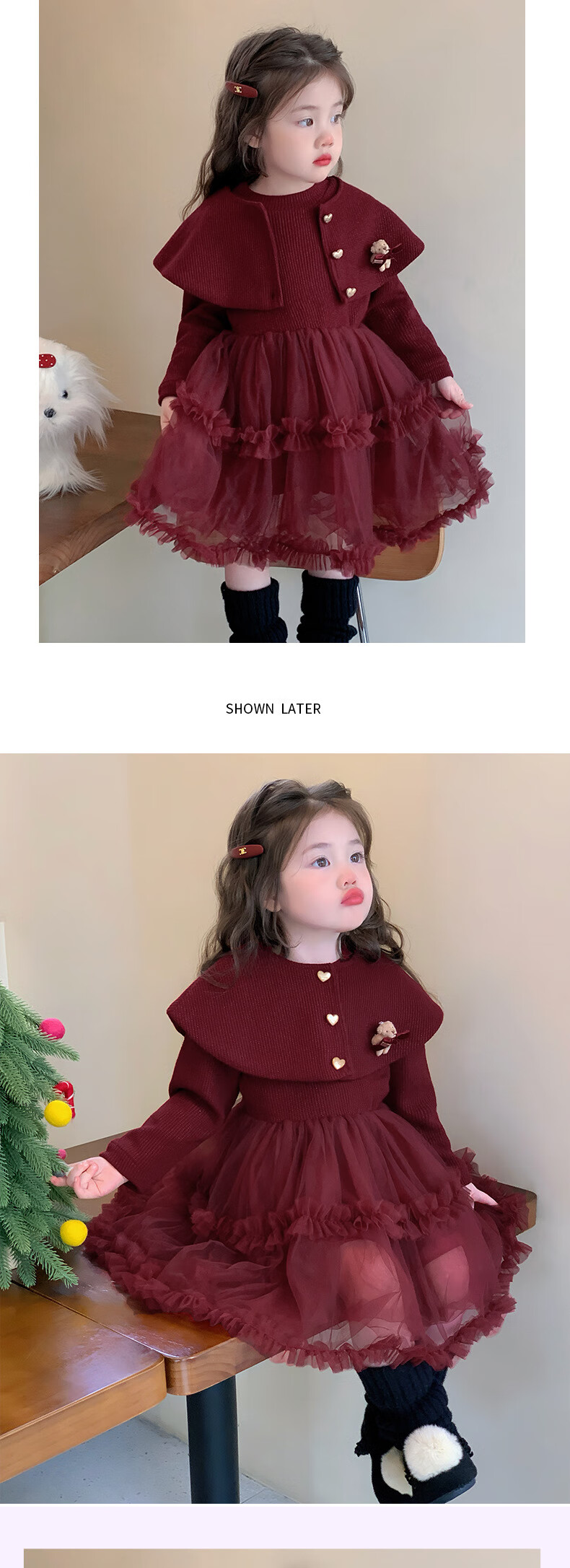 G.duck girls' velvet dress, autumn and winter fashionable red sweater skirt gauze skirt winter wear children's bear shawl princess dress red 90 cm