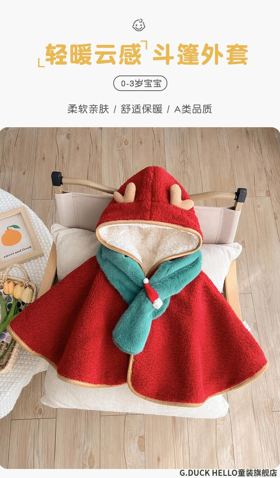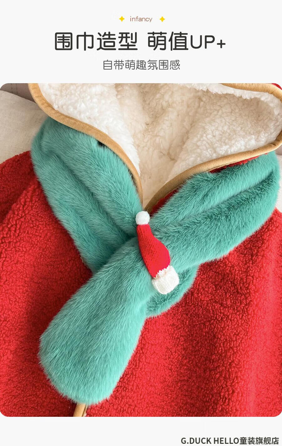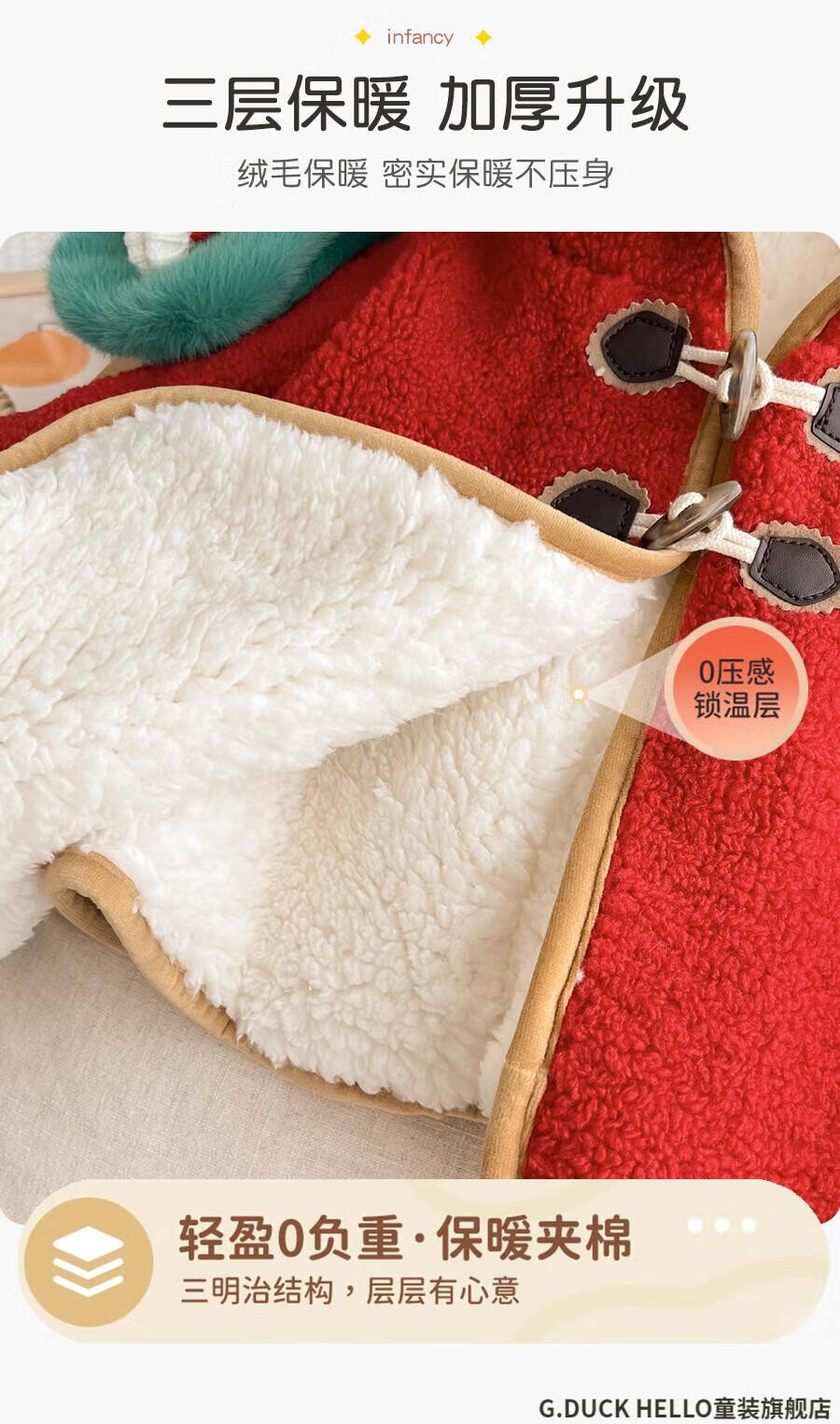 G.duck little yellow duck baby clothes winter velvet thickened cloak New Year's cloak baby outing clothes windproof New Year's greeting coat burgundy with scarf one size fits all 0-3 years old