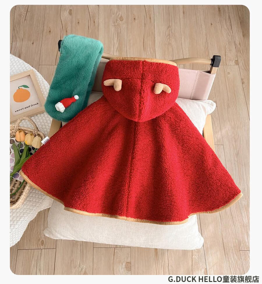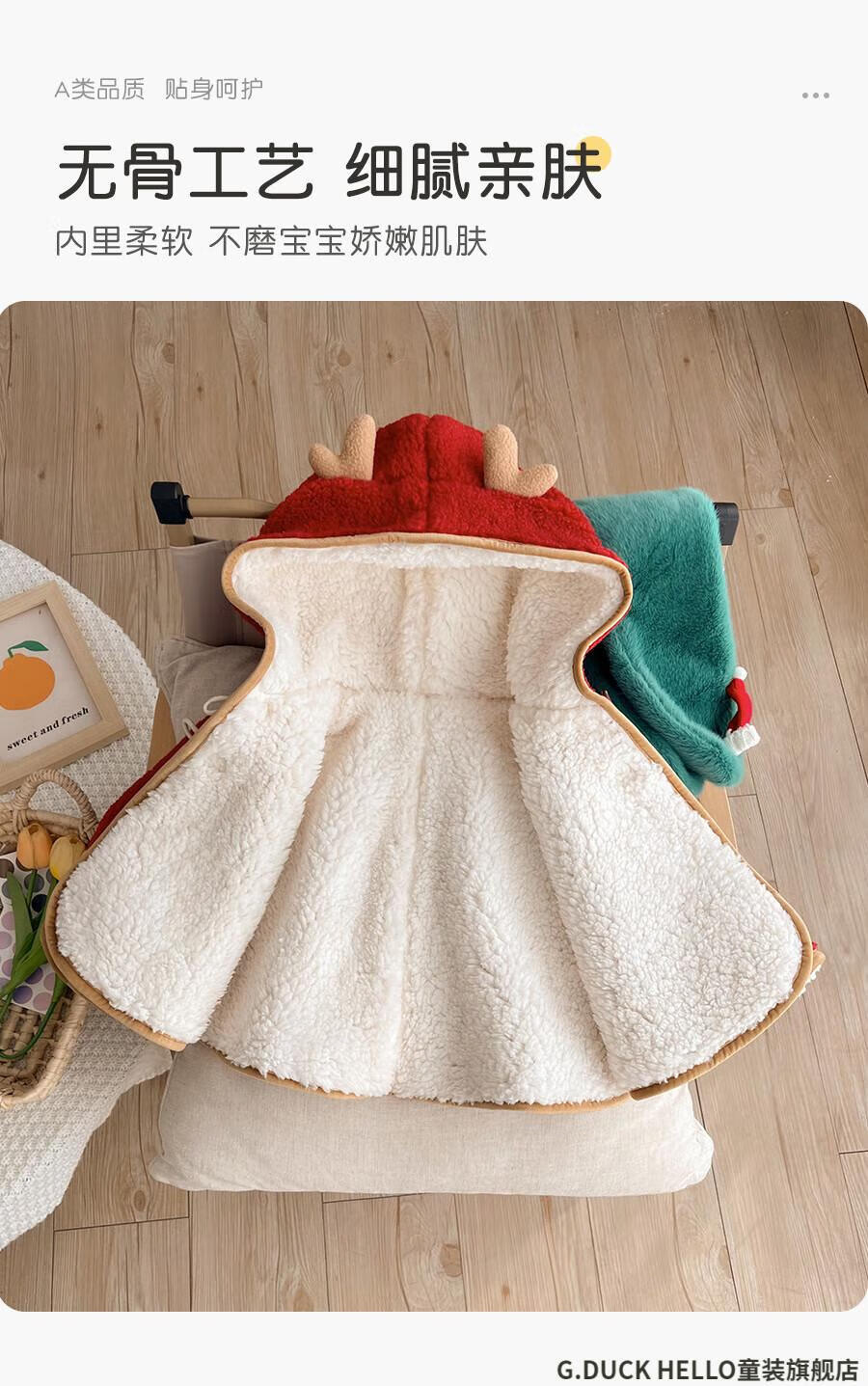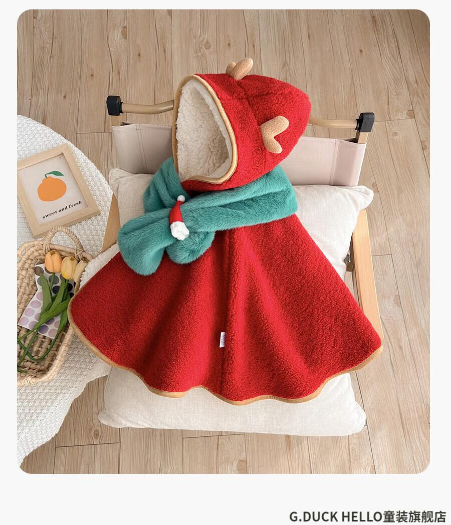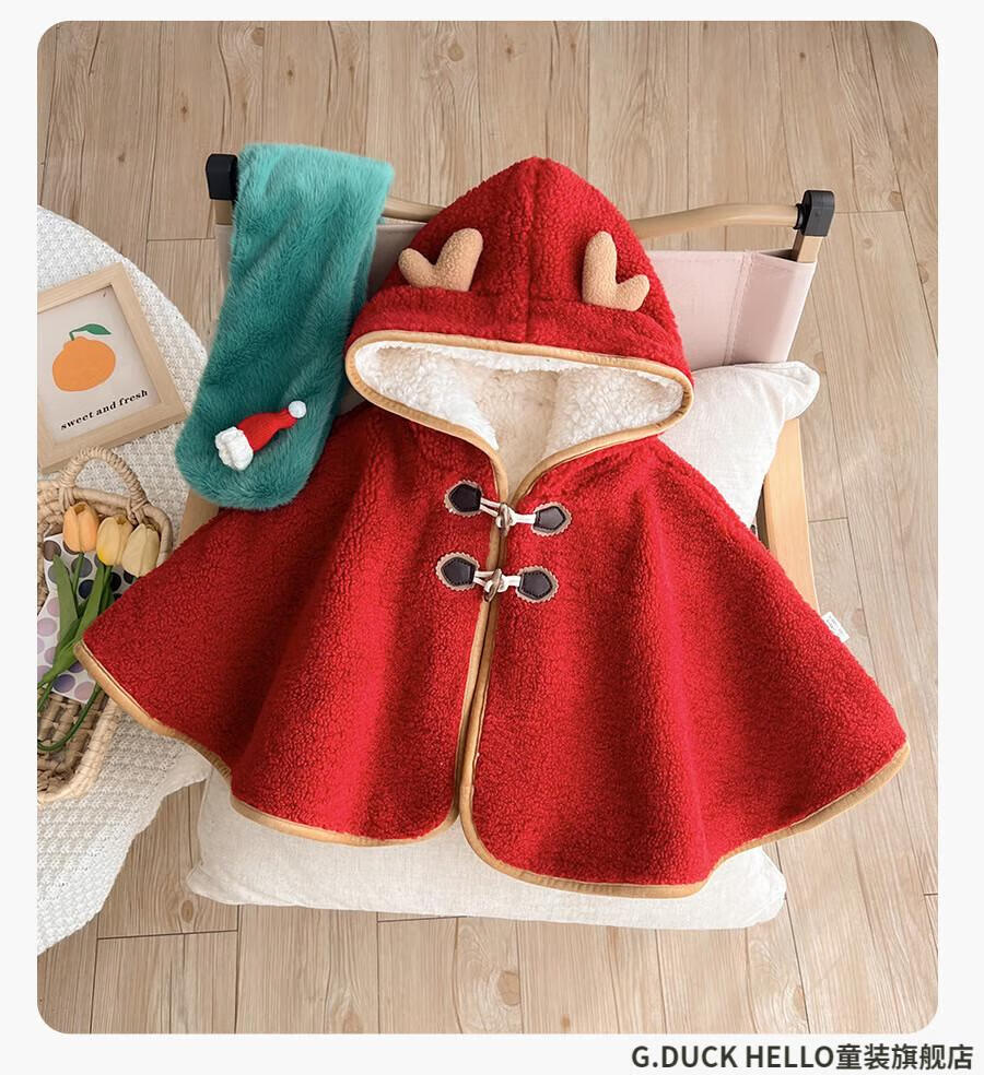 G.duck little yellow duck baby clothes winter velvet thickened cloak New Year's cloak baby outing clothes windproof New Year's greeting coat burgundy with scarf one size fits all 0-3 years old