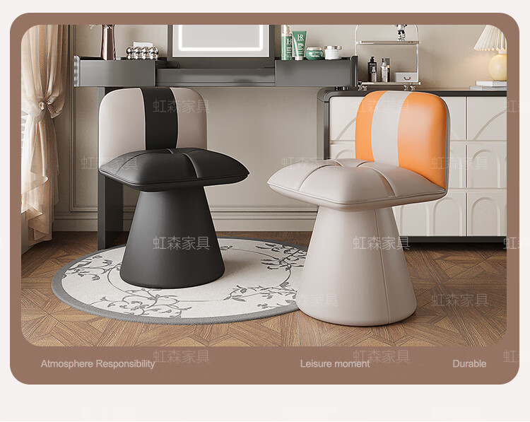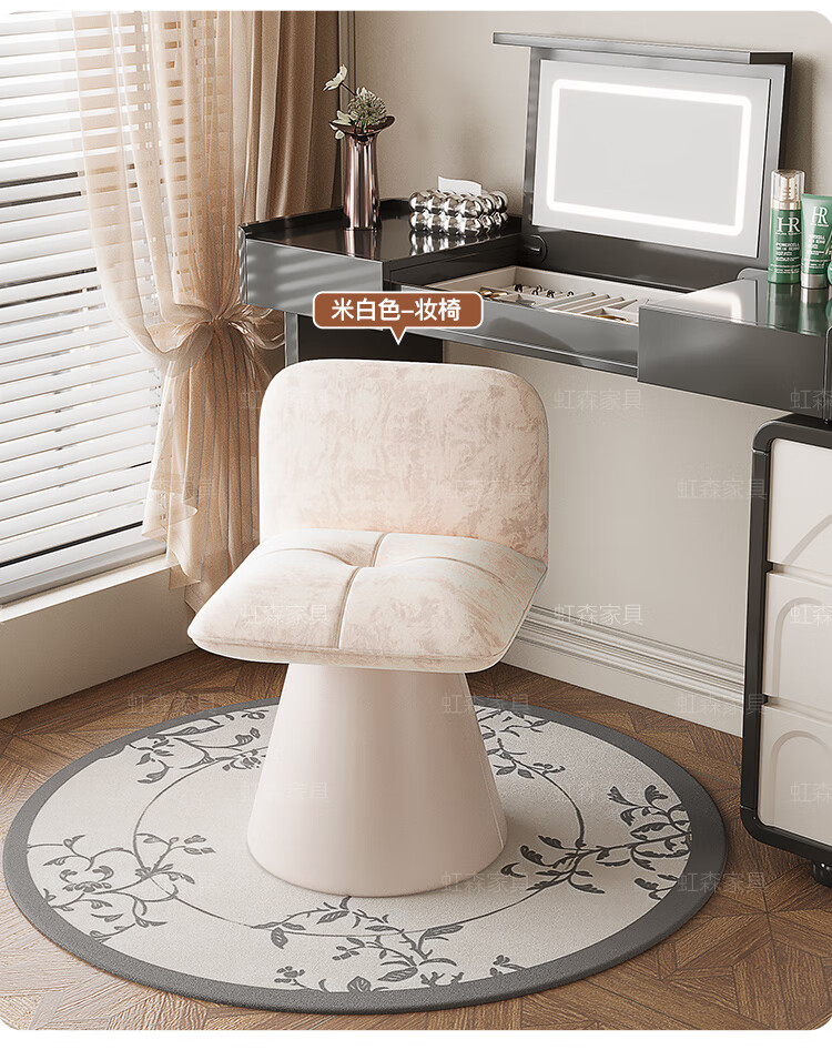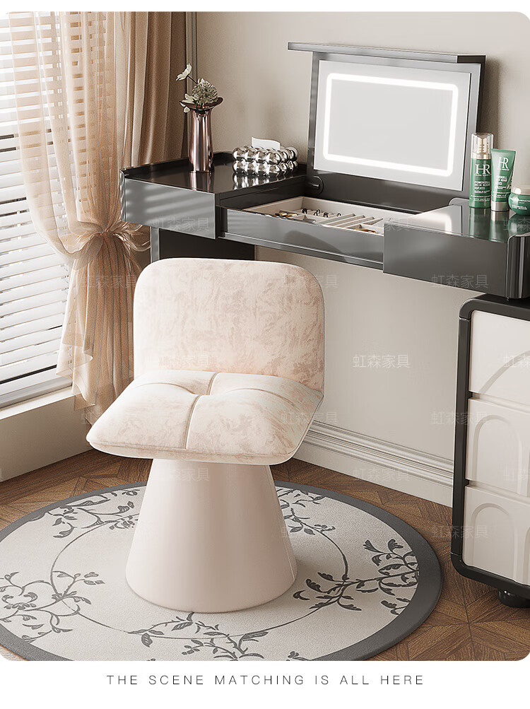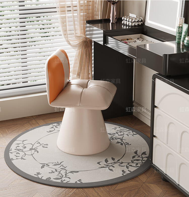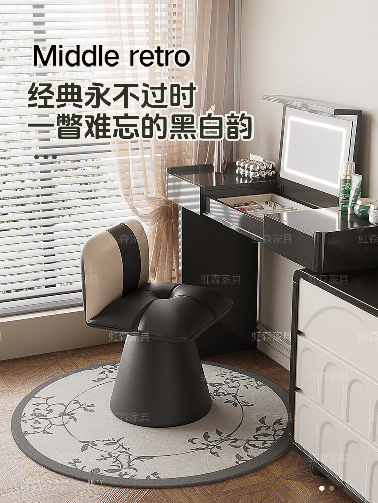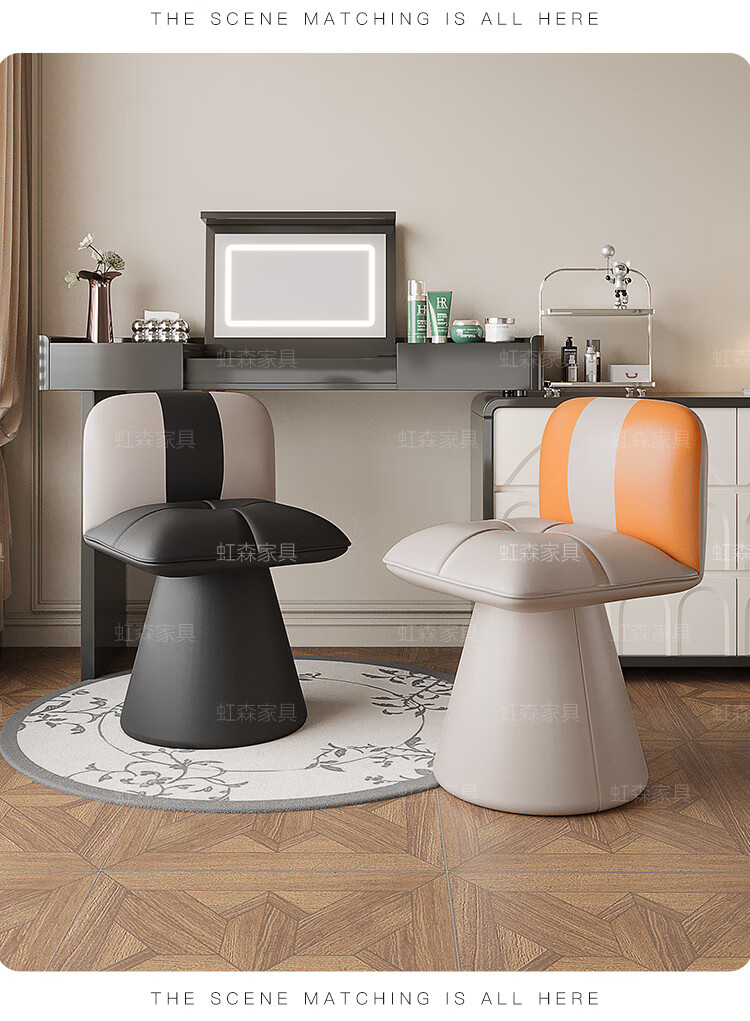 Hongsen dressing stool bedroom simple 2025 new dressing table chair back home minimalist black and white high-end manicure chair black and white color matching cat claw leather dressing stool