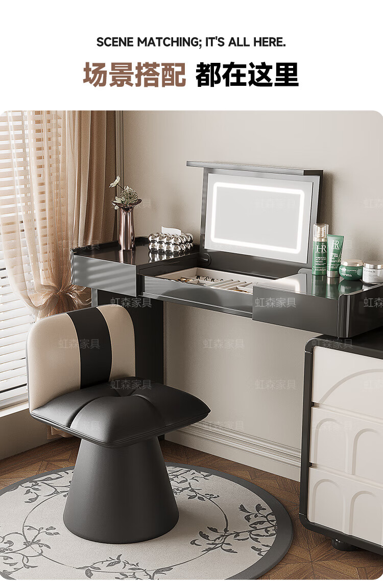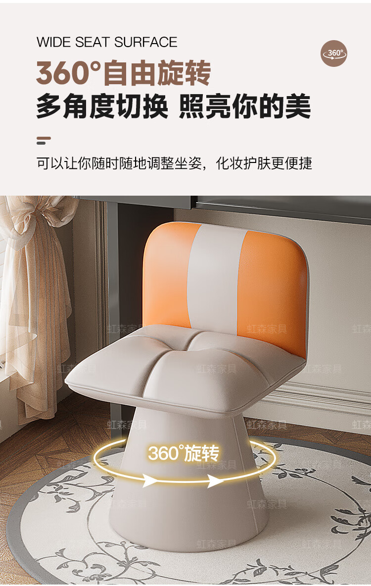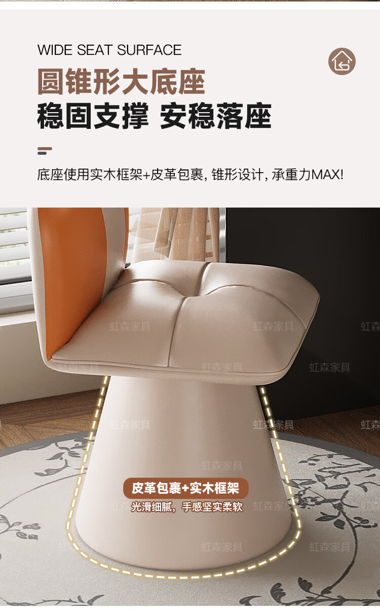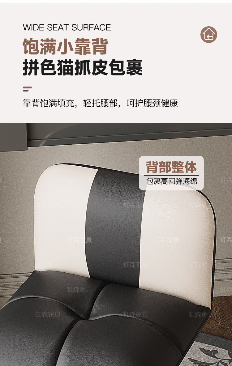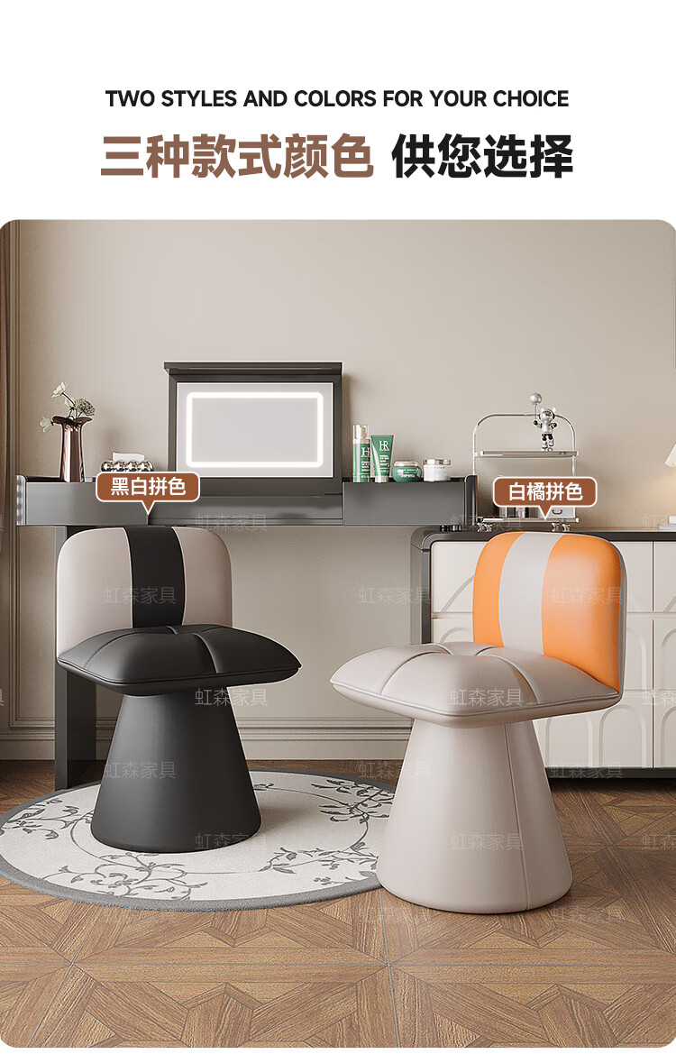 Hongsen dressing stool bedroom simple 2025 new dressing table chair back home minimalist black and white high-end manicure chair black and white color matching cat claw leather dressing stool