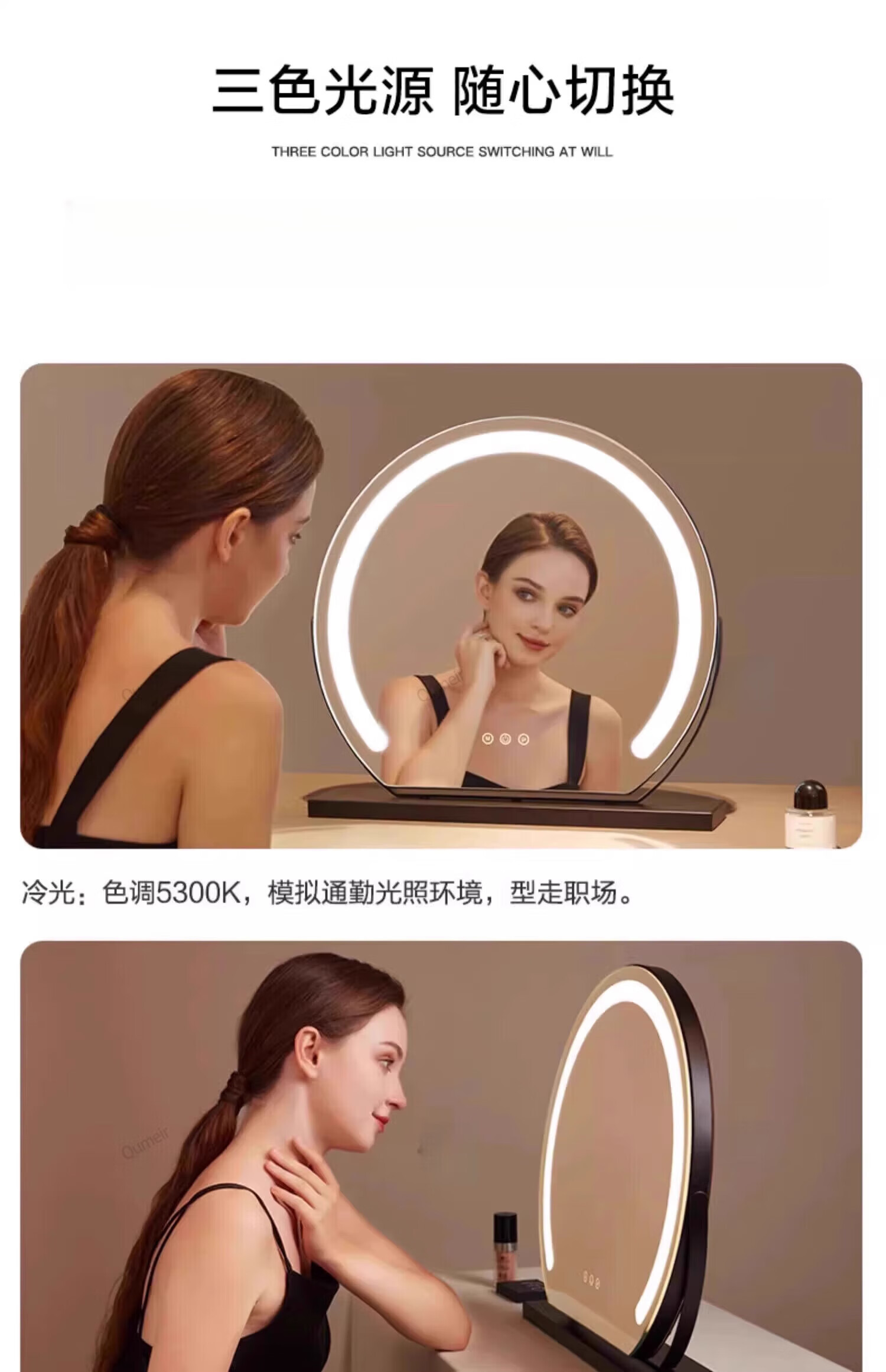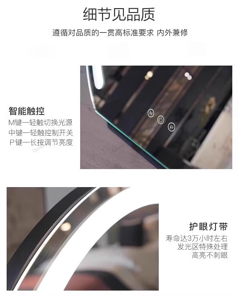 Mortina German bedroom lighted makeup mirror LED fill light rechargeable lamp desktop rotatable makeup table mirror imported from Germany 50cm champagne gold rechargeable