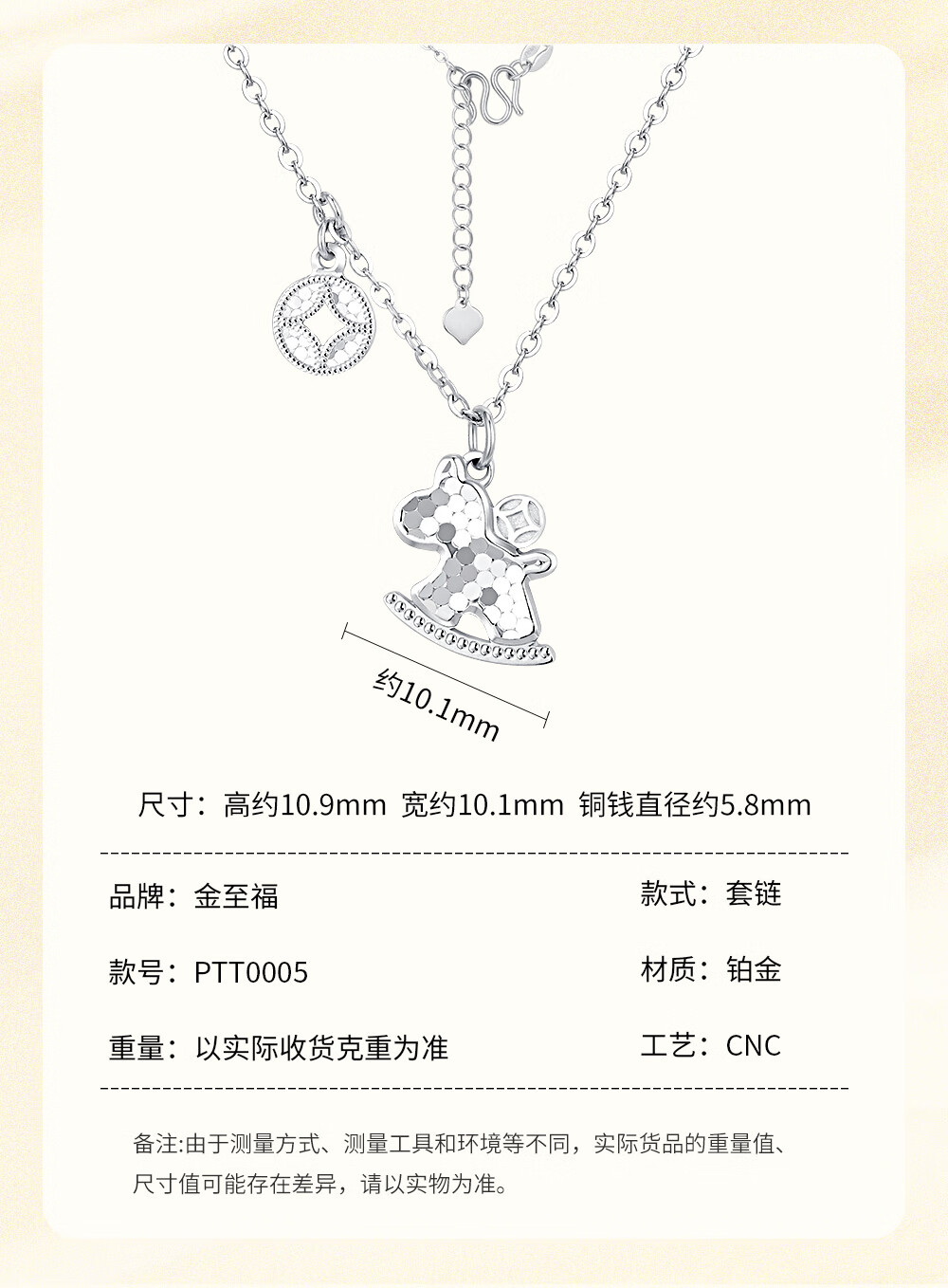 Jin Zhifu will make money soon, platinum necklace pendant for women PT950 platinum clavicle chain for wife and girlfriend as a Valentine's Day gift, about 4.85 grams (refund for more)