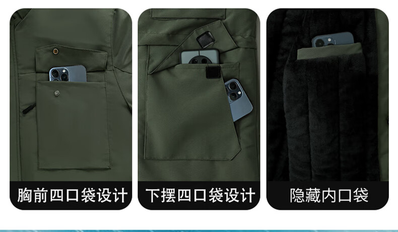 ROMON outdoor cotton coat, men's assault cotton work clothes, cotton jacket, labor protection uniform, cotton coat, winter thickening, cold-proof, windproof and warm, 607 military green velvet-lined cotton coat, one size too small, S 165 size (95-105 Jin Jin is equal to 0.5 kg)