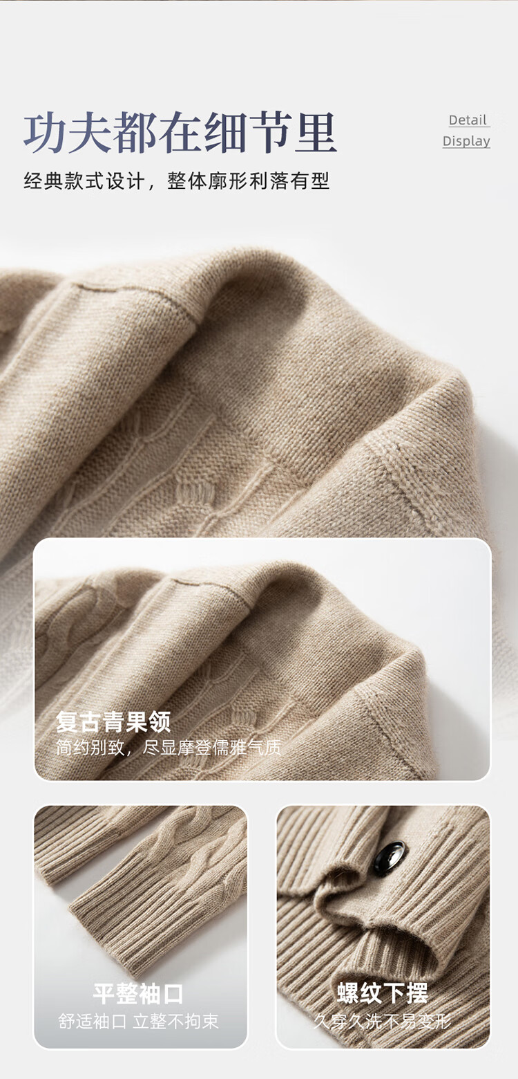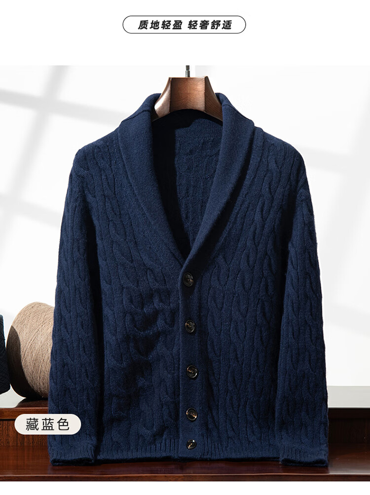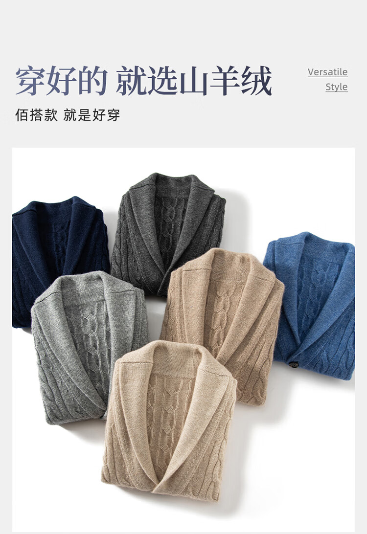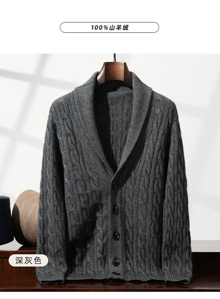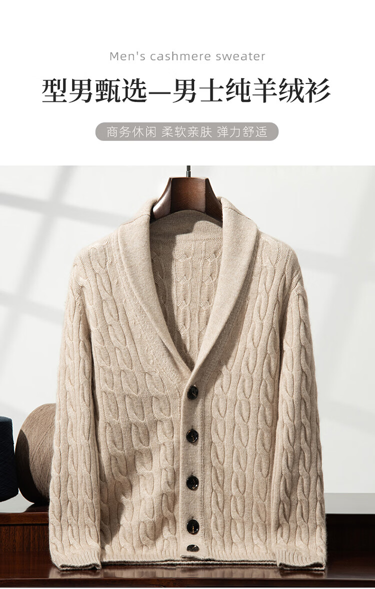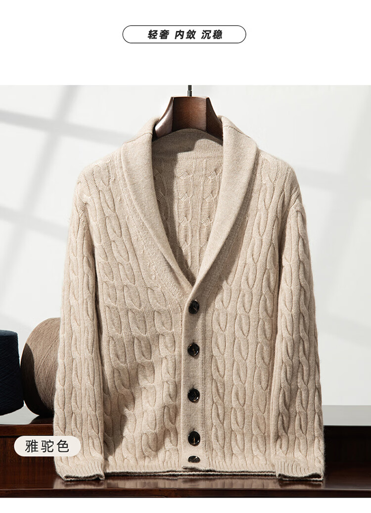 XJSGS international high-end brand autumn and winter heavyweight thickened green fruit collar goat wool cardigan men's new wool sweater jacket high-end dark camel heavyweight counter same style thickened winter style XL