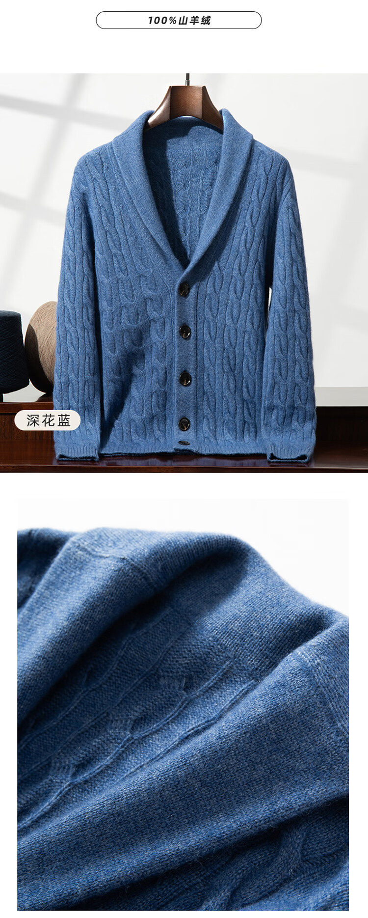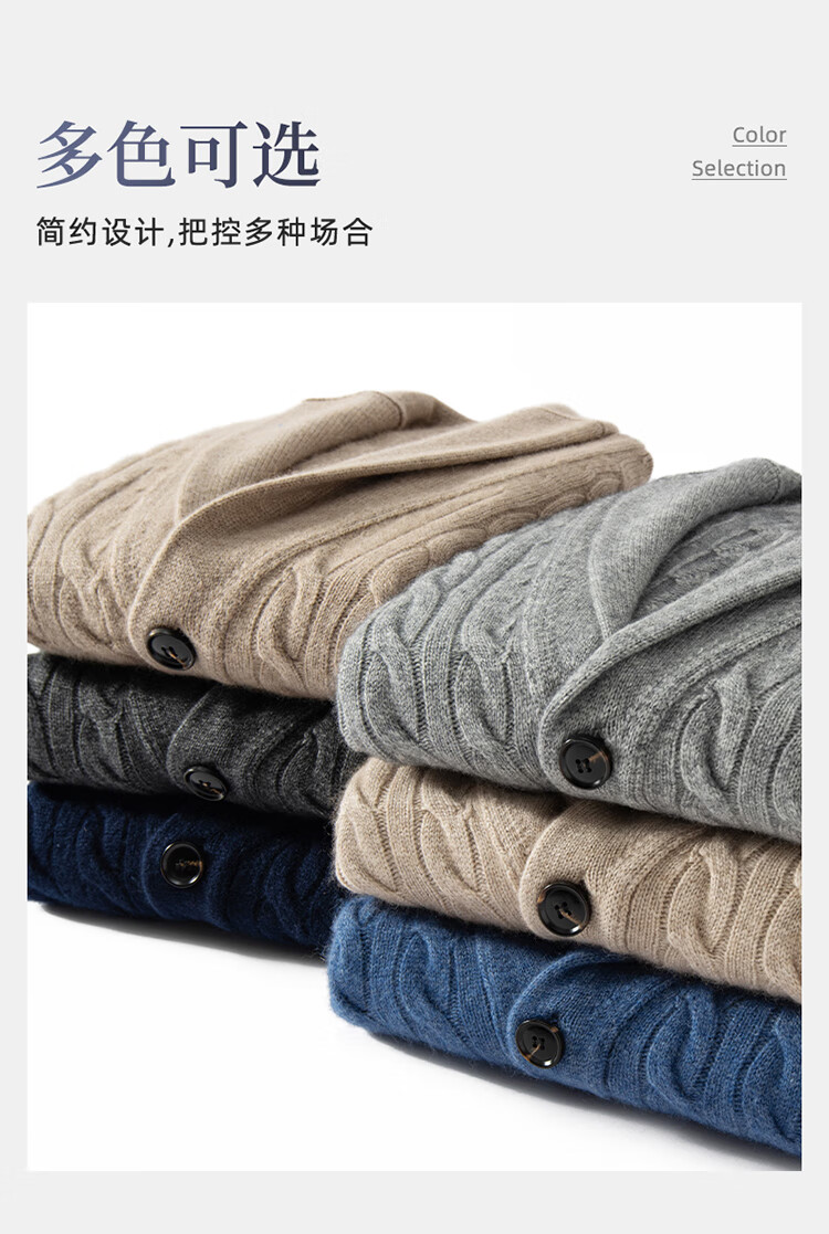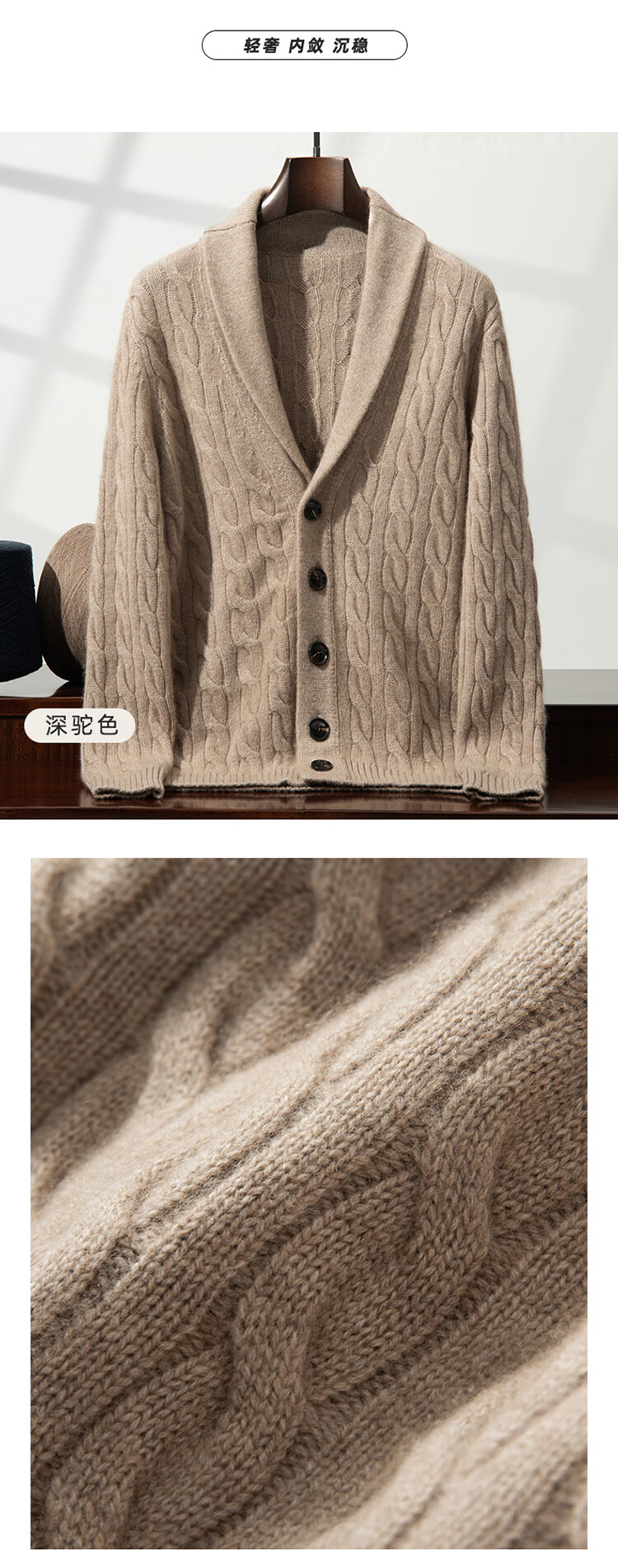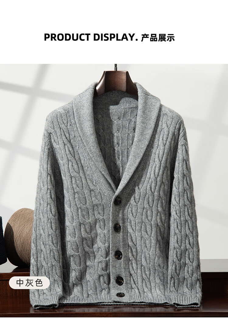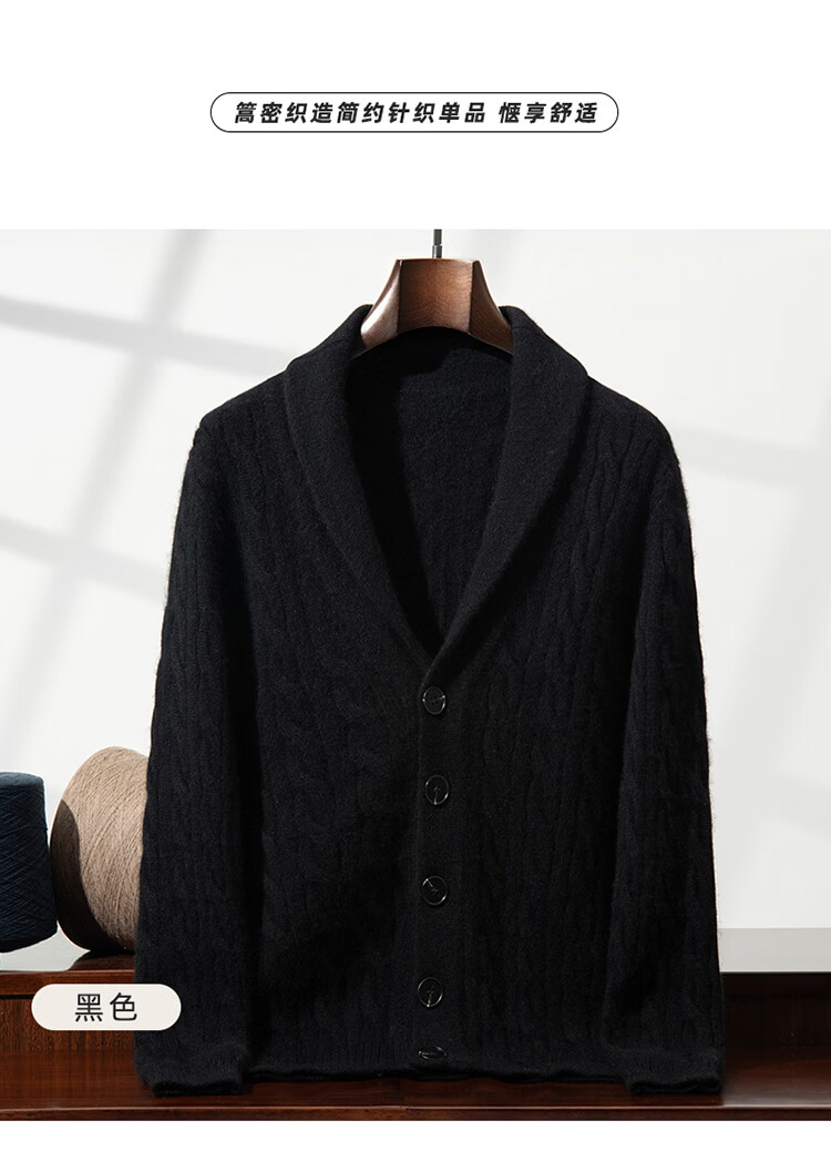 XJSGS international high-end brand autumn and winter heavyweight thickened green fruit collar goat wool cardigan men's new wool sweater jacket high-end dark camel heavyweight counter same style thickened winter style XL