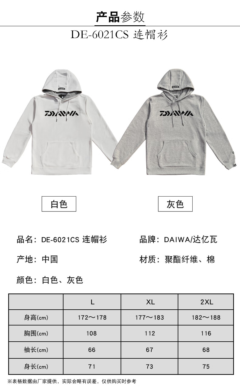 Dayiwa DE-6021CS hooded sweatshirt jacket fishing wear loose casual hoodie outdoor sports white L