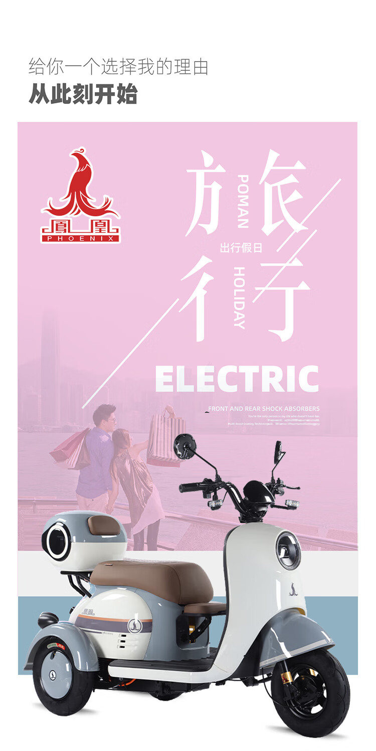 Phoenix tricycle electric scooter for the elderly, women's pick-up and drop off of children, battery car, electric tricycle, new national standard Fengji丨bare bike without battery charger
