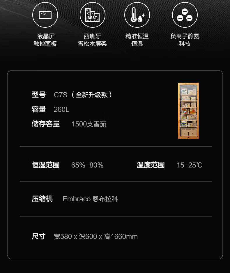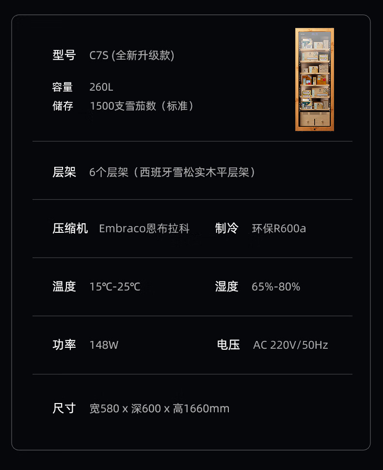 Xinchao C7 cigar cabinet intelligent constant temperature and humidity compressor precise temperature control and humidity control cigar humidifier home tree