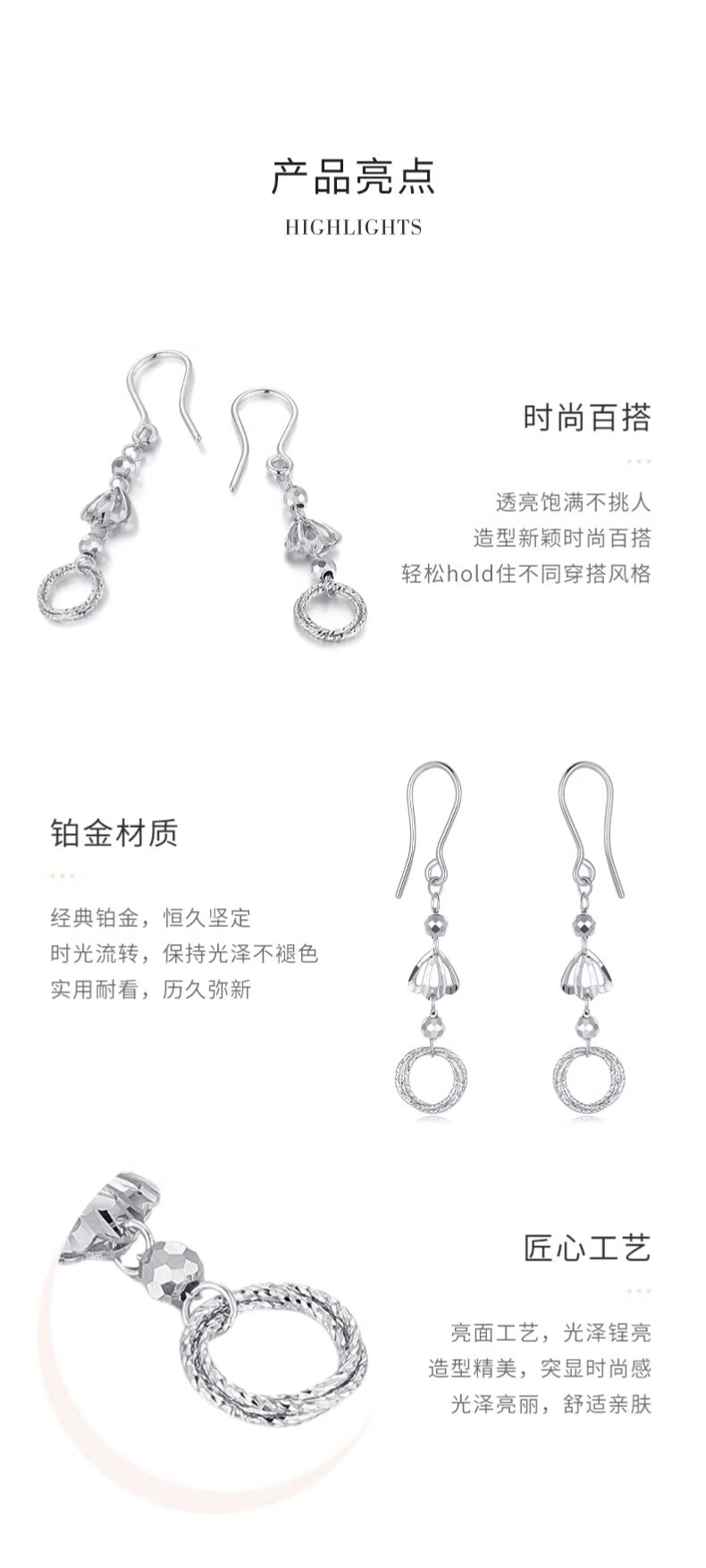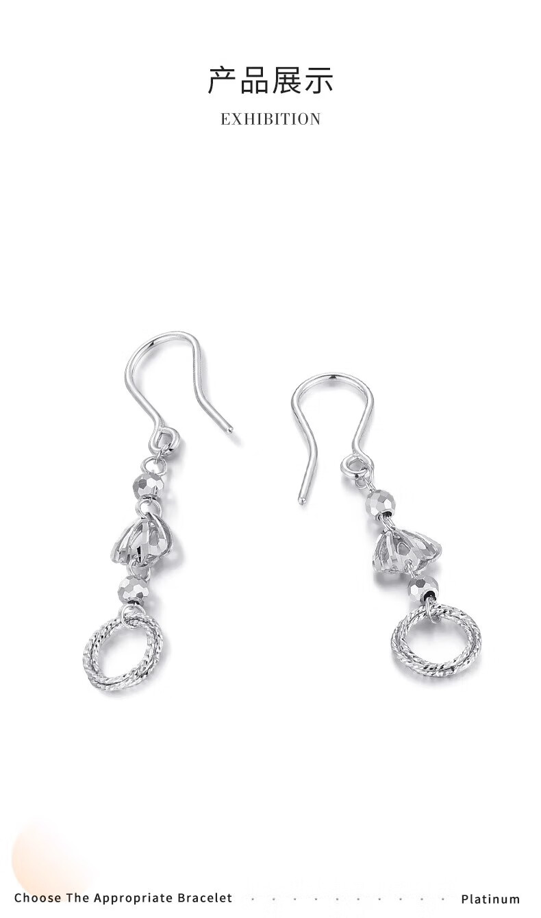 Lao Fengxiang PT950 platinum ear hooks and wire-wrapped rings for women, new light luxury niche high-end earrings, birthday gifts for girlfriends, platinum wire-wound ring ear hooks, one pair, about 2.9g, brand gift box