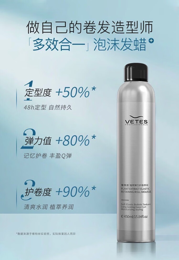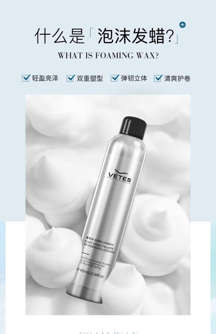 Vetes Foam Hair Wax Elastic Curly Wool Curly Hair Fluffy Moisturizing Moisturizing Styling Bubble Hair Gel Single Bottle Foam Hair Wax 450ml*1