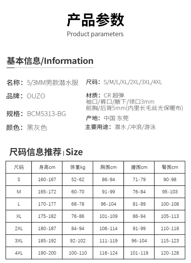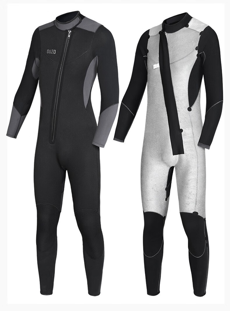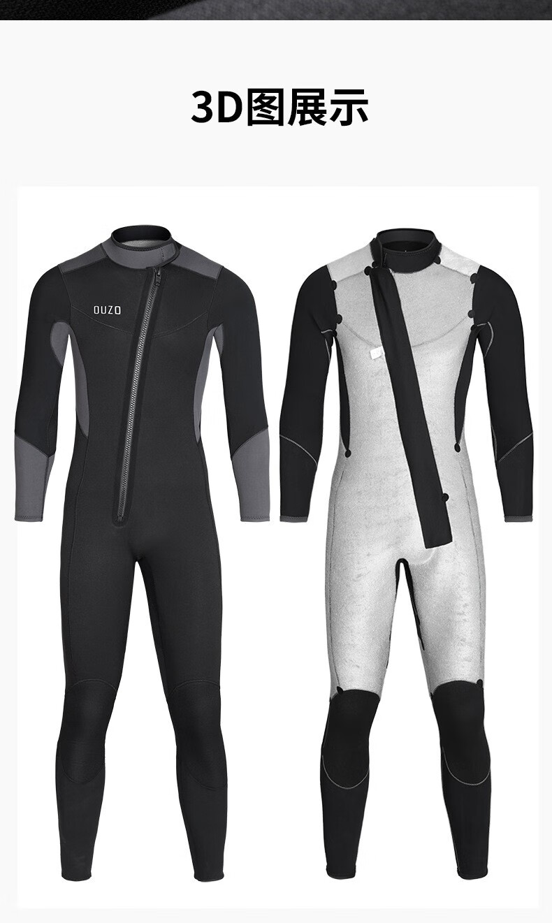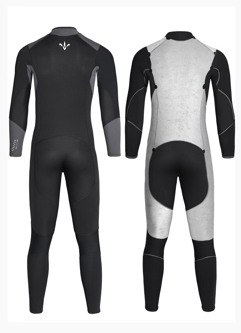 Oeny's new 5/3 wetsuit for men, super elastic, thickened and velvet, cold-proof and warm one-piece wetsuit, jellyfish surfing winter swimsuit, black and gray CR super elastic, long hair mercerized thermal cloth inside S
