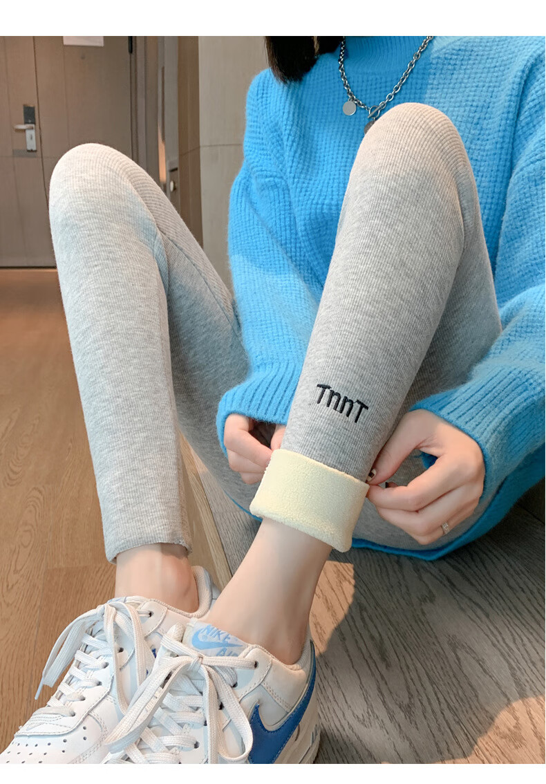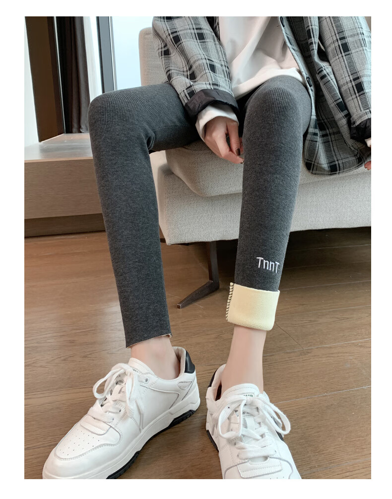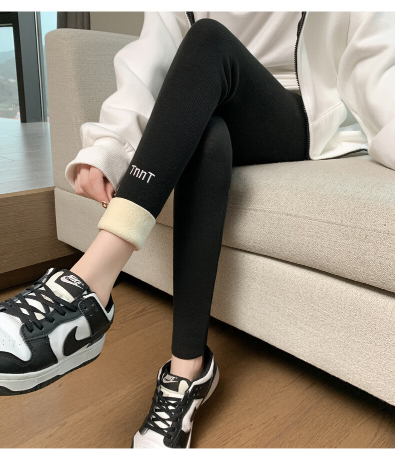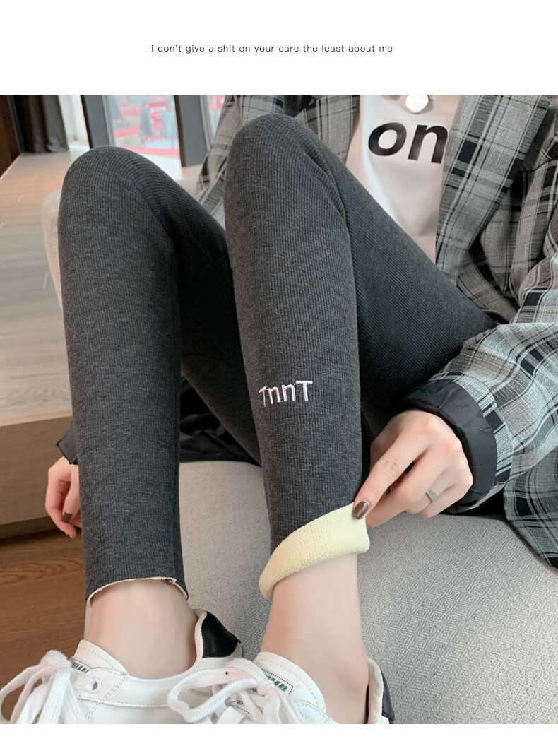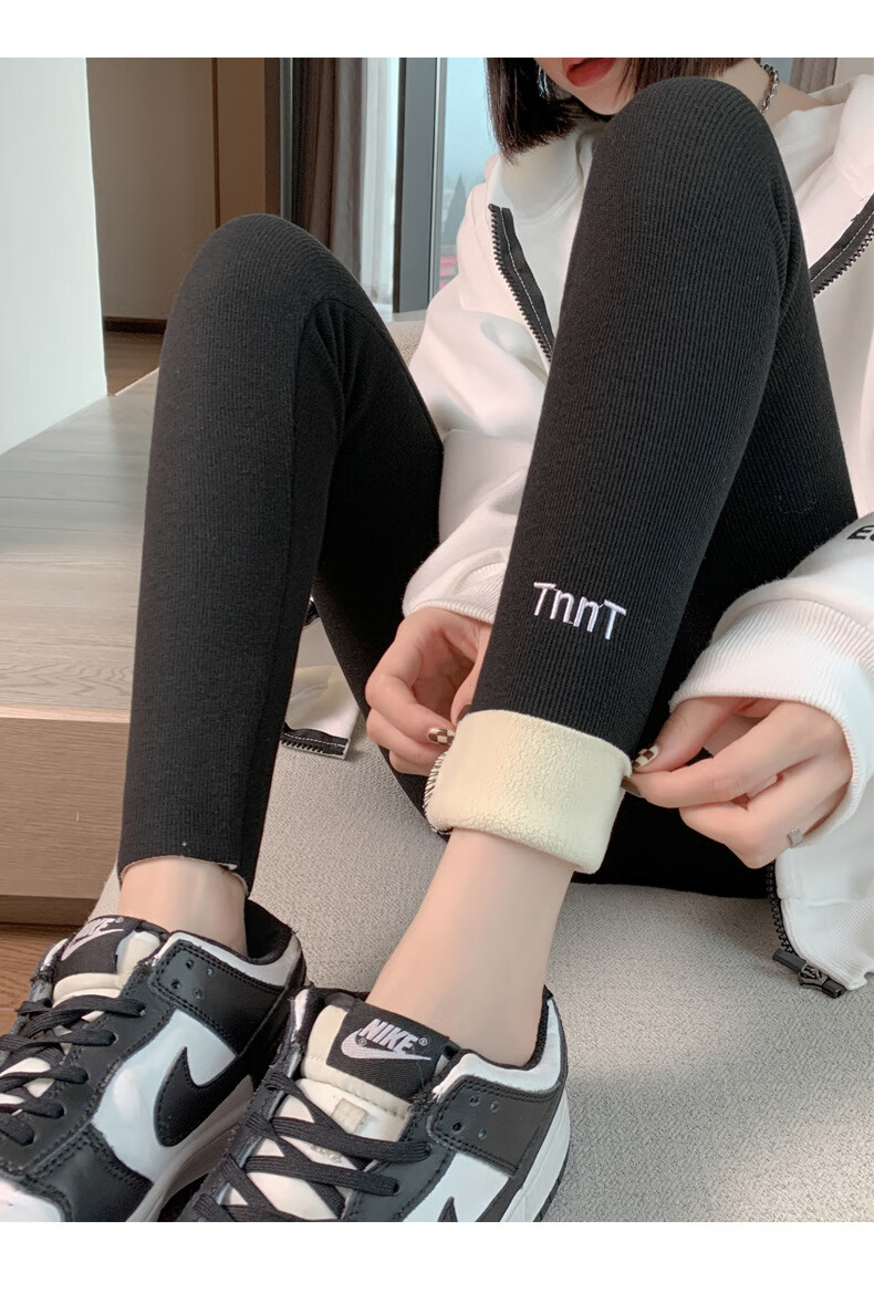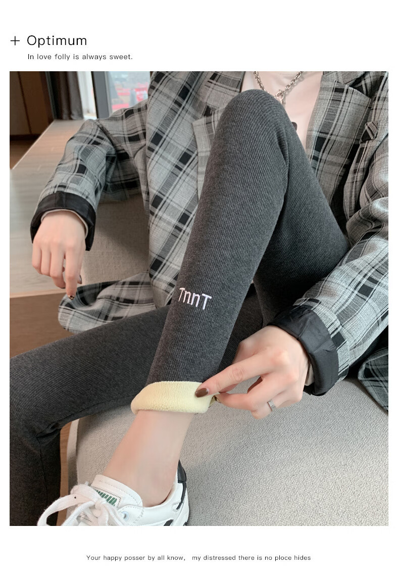 Lamb velvet leggings for women's outerwear winter plus velvet thickened autumn pants large size black extra thick warm cotton pants dark gray M L suitable for 80-120 Jin Jin equals 0.5 kg