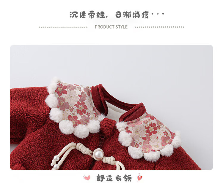 G.duck little yellow duck New Year's greetings baby clothes autumn and winter quilted one-year-old baby girl one-year-old dress winter cotton clothes for going out red 66cm