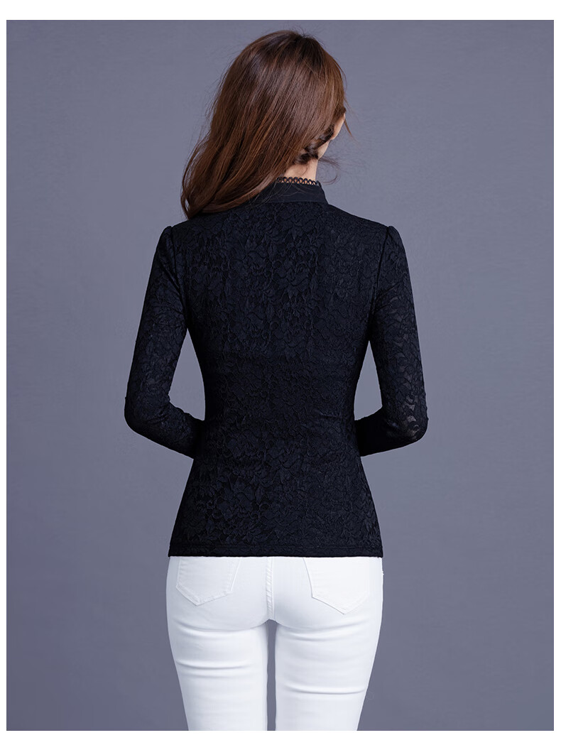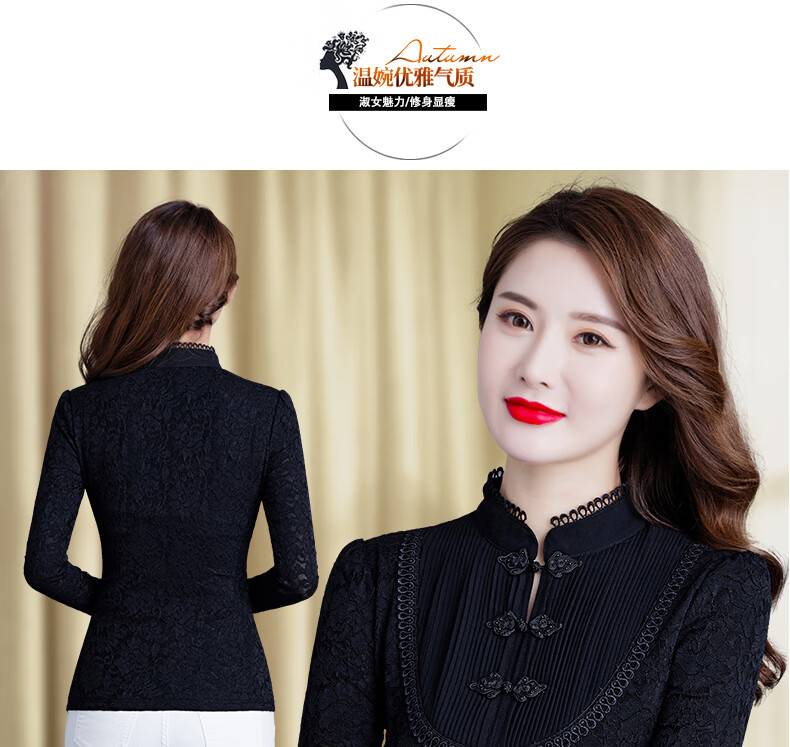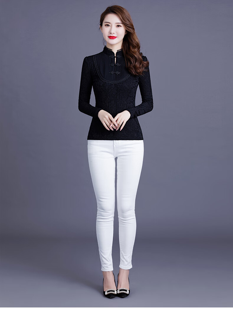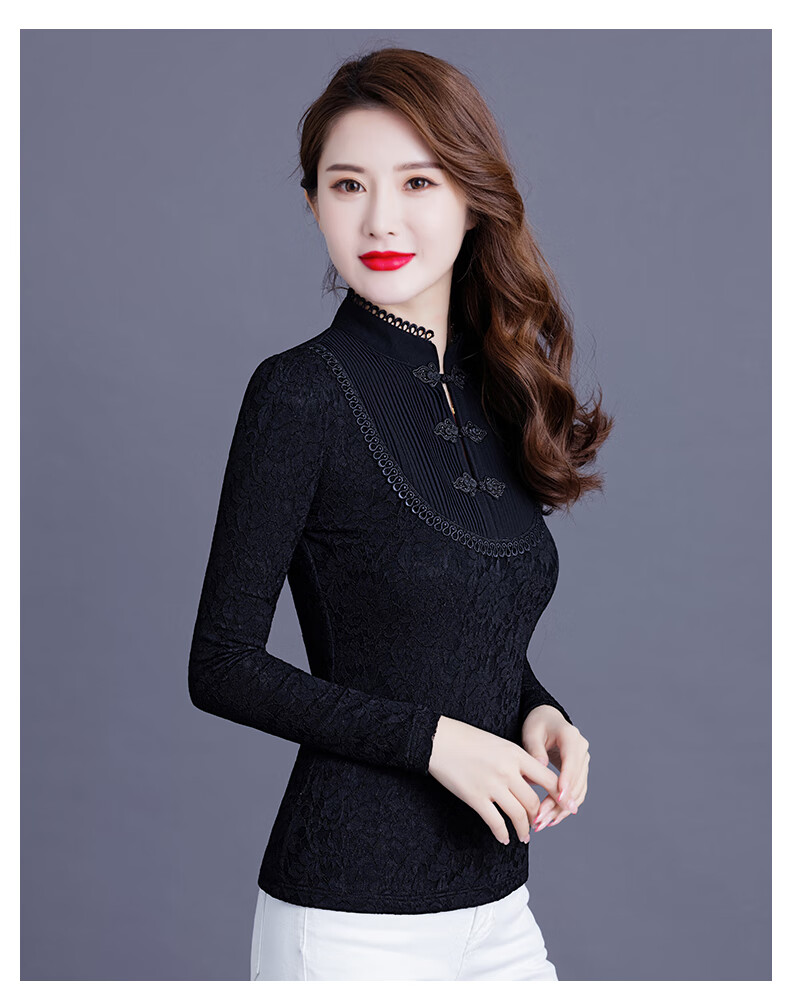 Hengyuanxiang Lace Bottoming Shirt Women's 2025 Winter New Tang Suit Stand Collar Black Western Style Autumn and Winter Velvet Warm Inner Top Black Velvet 2XL
