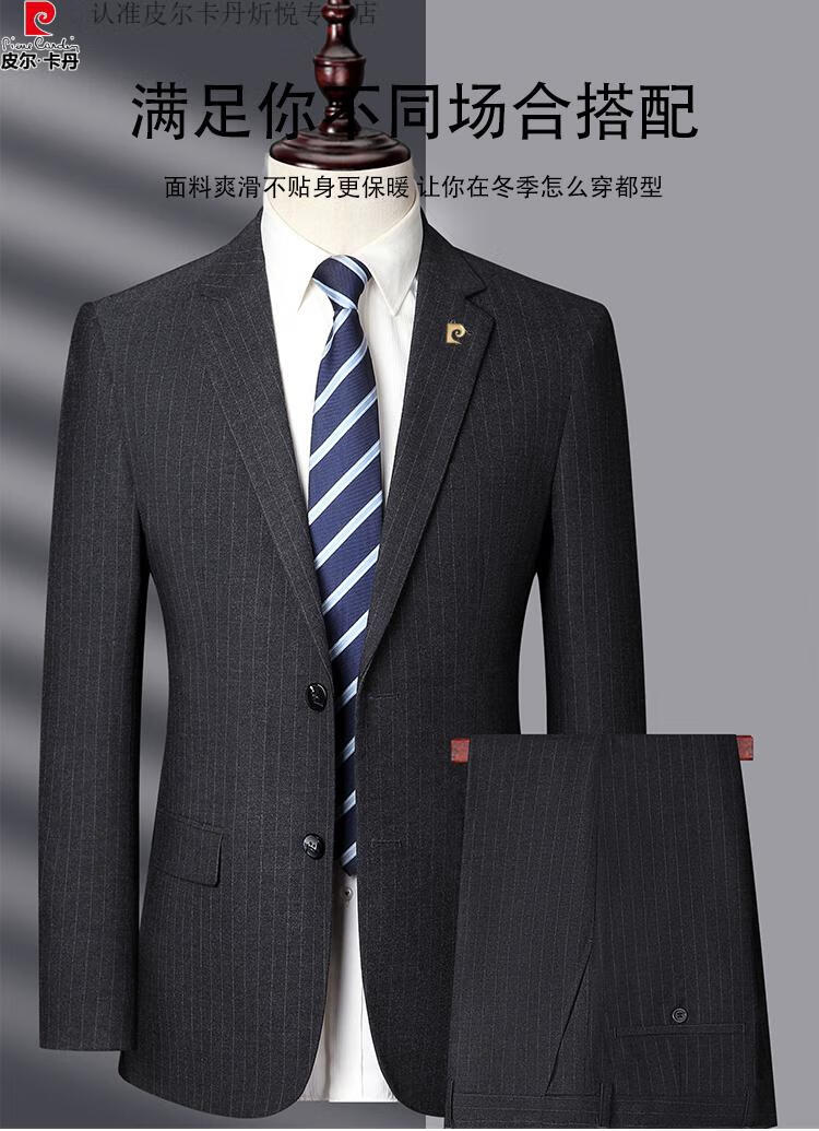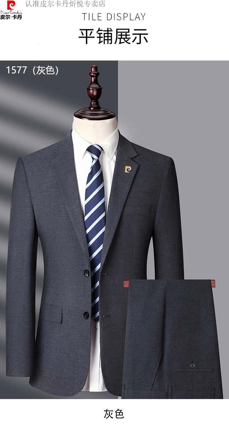Pierre Cardin high-end no-iron suit men's high-end business casual suit jacket middle-aged men's two-piece wedding dress gray 1577 style M 170 size recommended 100 Jin Jin equals 0.5 kg -115 Jin Jin equals 0.5 kg