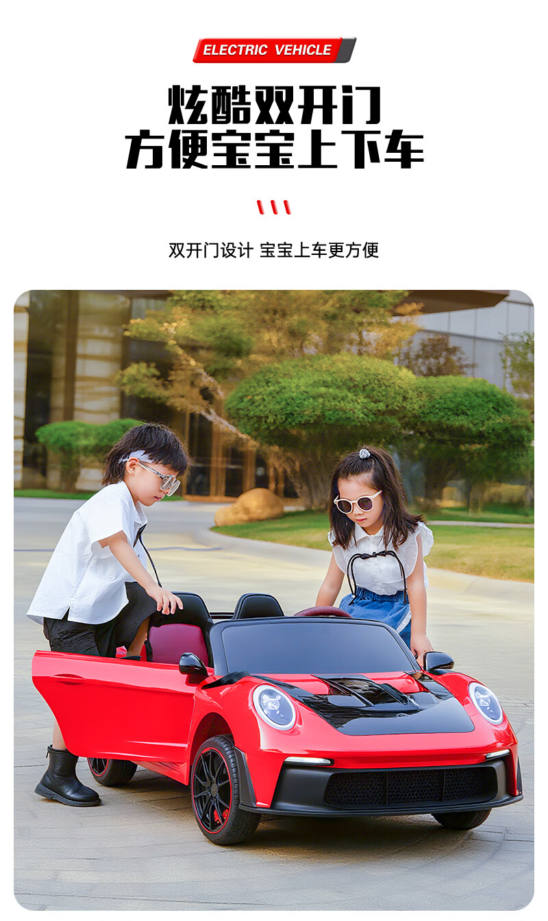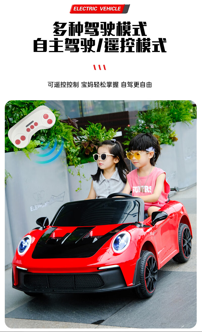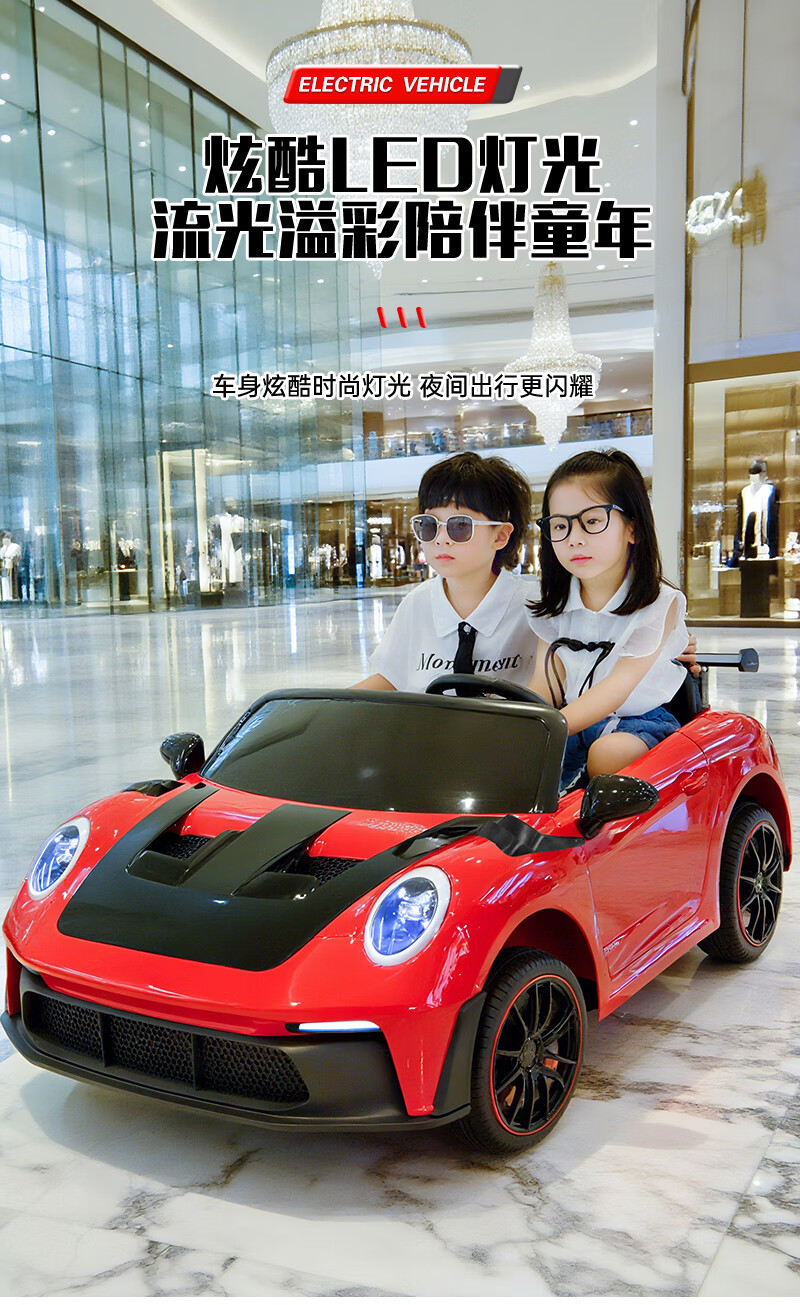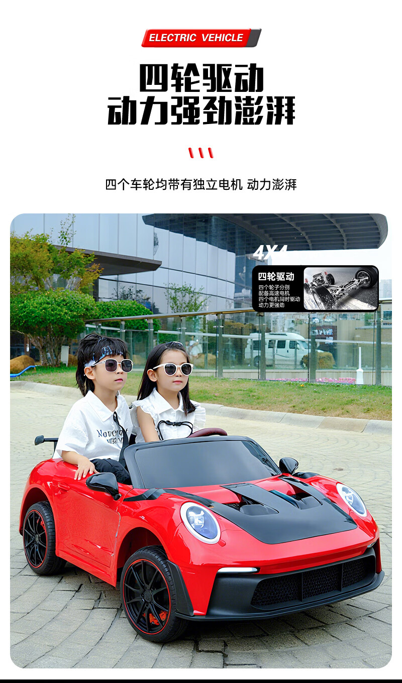 Mother and baby children's electric car four-wheeled super large two-seater baby remote control toy double stroller white double drive full function + hard wheels leather seat 12V11 Chaowei battery