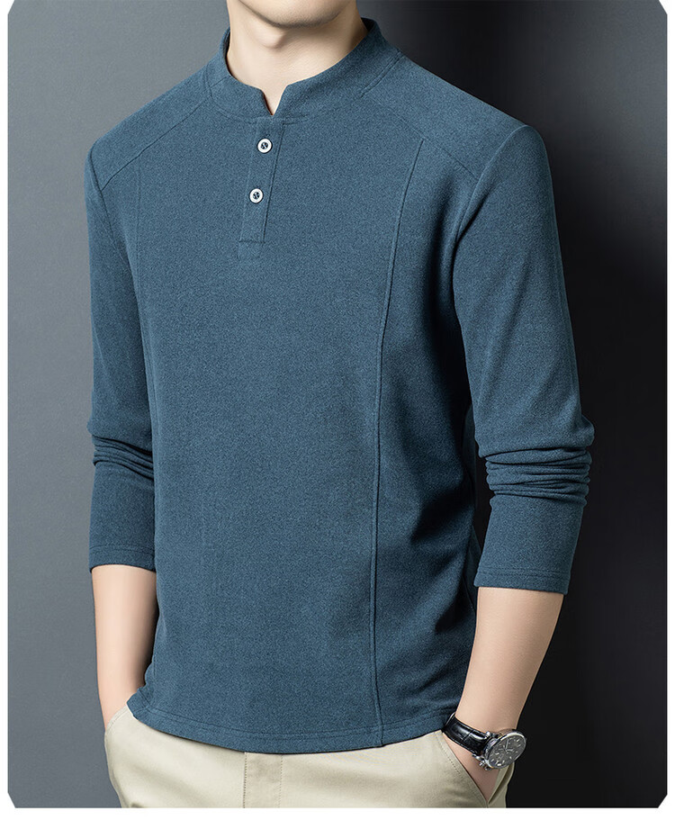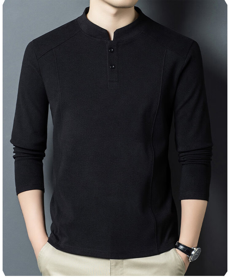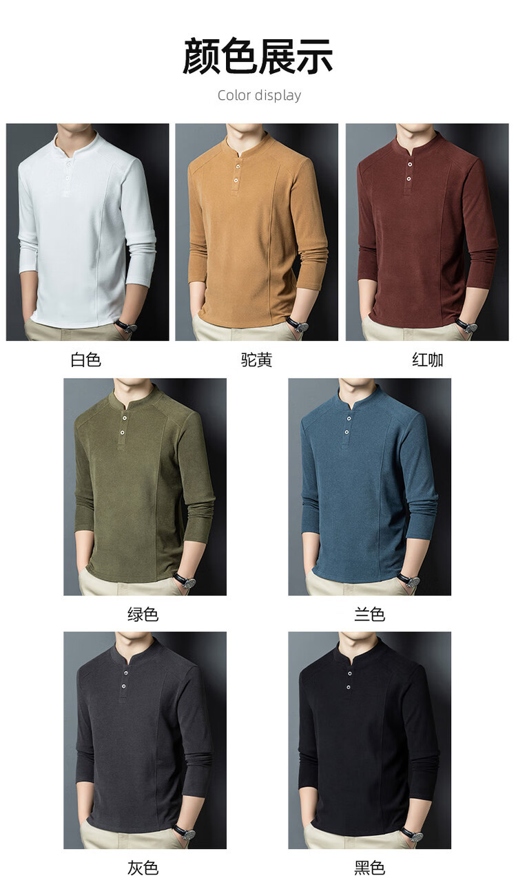 International Milan high-end autumn and winter double-sided German velvet bottoming shirt for men Henry collar trendy versatile long-sleeved T-shirt stand-up collar sweatshirt for men red coffee color (gift box) XL