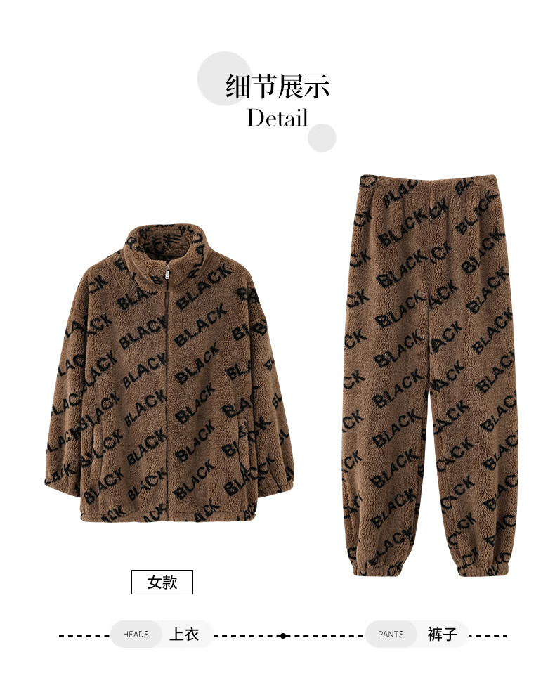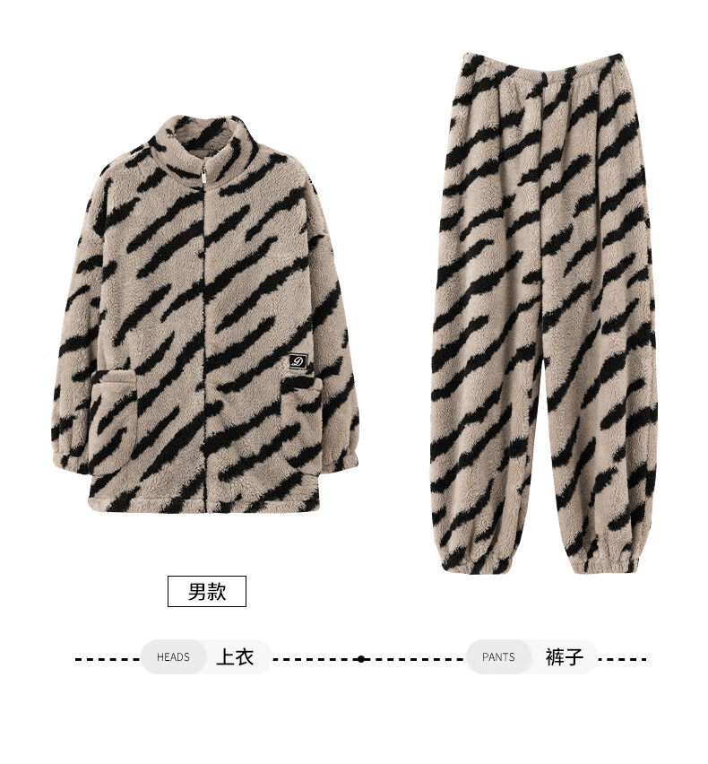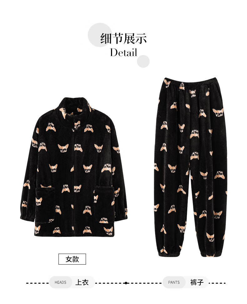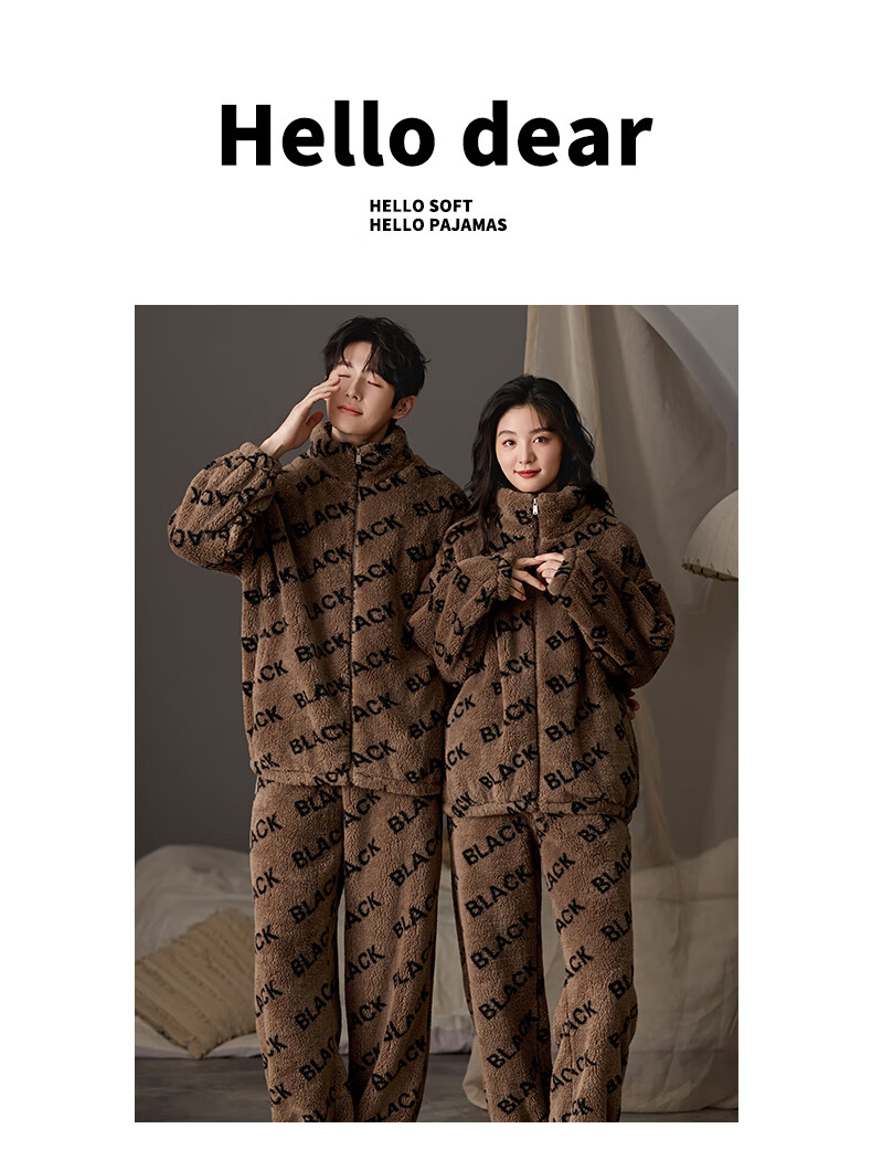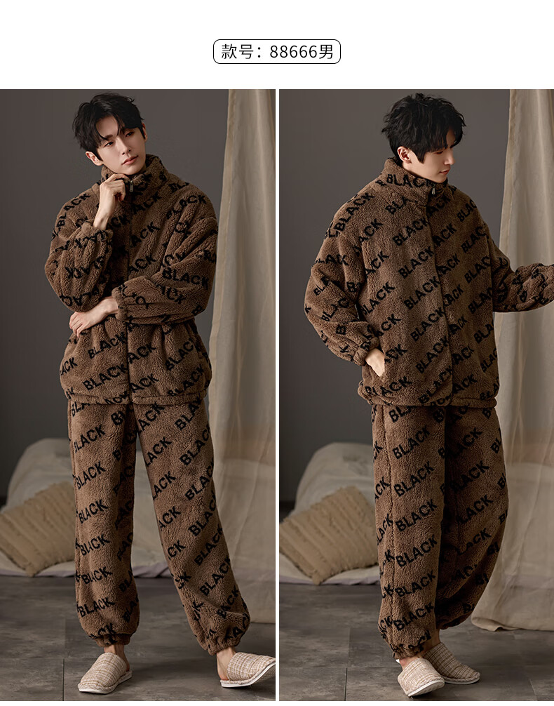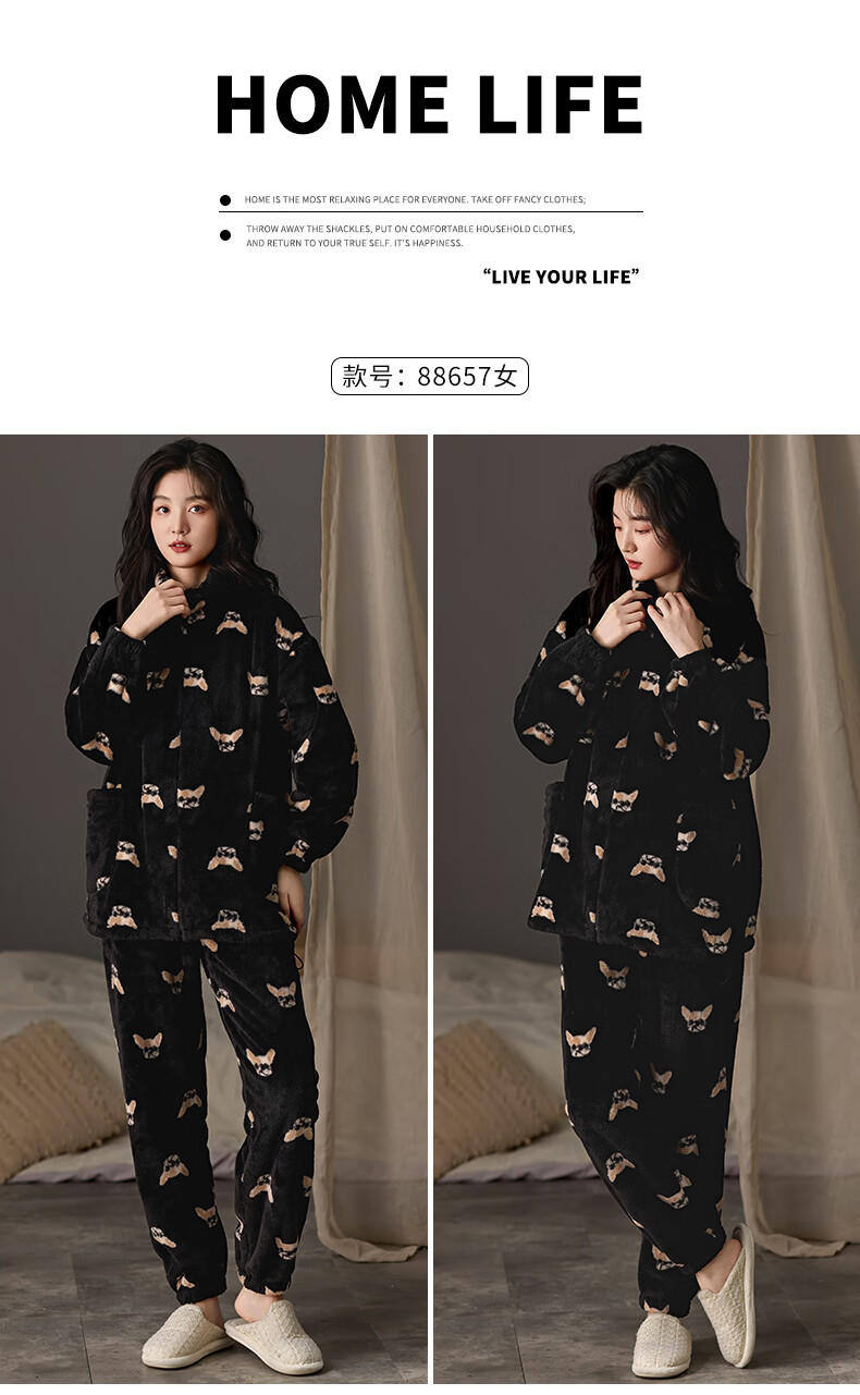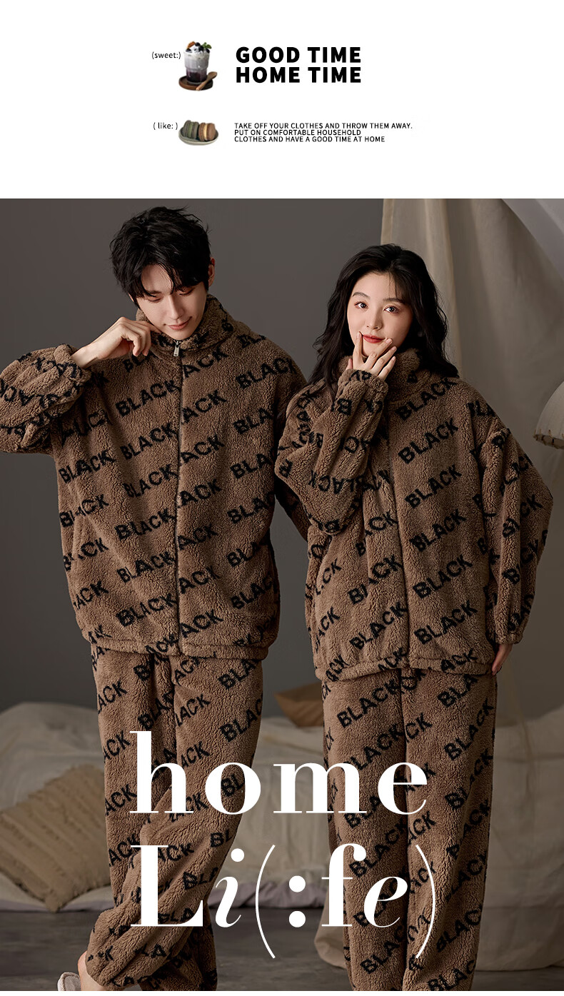 LangSha couple pajamas for winter, one man and one woman, warm flannel thickened cardigan, casual and can be worn outside, autumn and winter home clothes, female 88659 + male 88660 M female + L male