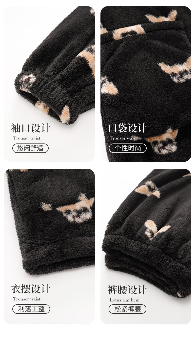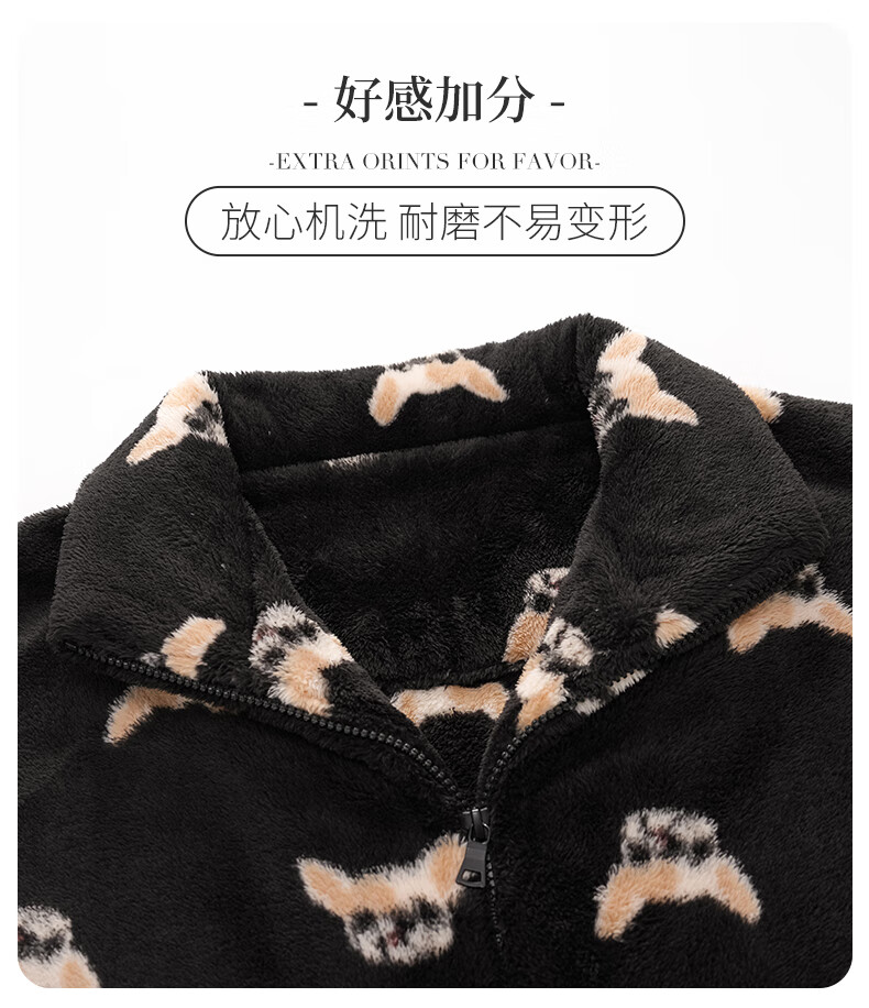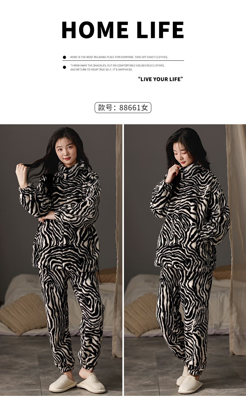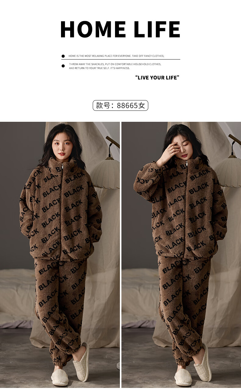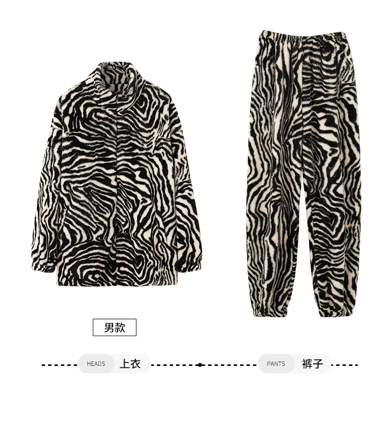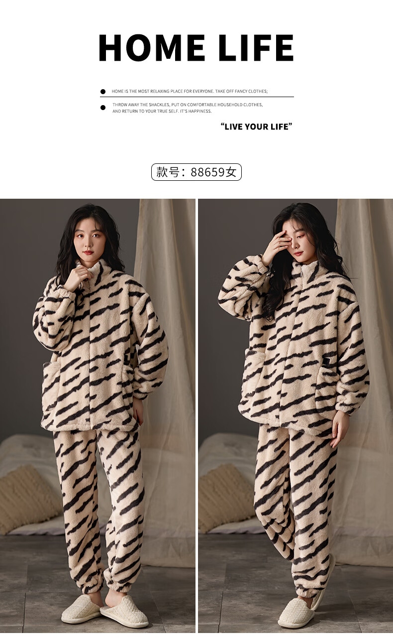LangSha couple pajamas for winter, one man and one woman, warm flannel thickened cardigan, casual and can be worn outside, autumn and winter home clothes, female 88659 + male 88660 M female + L male