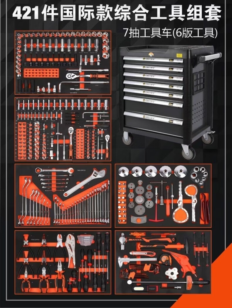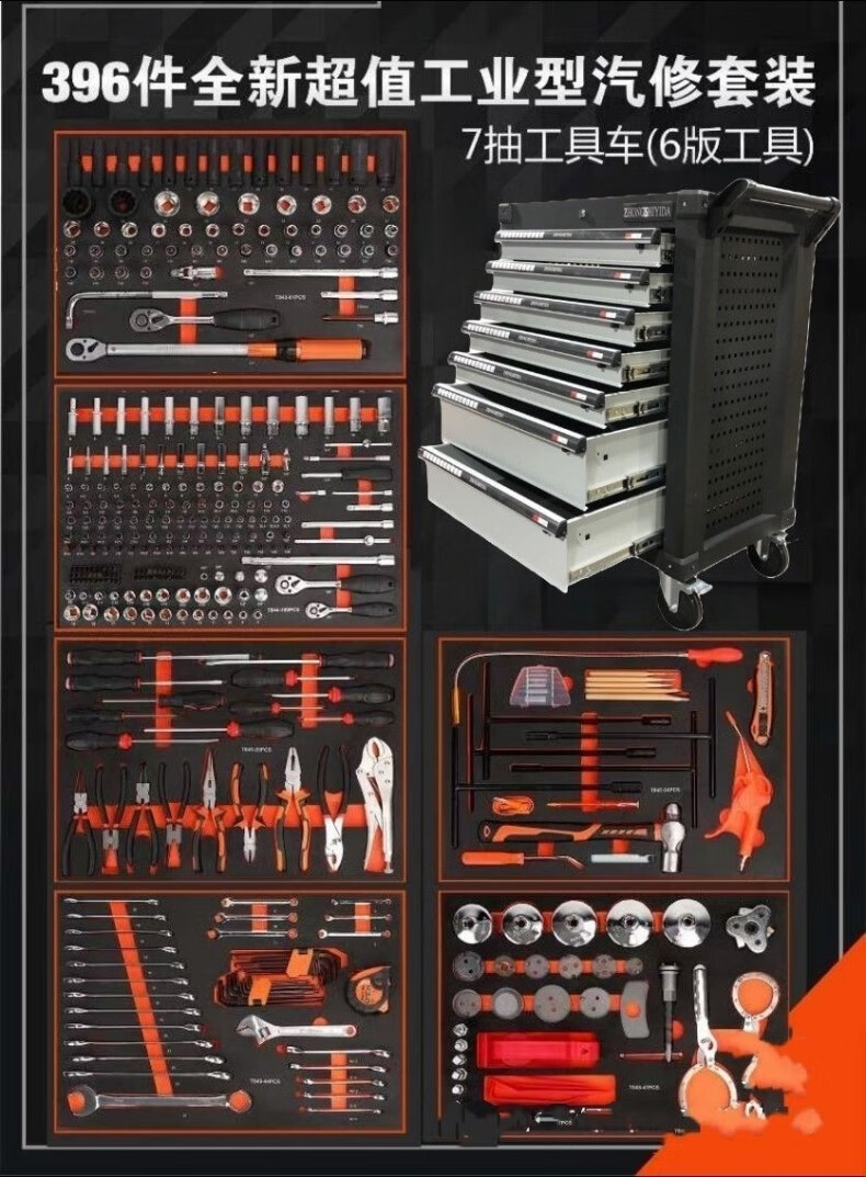Otis 463 pieces, 521 pieces, seven-layer heavy-duty vehicle repair tool cart tool cabinet, trolley-type tool box, auto repair set, seven-layer luxury tool cart