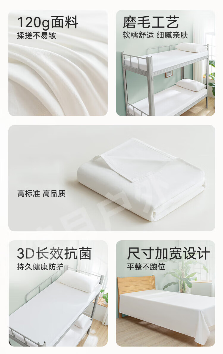 Jihua 3019 genuine white sheets military training single sheets student dormitory sheets thickened housekeeping white sheets 115*210cm S-level antibacterial