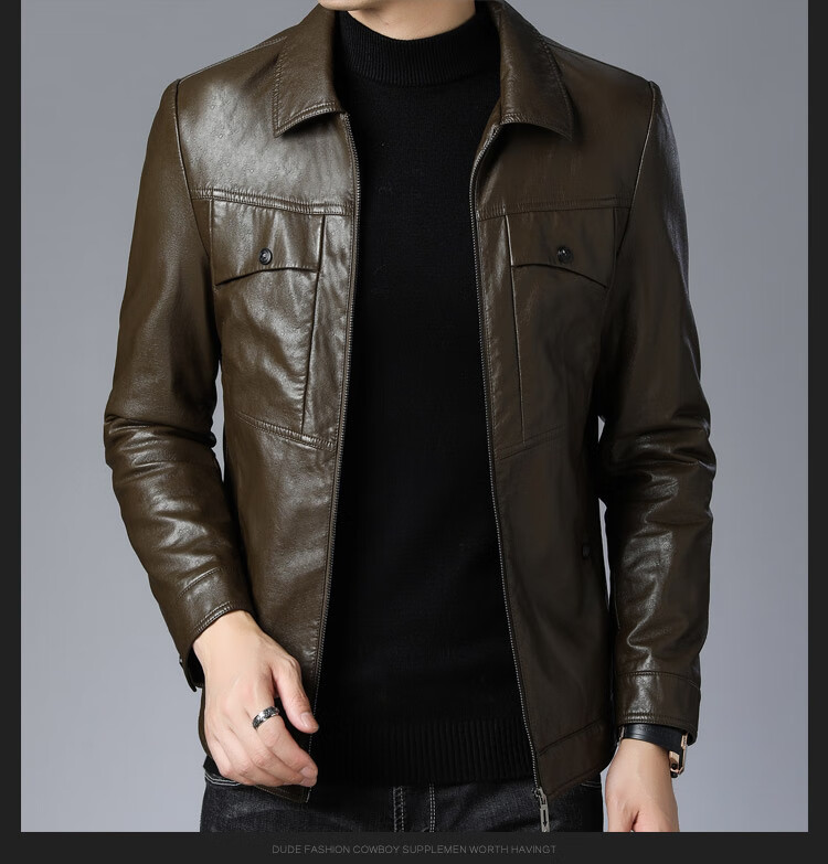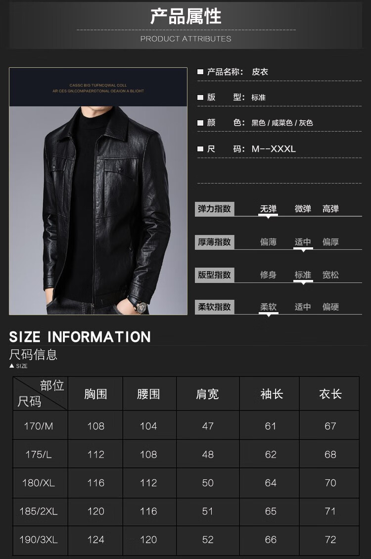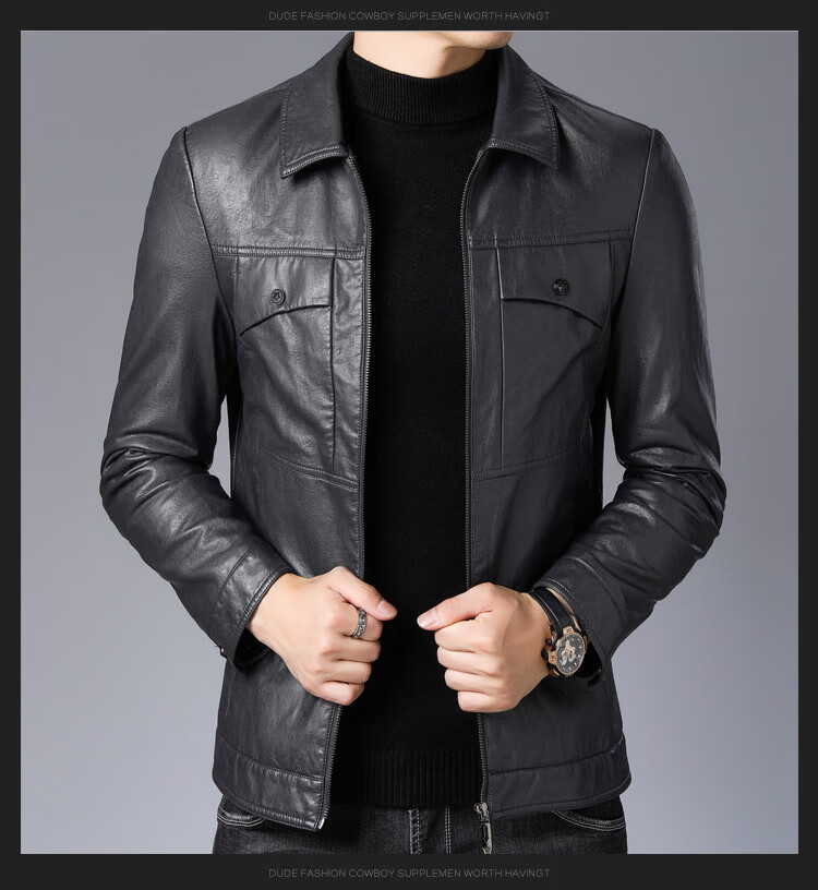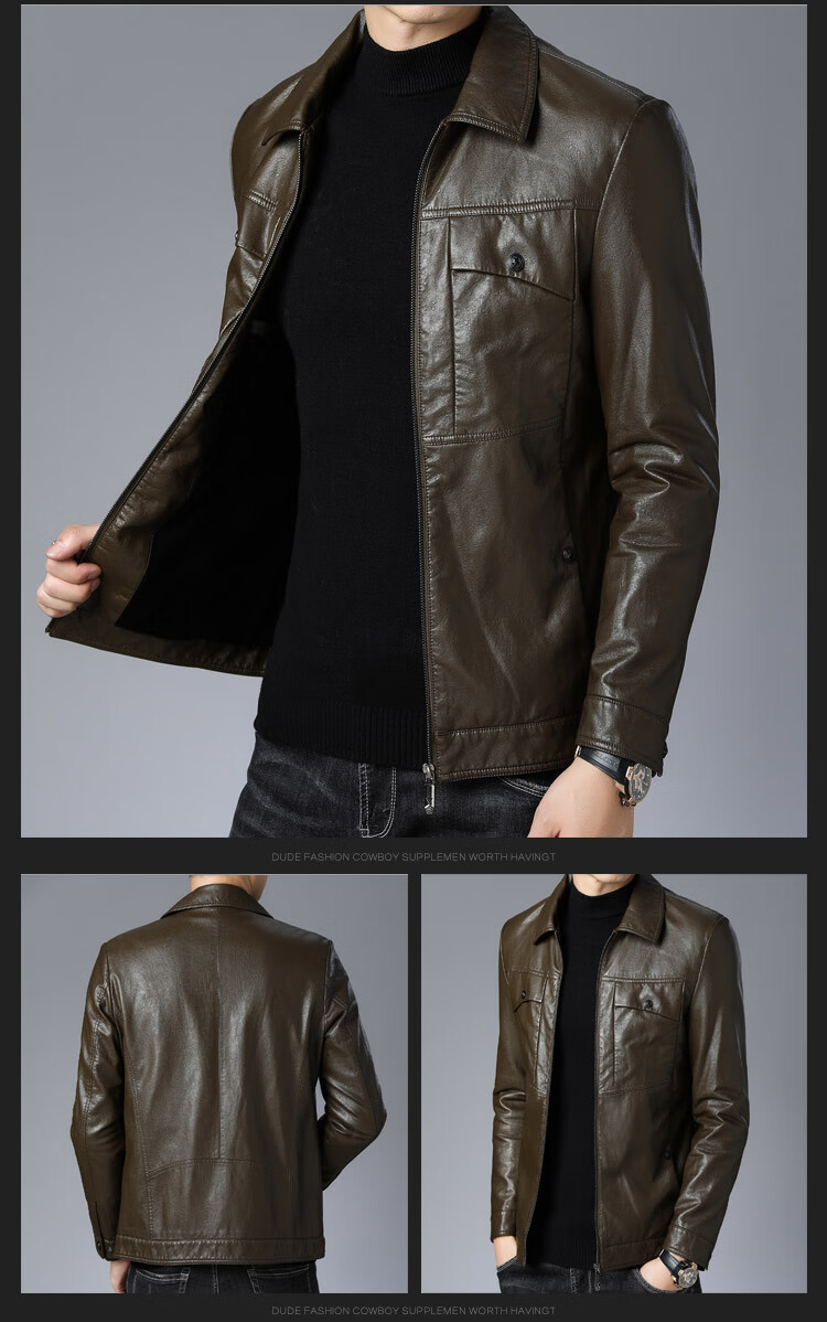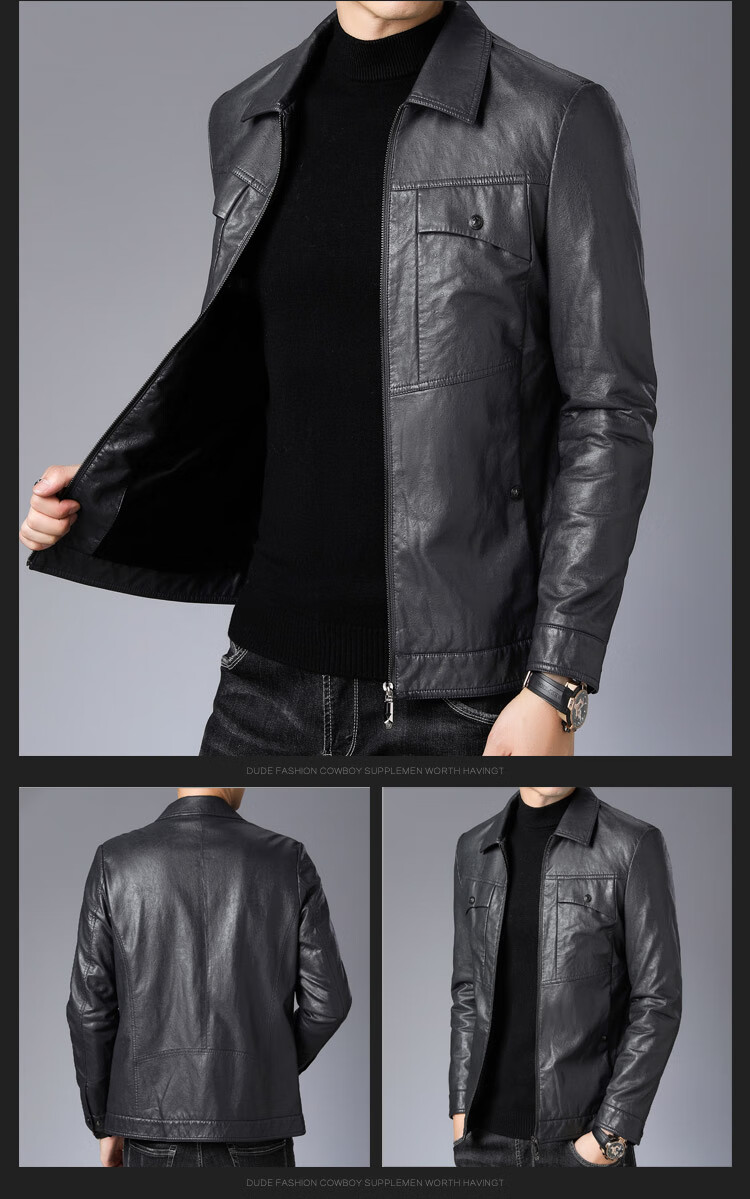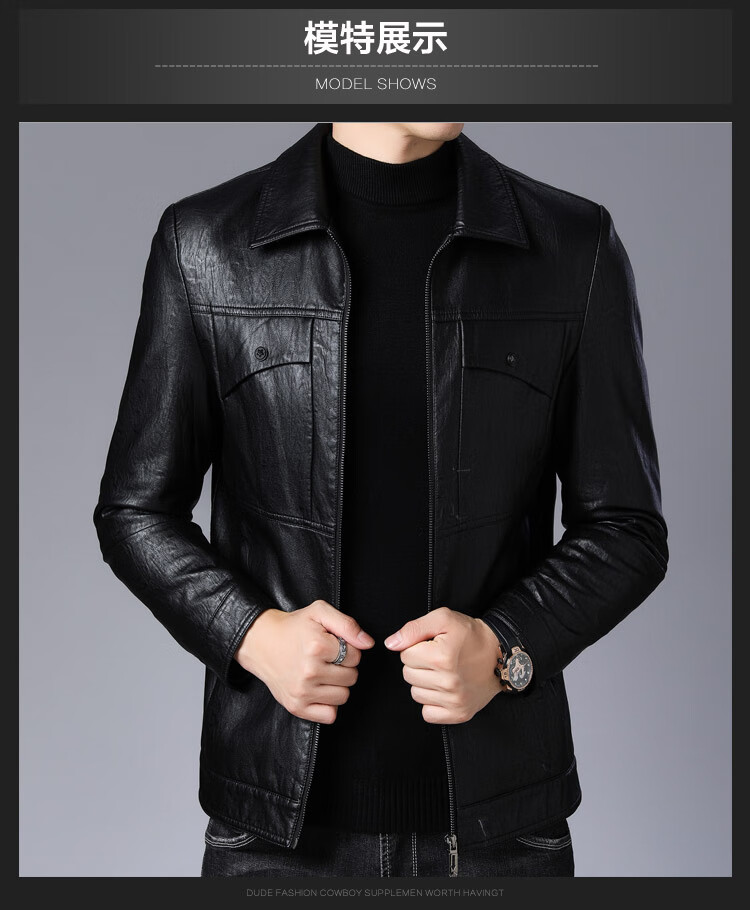 ARMANI EXCHANGE Armani high-end lapel leather jacket men's velvet thickened leather jacket young and middle-aged jacket men's winter jacket AG/BL813 black thin section M 170