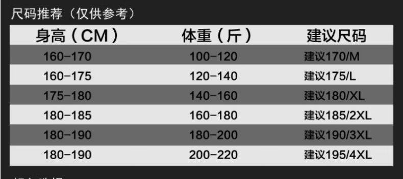 China (cm) 160-165/84-86 165-170 / 88-90 167-172 / 92-96 168-173 / 98-102 170-176 / 106-110