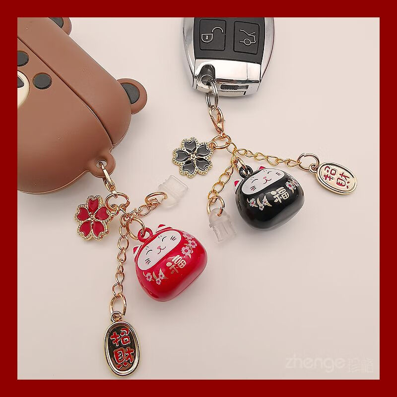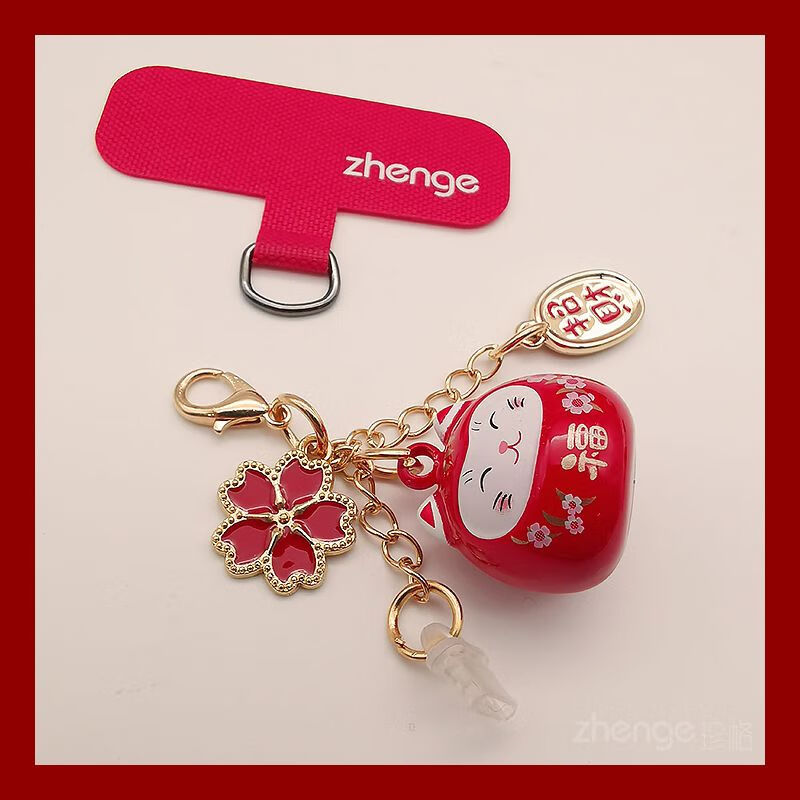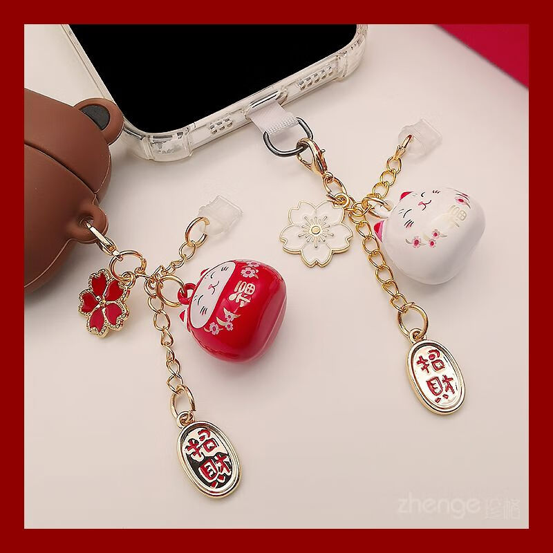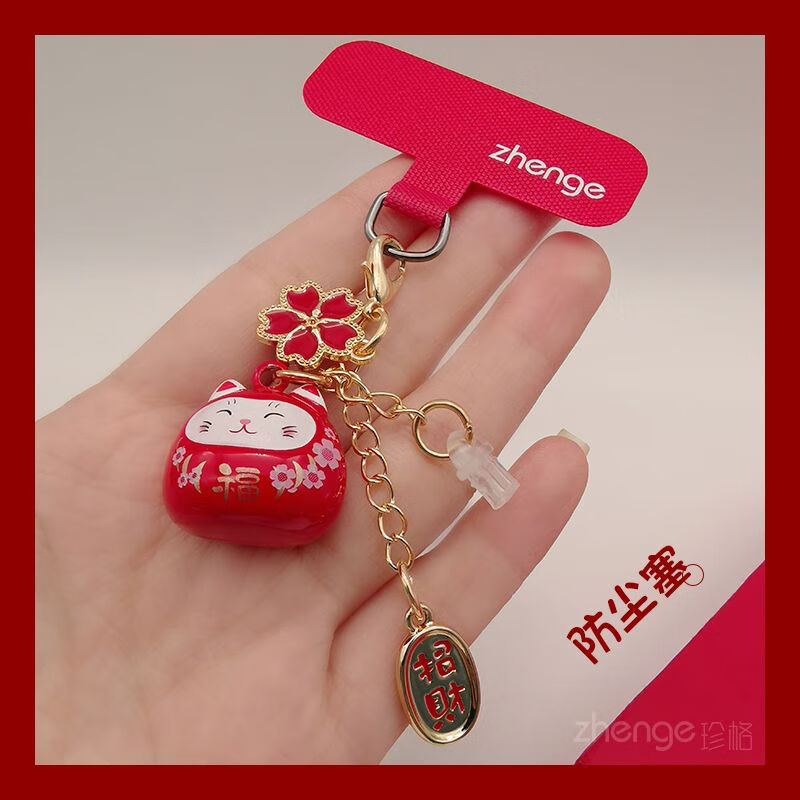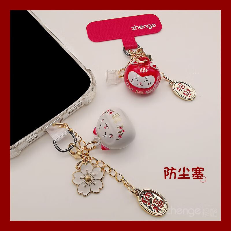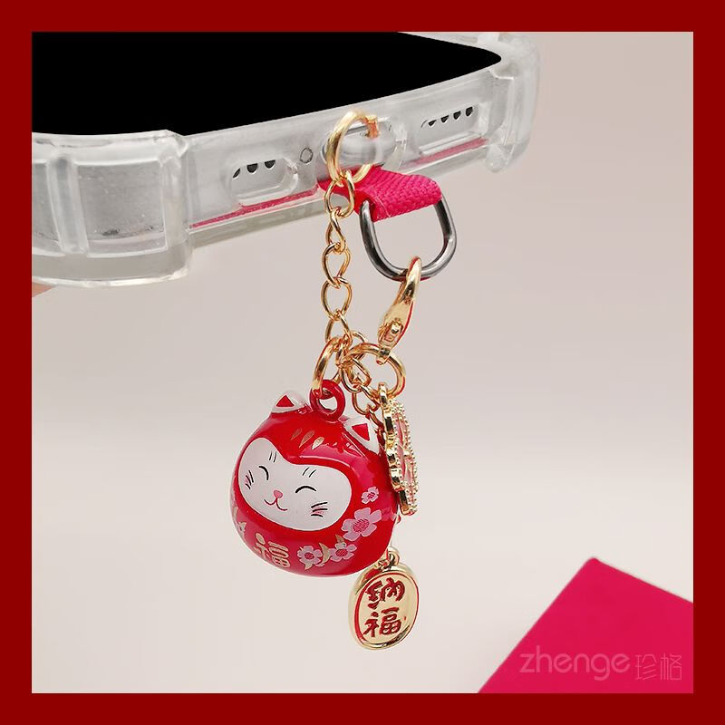 Zhener cat bell pendant mobile phone dust plug ins cute mobile phone case pendant suitable for Apple Android charging port waterproof type-c oval interface red cat bell