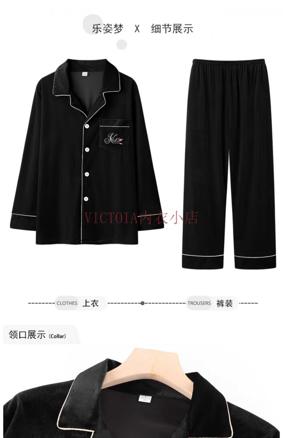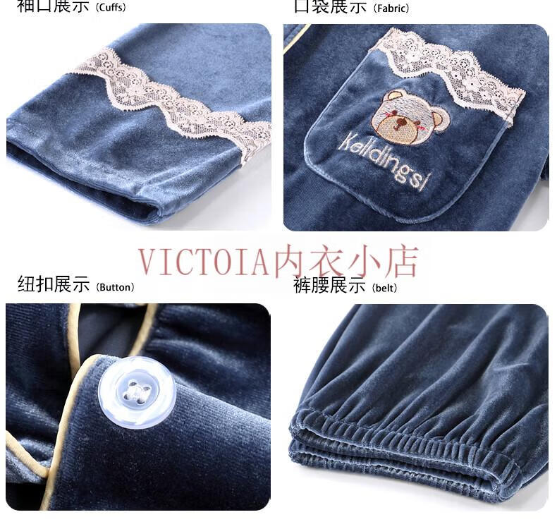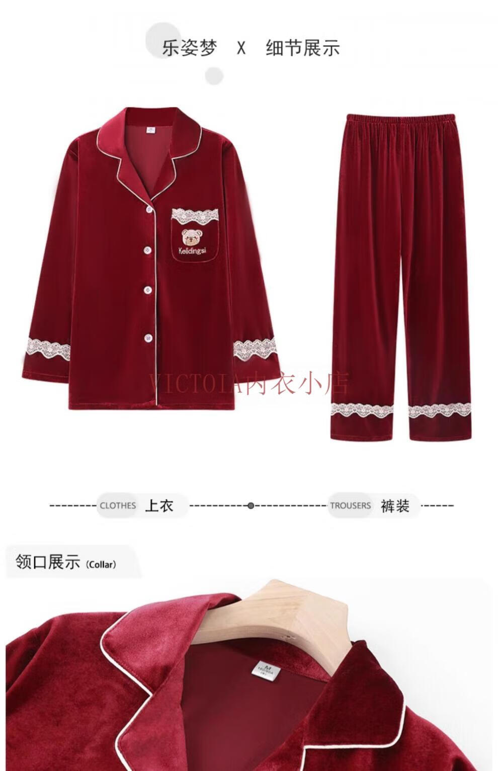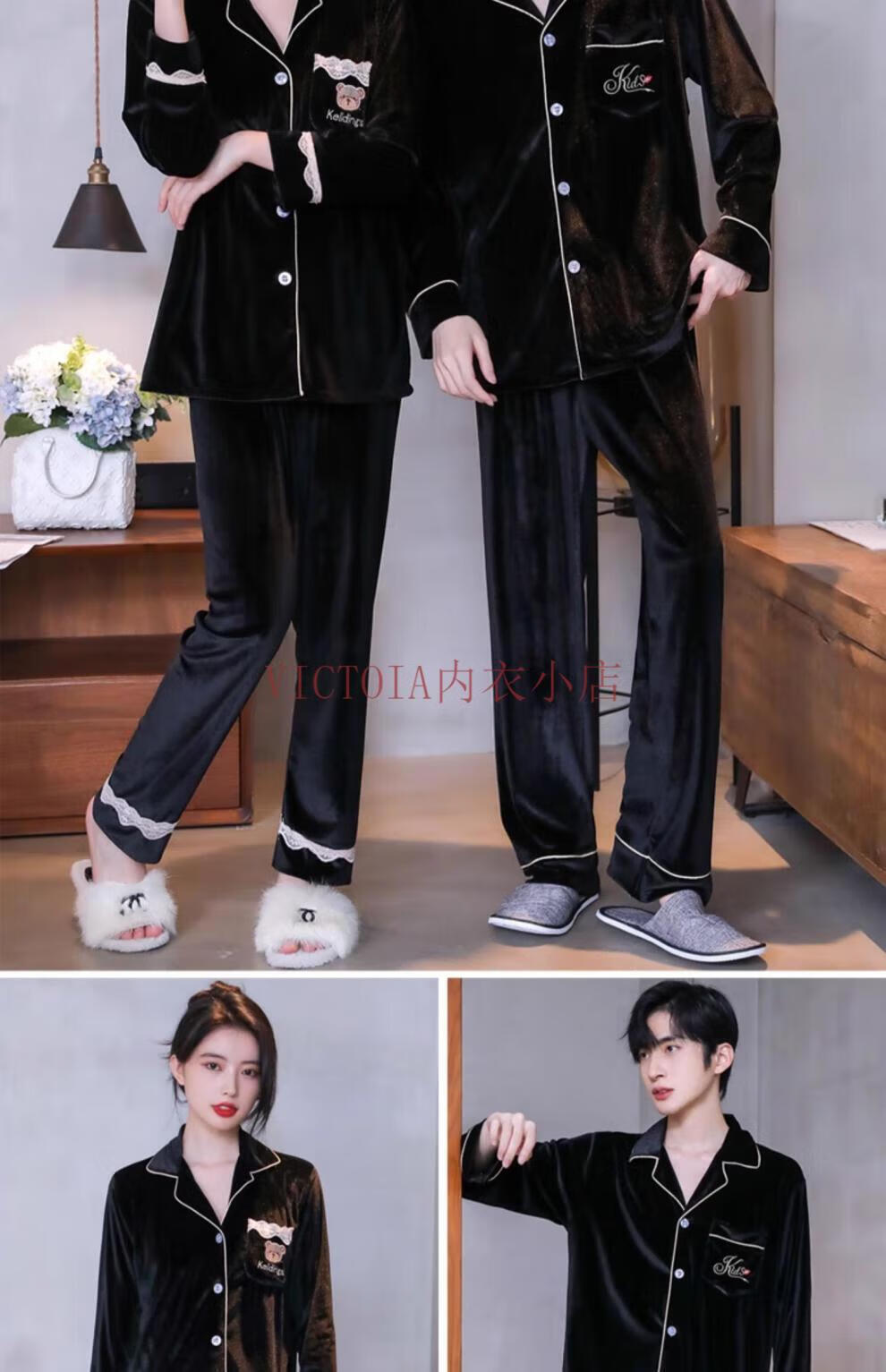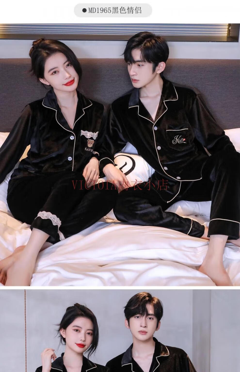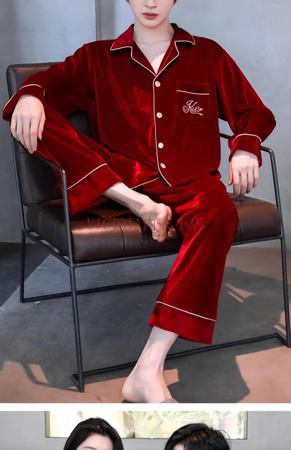 Victoria's Secret Autumn and Winter Gold Velvet Couple Pajamas for Women Red Wedding Bride Spring and Autumn Men's Long-Sleeved Home Clothes 713 Blue Gray Couple Suit (Gold Velvet) XL Women Get Men's XL