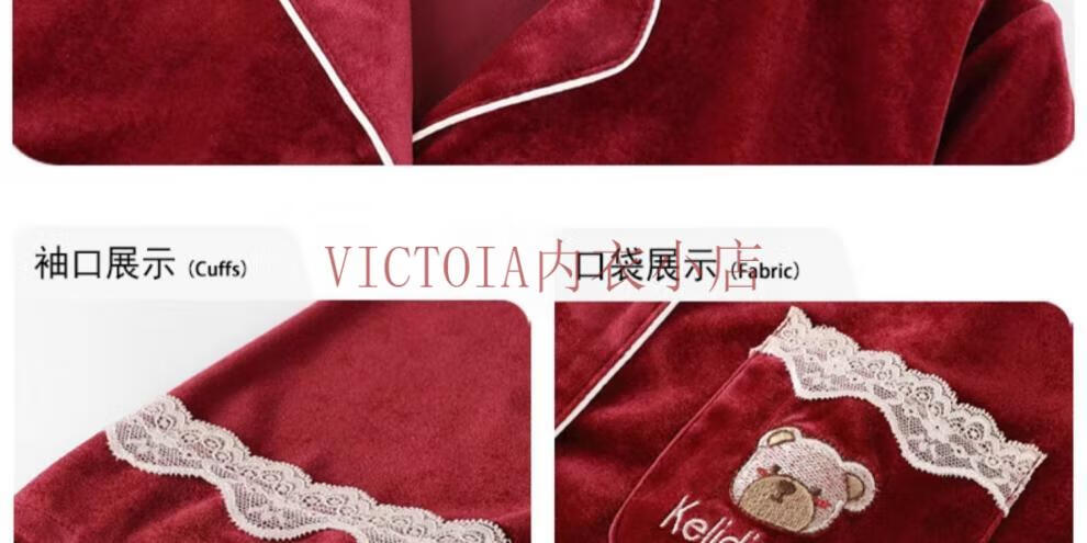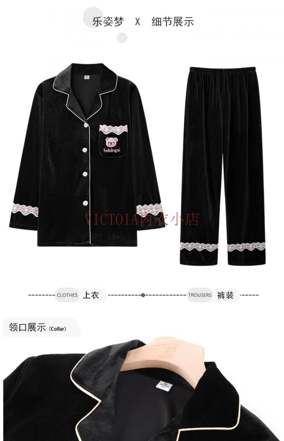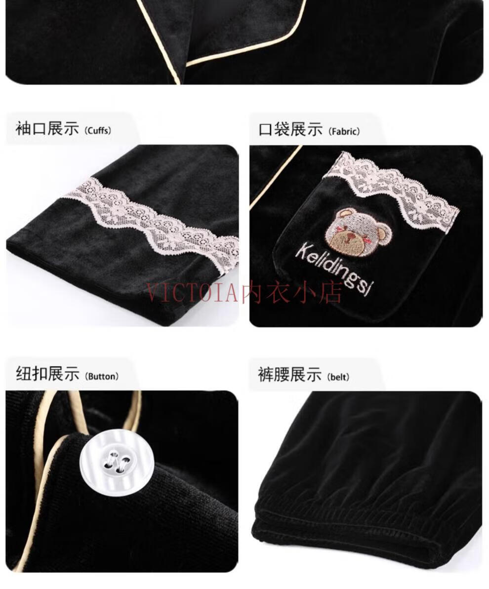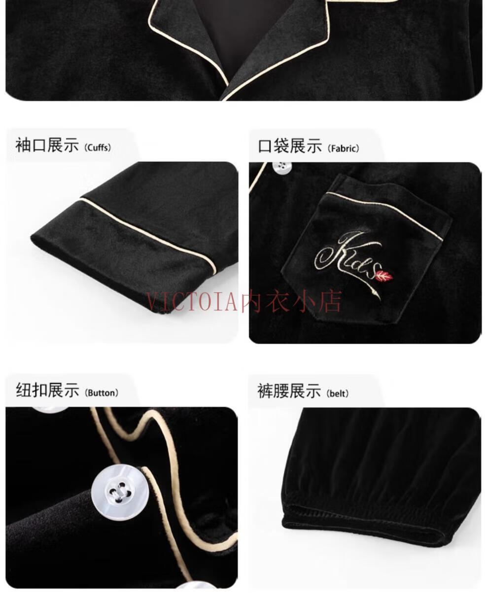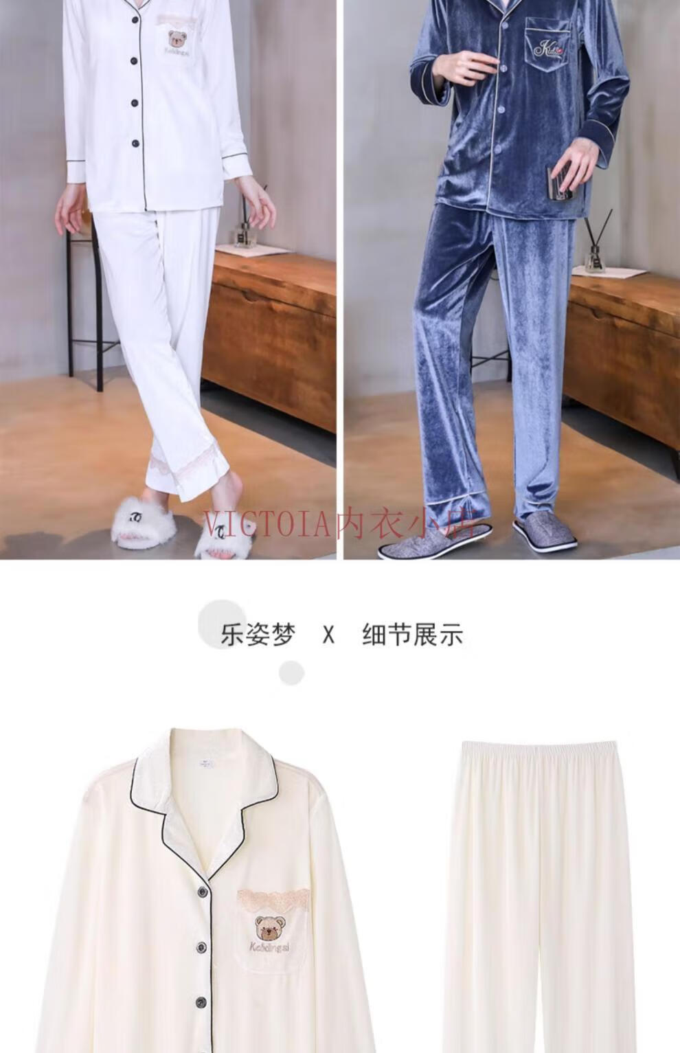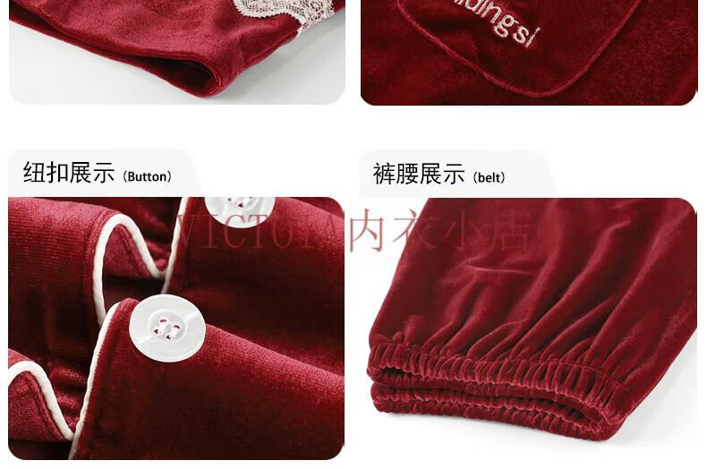 Victoria's Secret Autumn and Winter Gold Velvet Couple Pajamas for Women Red Wedding Bride Spring and Autumn Men's Long-Sleeved Home Clothes 713 Blue Gray Couple Suit (Gold Velvet) XL Women Get Men's XL