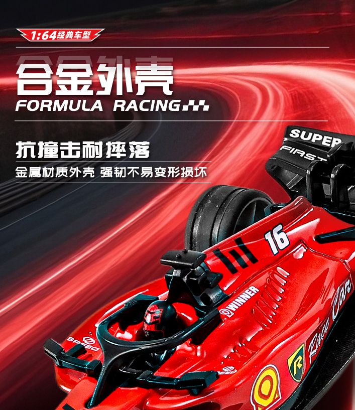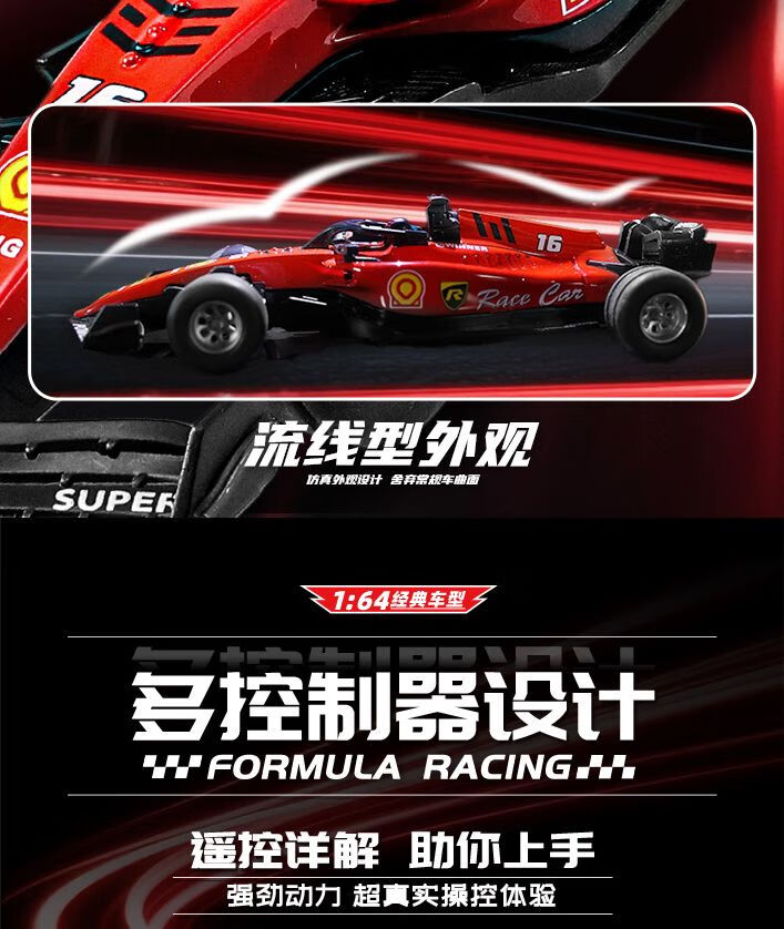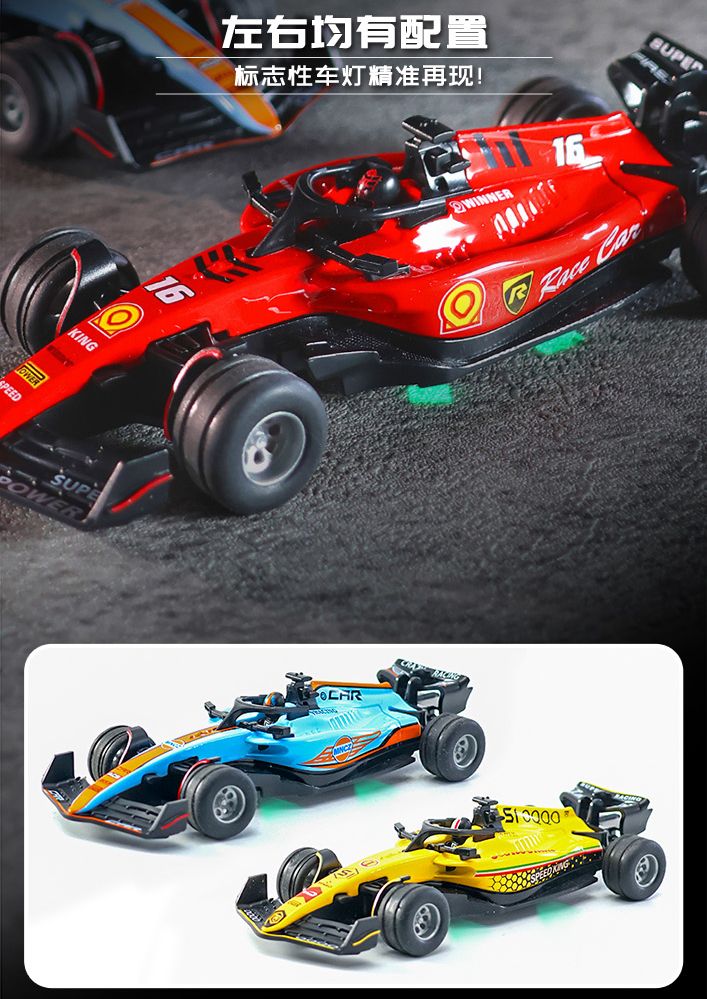 Shantou Lincun simulated 164 mini alloy car model with lights, adjustable speed F2 racing car, sliding children's remote control toy, red Farah F2 racing car