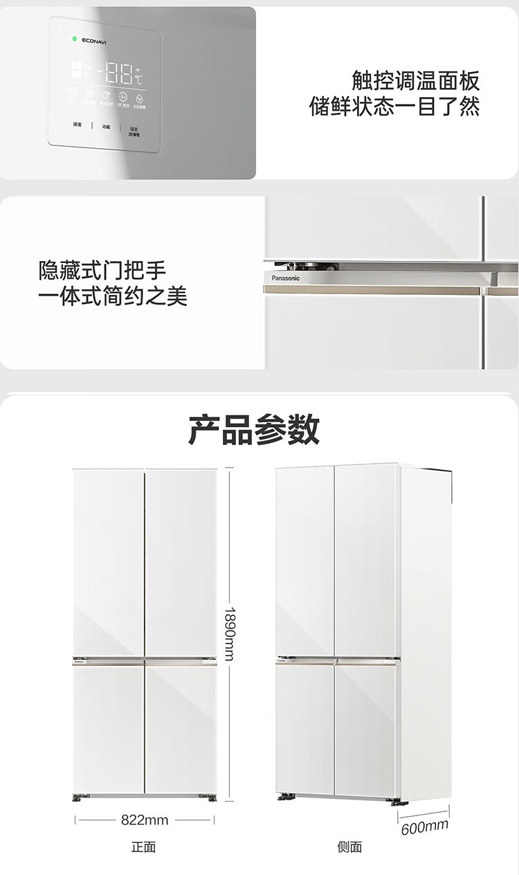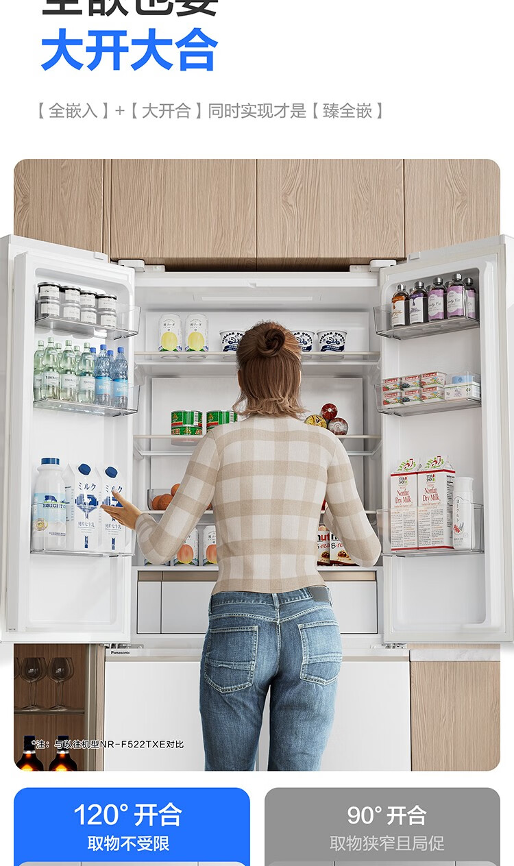 Двухдверный холодильник Panasonic объемом 510 литров, ультратонкий 600 мм, полностью плоский встроенный автоматический генератор льда и самоочистка, стерилизация ионами серебра и удаление запаха -3, микрозаморозка для сохранения свежести, широкоугольное открывание на 120° NR-D521CX-N, элегантное золото