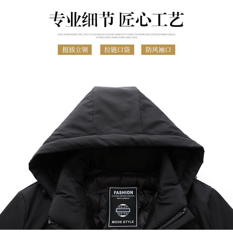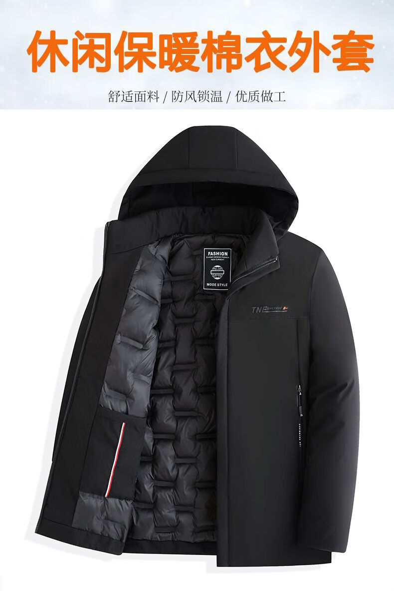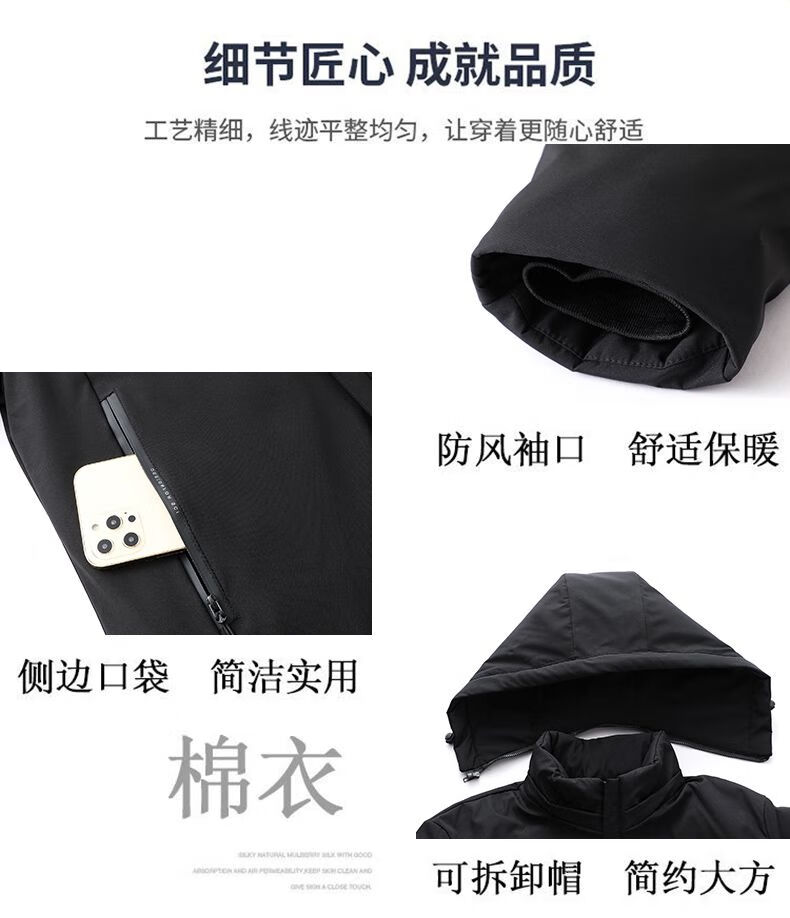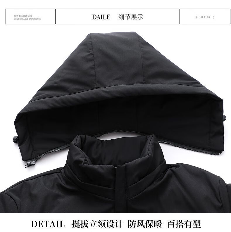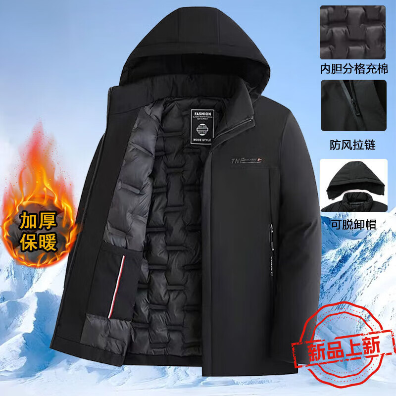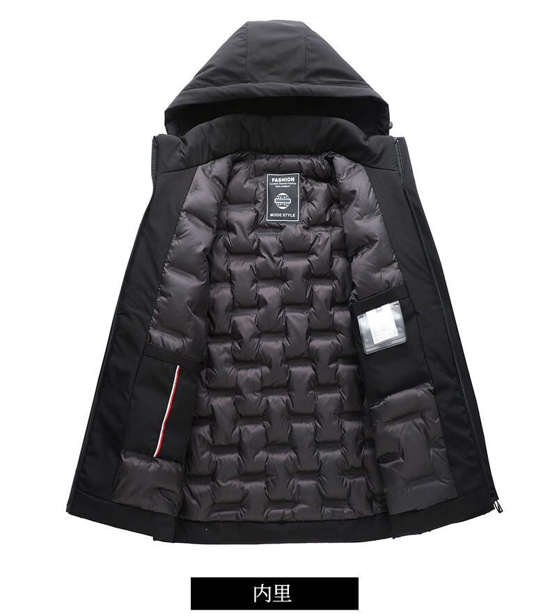 Playboy cotton coat men's removable hooded high-end cotton coat thickened warm hooded cold-proof fashionable casual men's cotton coat black 2XL recommended 125-140Jin Jin equals 0.5 kg