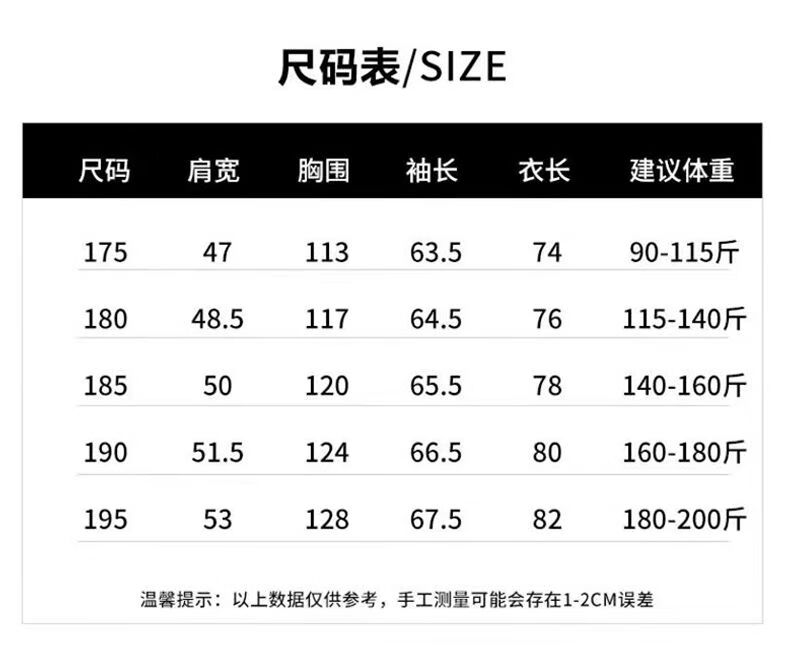 China (cm) 165 / 88-90 170 / 96-98 175 / 108-110 180 / 118-122 185 / 126-130
