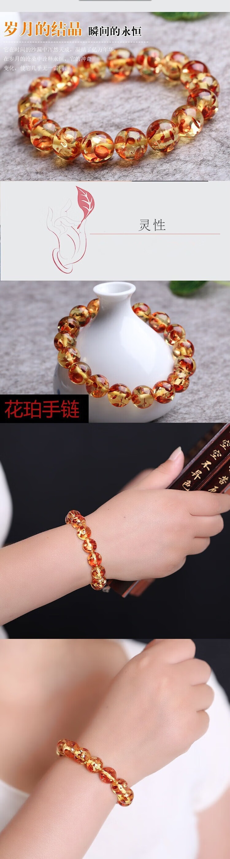 Weiyang beeswax bracelet, amber bracelet, flower amber bracelet with national inspection certificate, men and women, 20mm, 0g