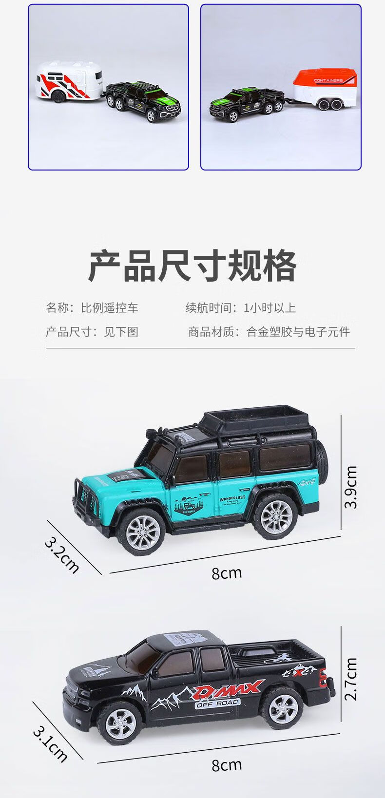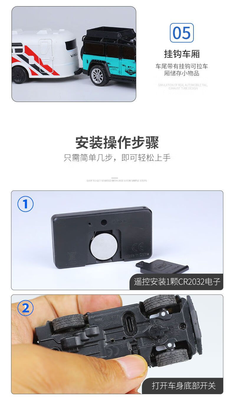 Shantou Lincun 2.4G pocket remote control car 1 64 alloy model mini simulation toy car with light adjustable speed children's car white Hengguan off-road_Hengguan alloy car without trailer + screwdriver