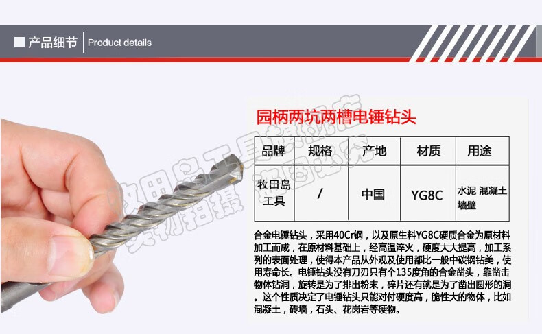 Tajima Wu Tao Mu impact electric hammer drill bit 6mm, two pits, two slots, four pits, square handle, round handle 6cm, concrete wall penetration, round handle 4X110MM