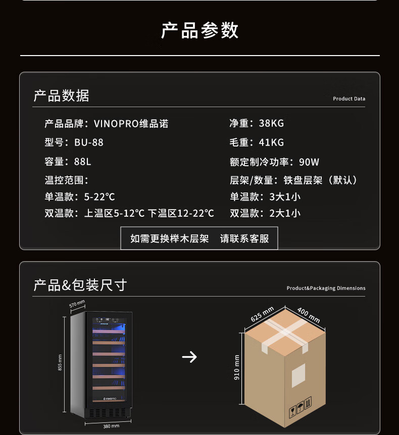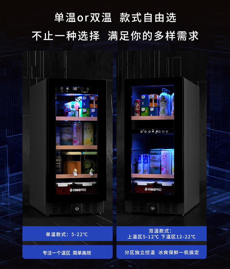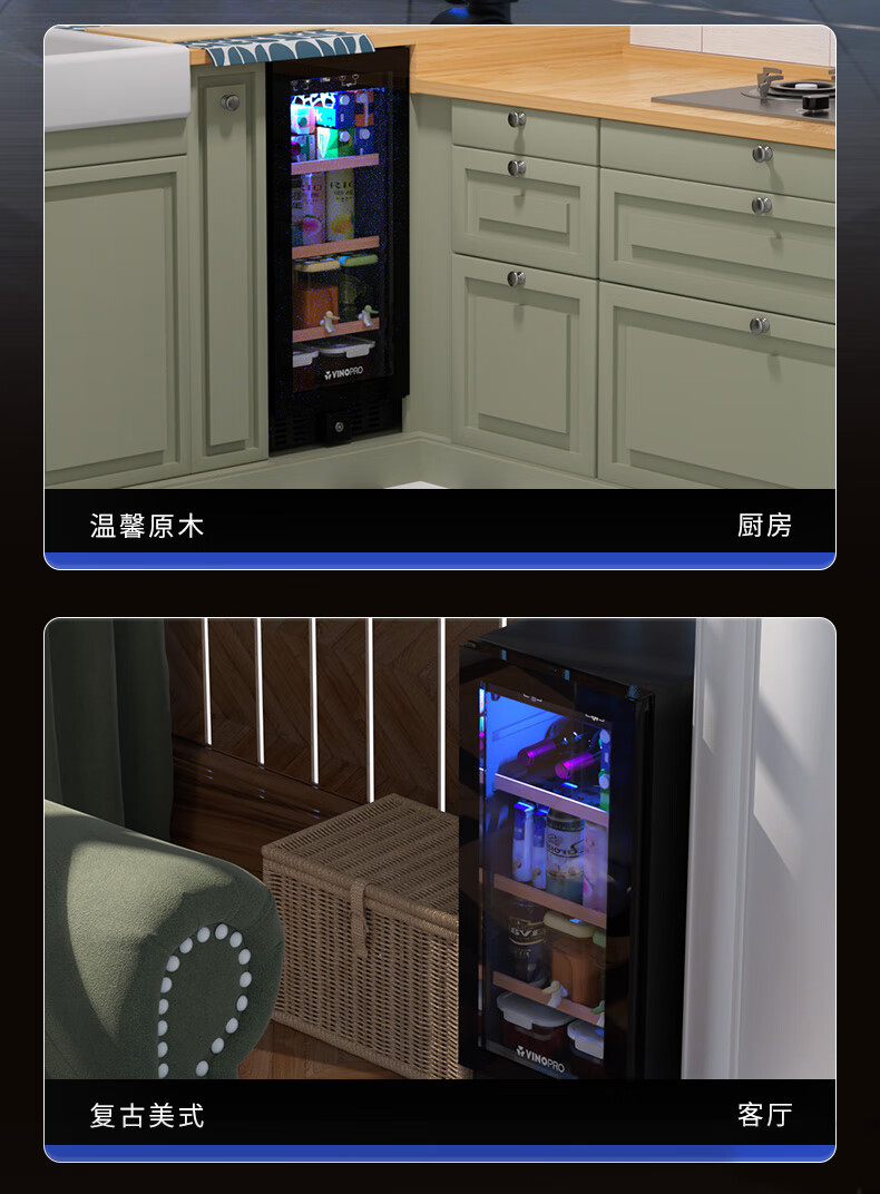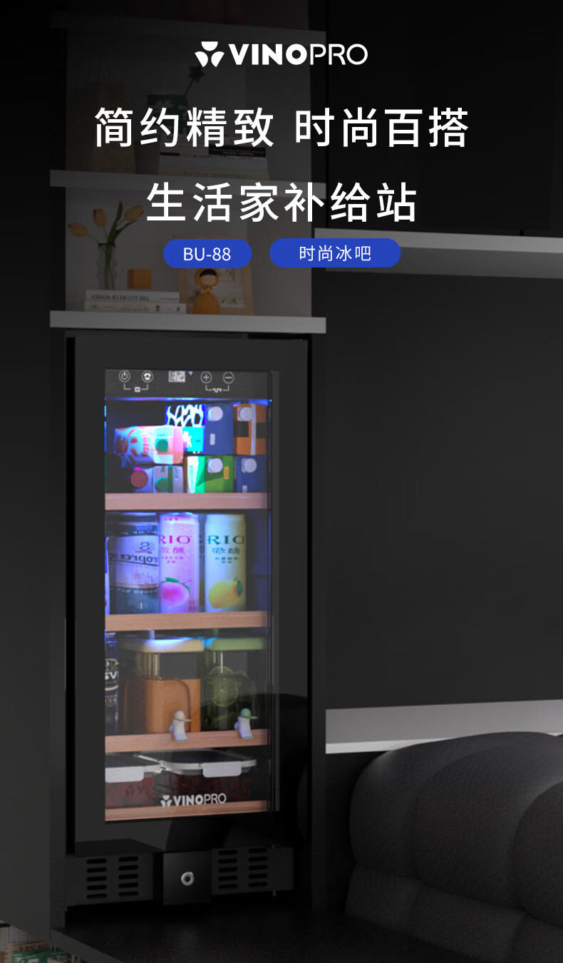 VINOPRO/BU-88 red wine cabinet embedded small air-cooled constant temperature tea household double-door refrigerator ice bar black 88L
