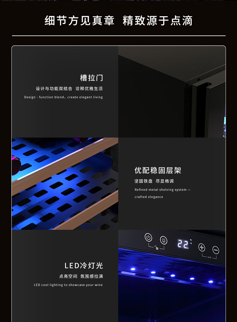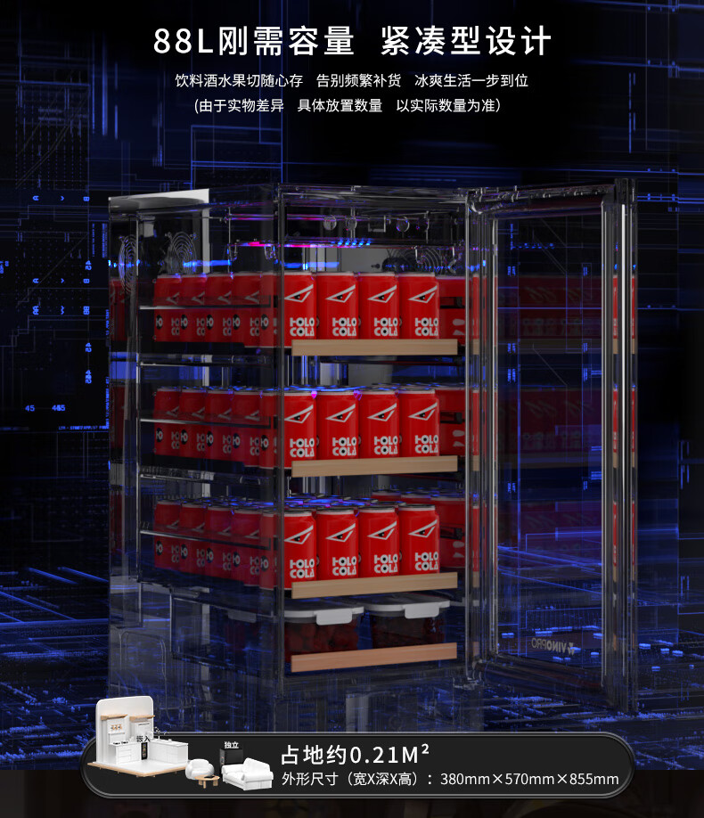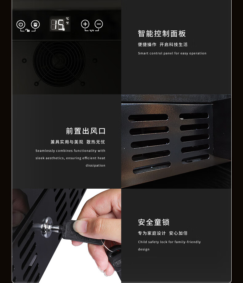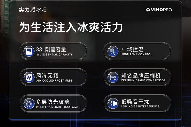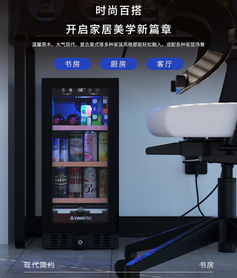 VINOPRO/BU-88 red wine cabinet embedded small air-cooled constant temperature tea household double-door refrigerator ice bar black 88L