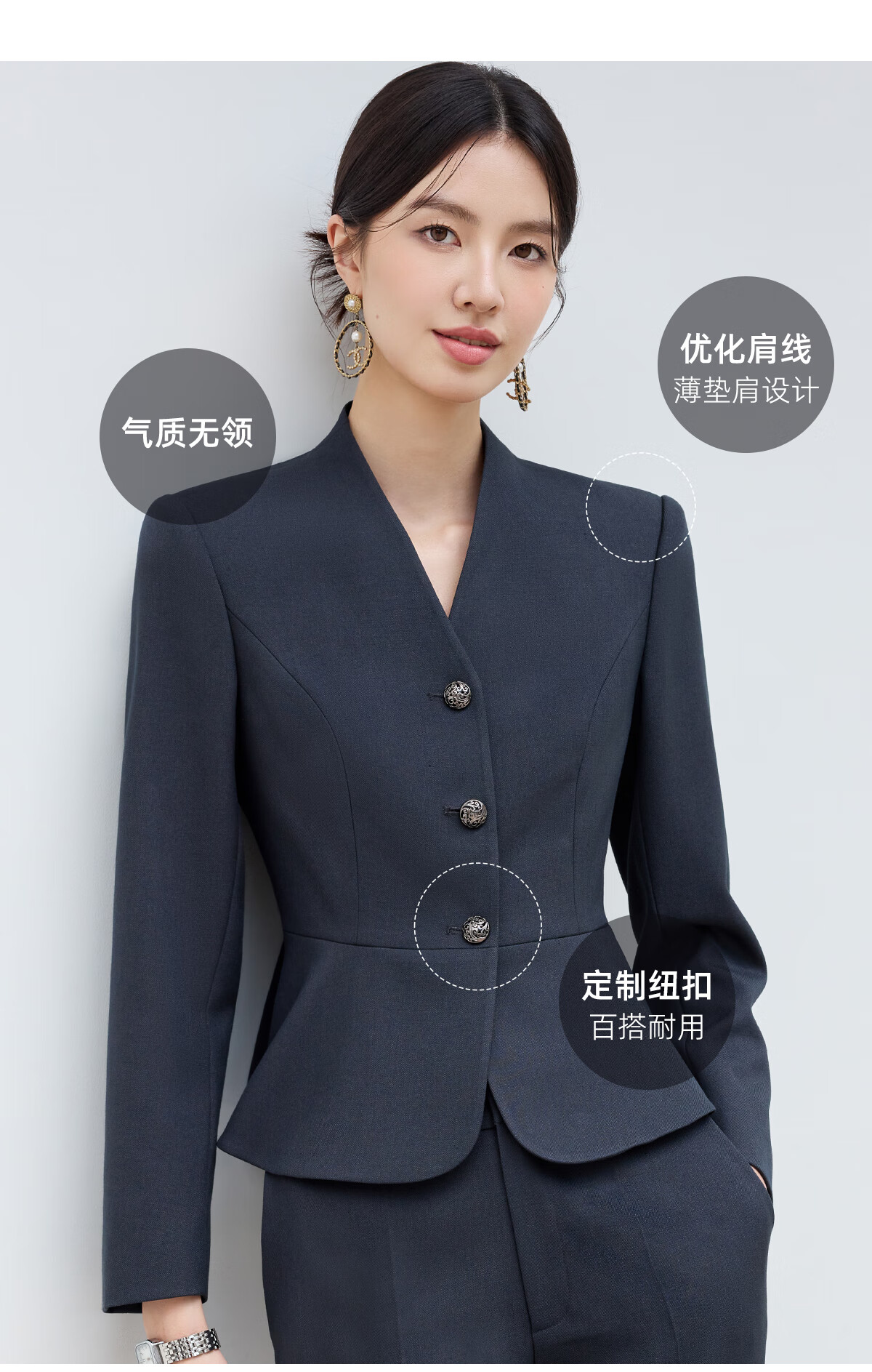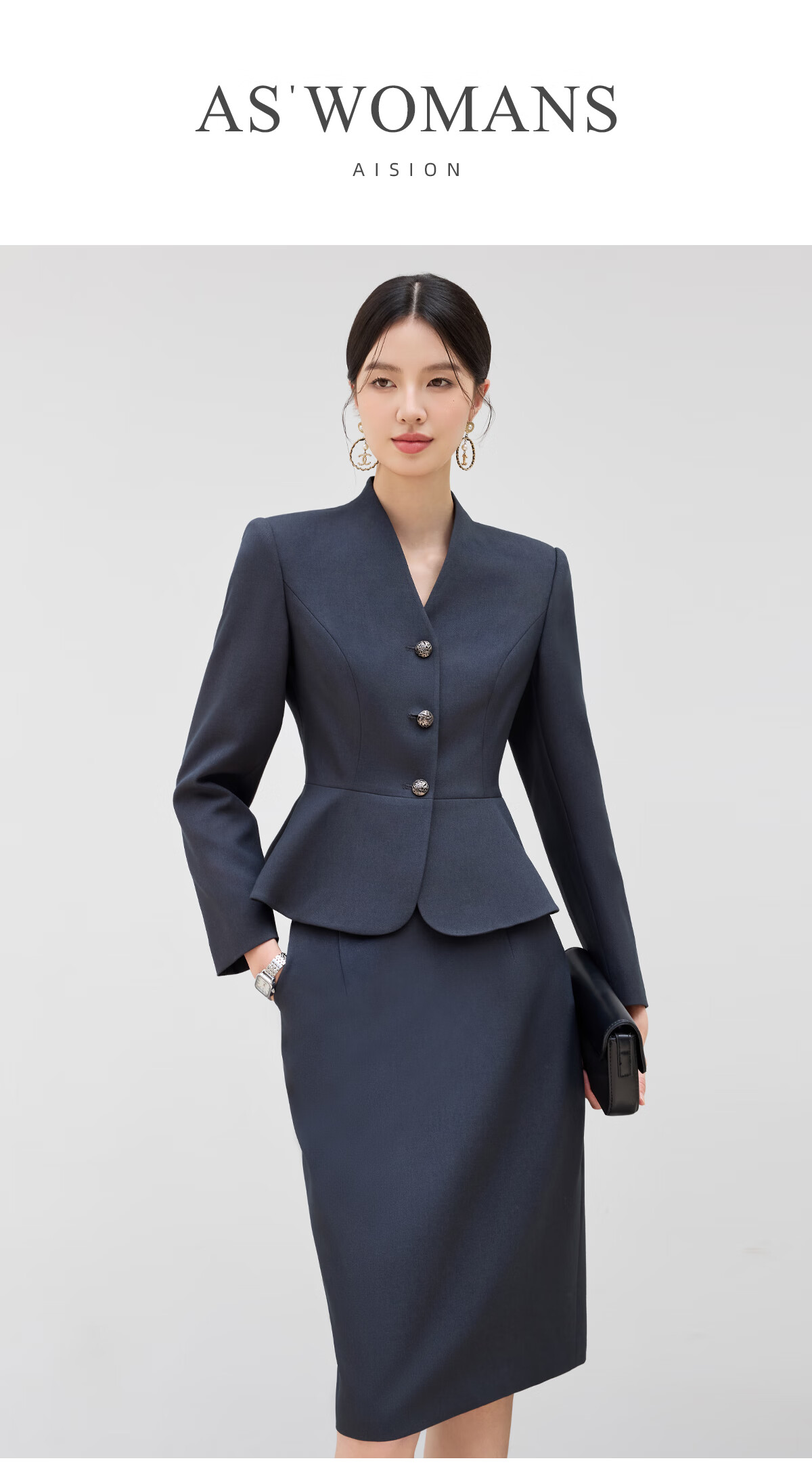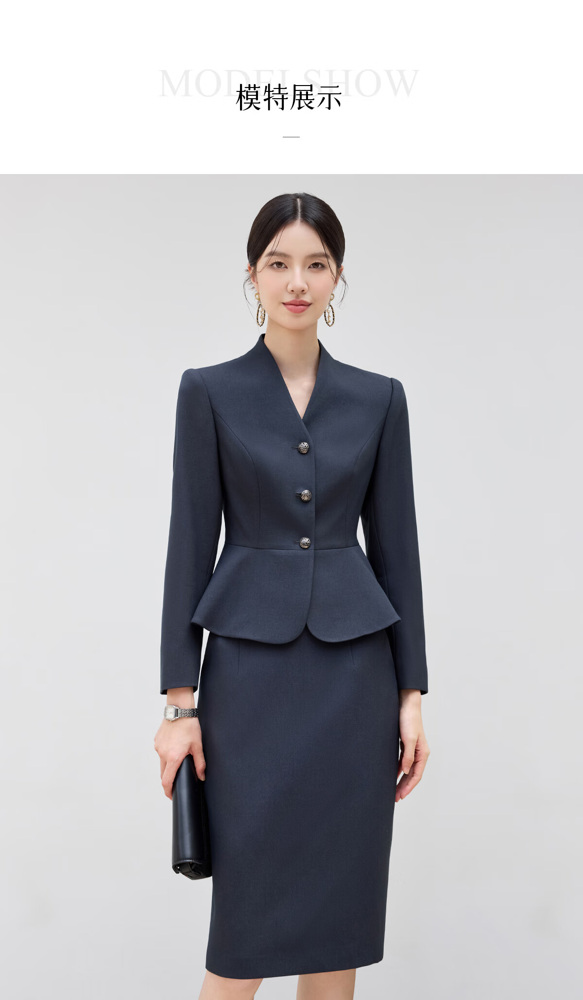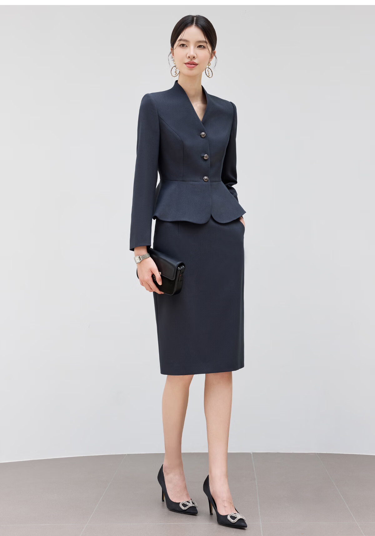黛维亚2025新青灰色西装套裙女秋气质显瘦酒店前台接待工服珠宝店职业装 藏青色西服+半裙 XL