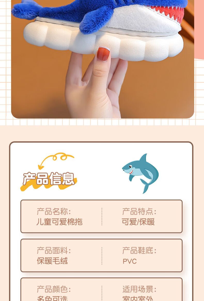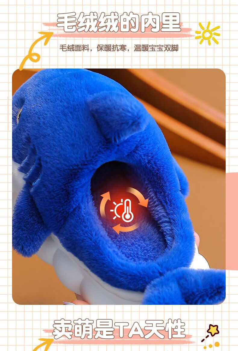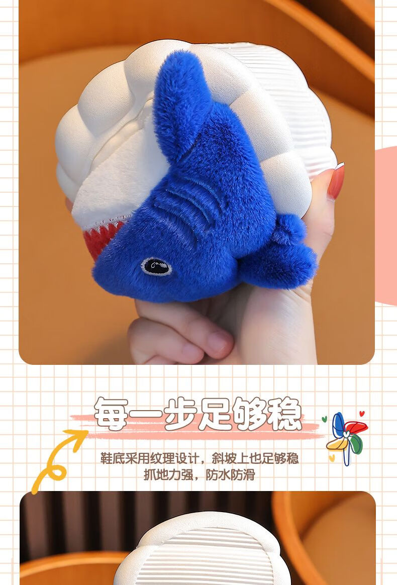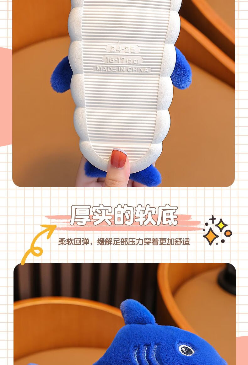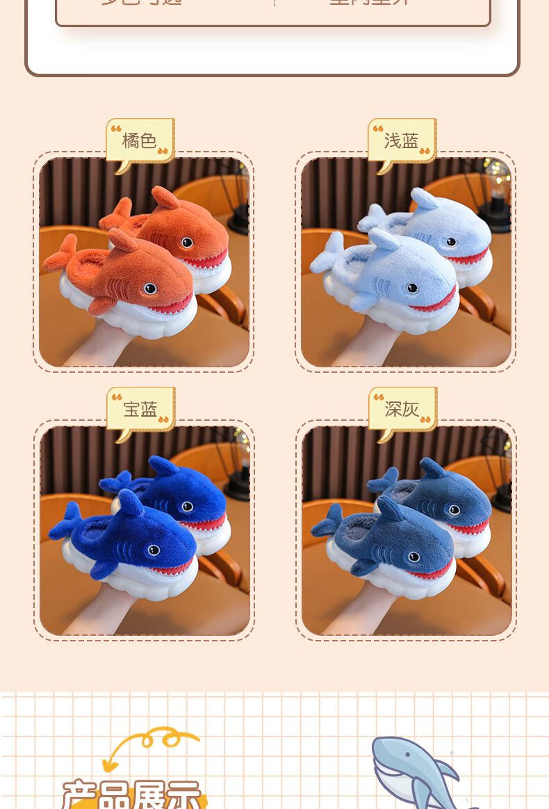 G.duck little yellow duck children's cotton slippers for boys winter cartoon shark bag and furry shoes for children baby home shoes parent-child sapphire blue slippers size 24 25 inner length 15CM suitable for 1-2 years old