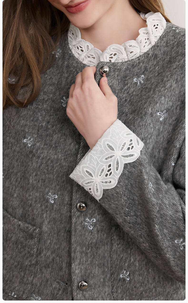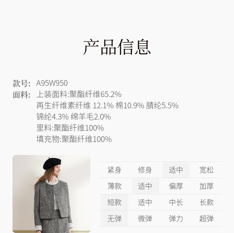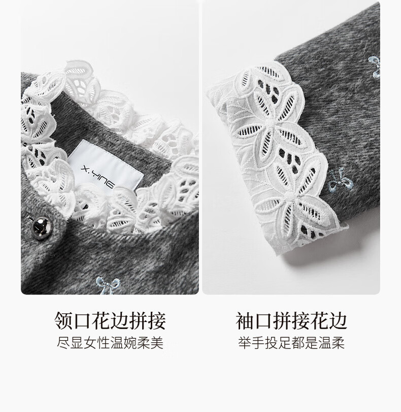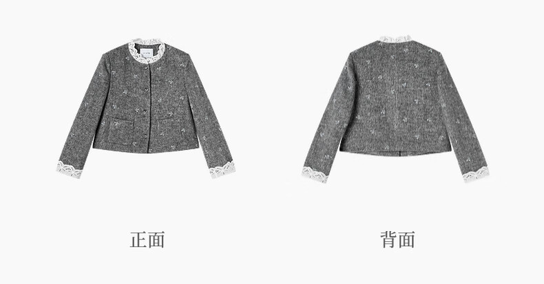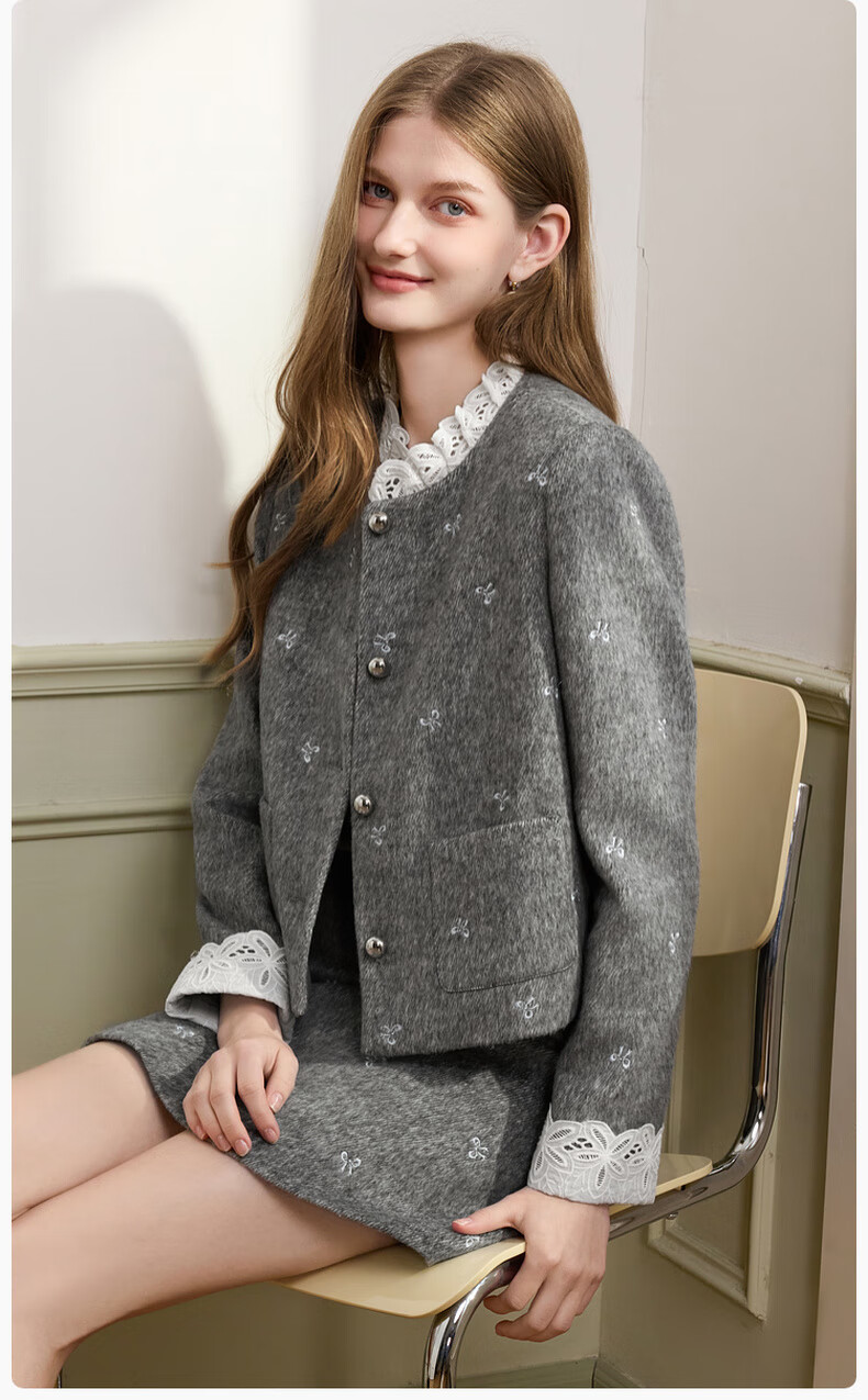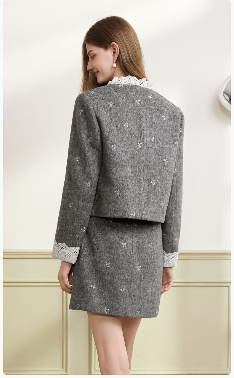 Xiangying Xiaoxiangfeng gray woolen jacket women's suit 2025 winter new miu style short skirt two-piece set light gray M