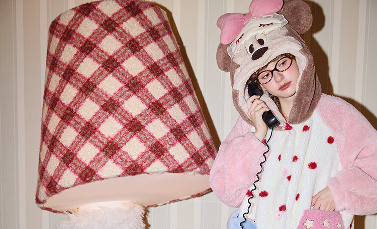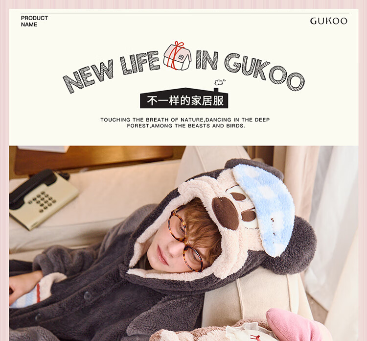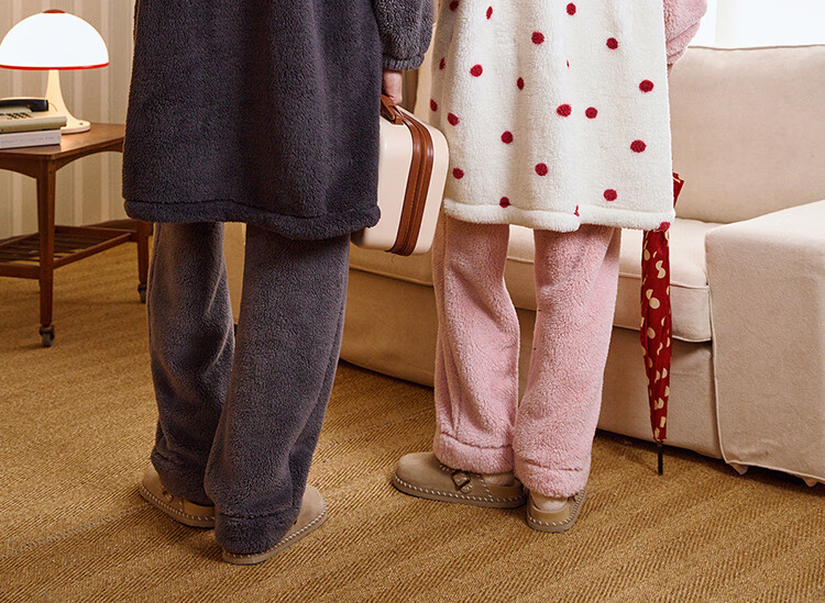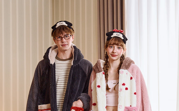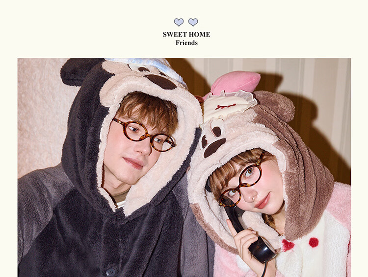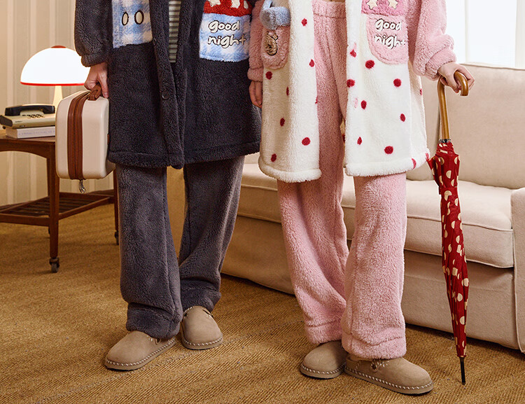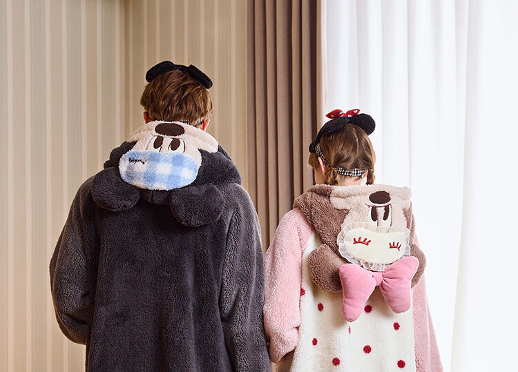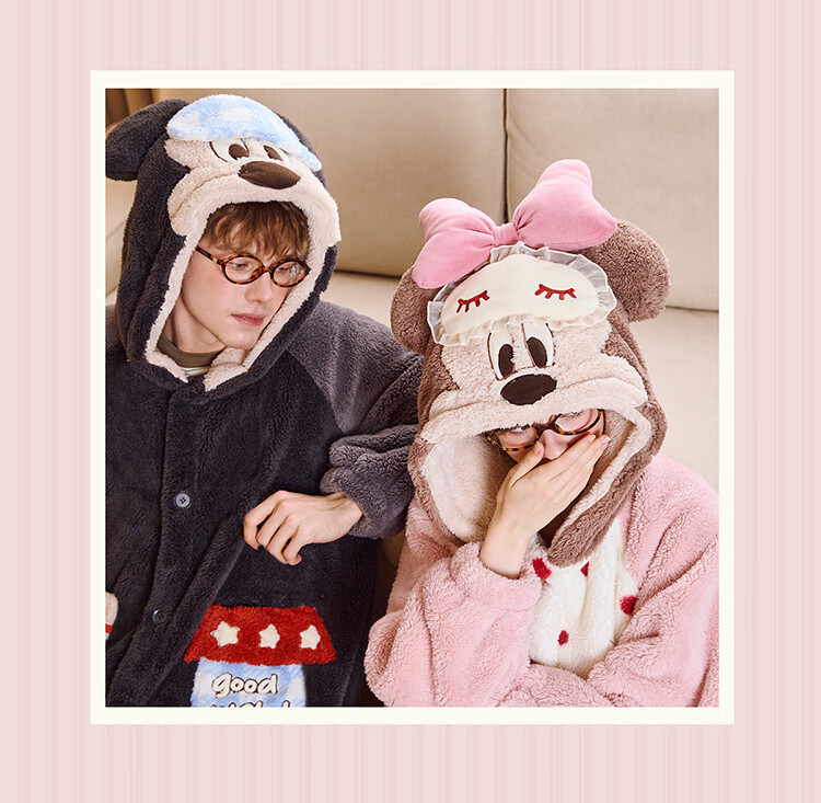 Gukoo Couple Pajamas Winter Coral Velvet Warm Disney Co-branded Raglan Sleeve Women's Home Clothes Set Men's Pajamas D Bear Black Men's Suit XL