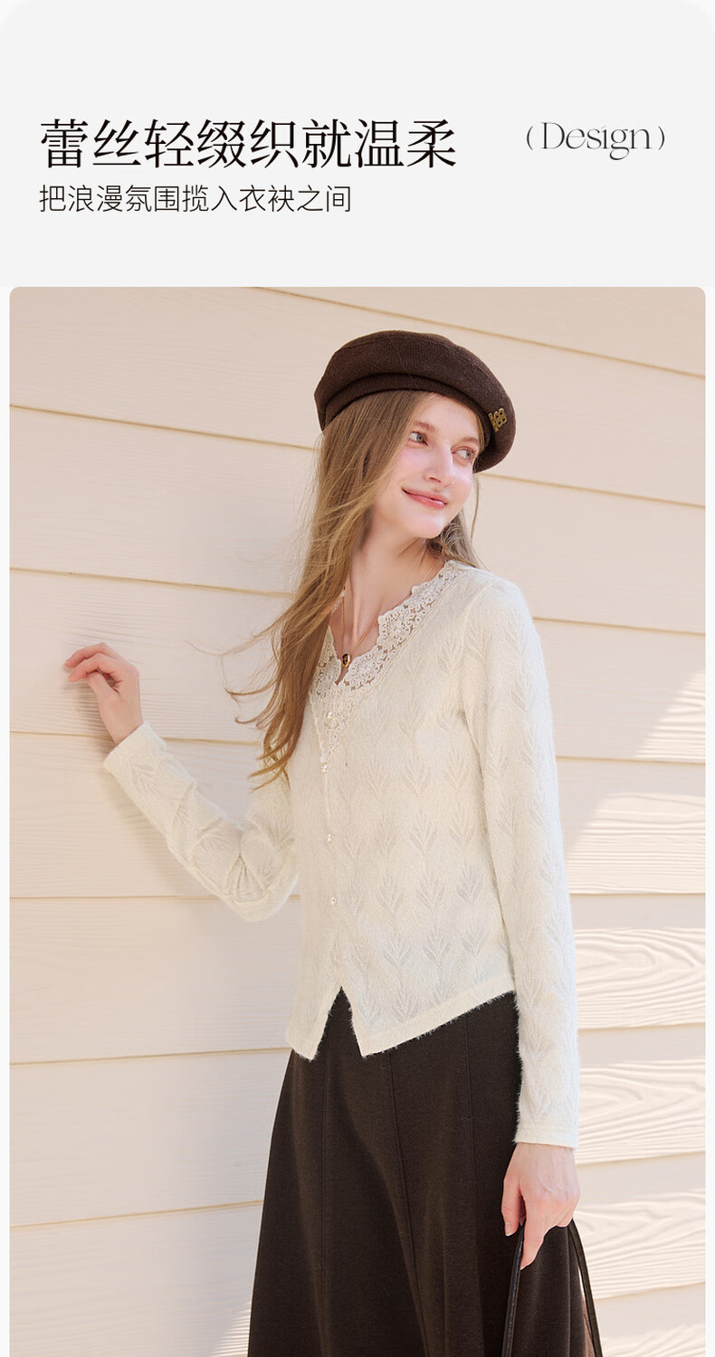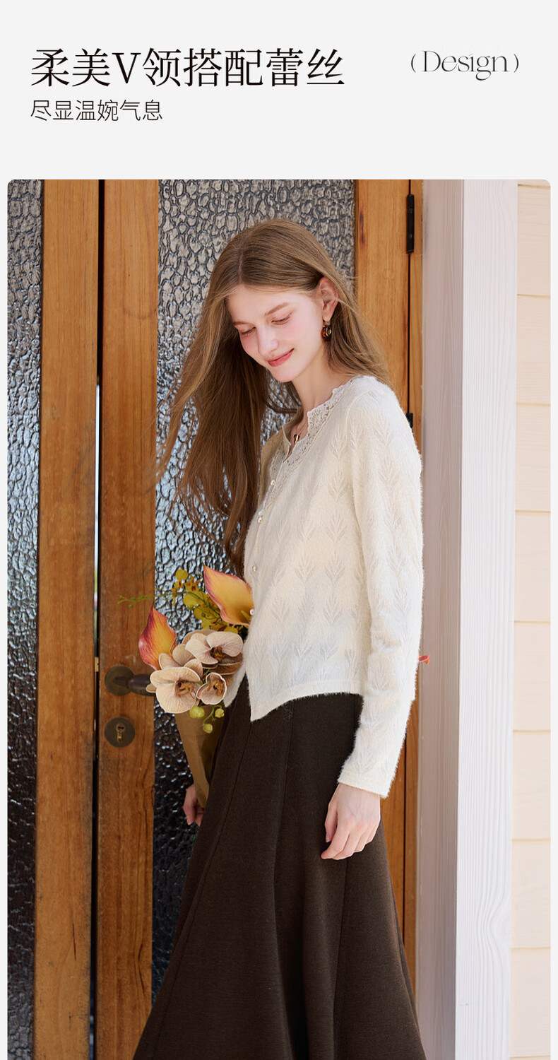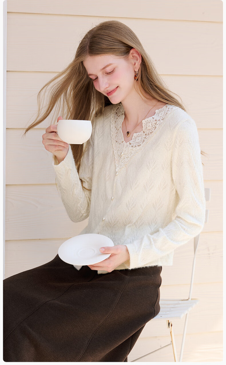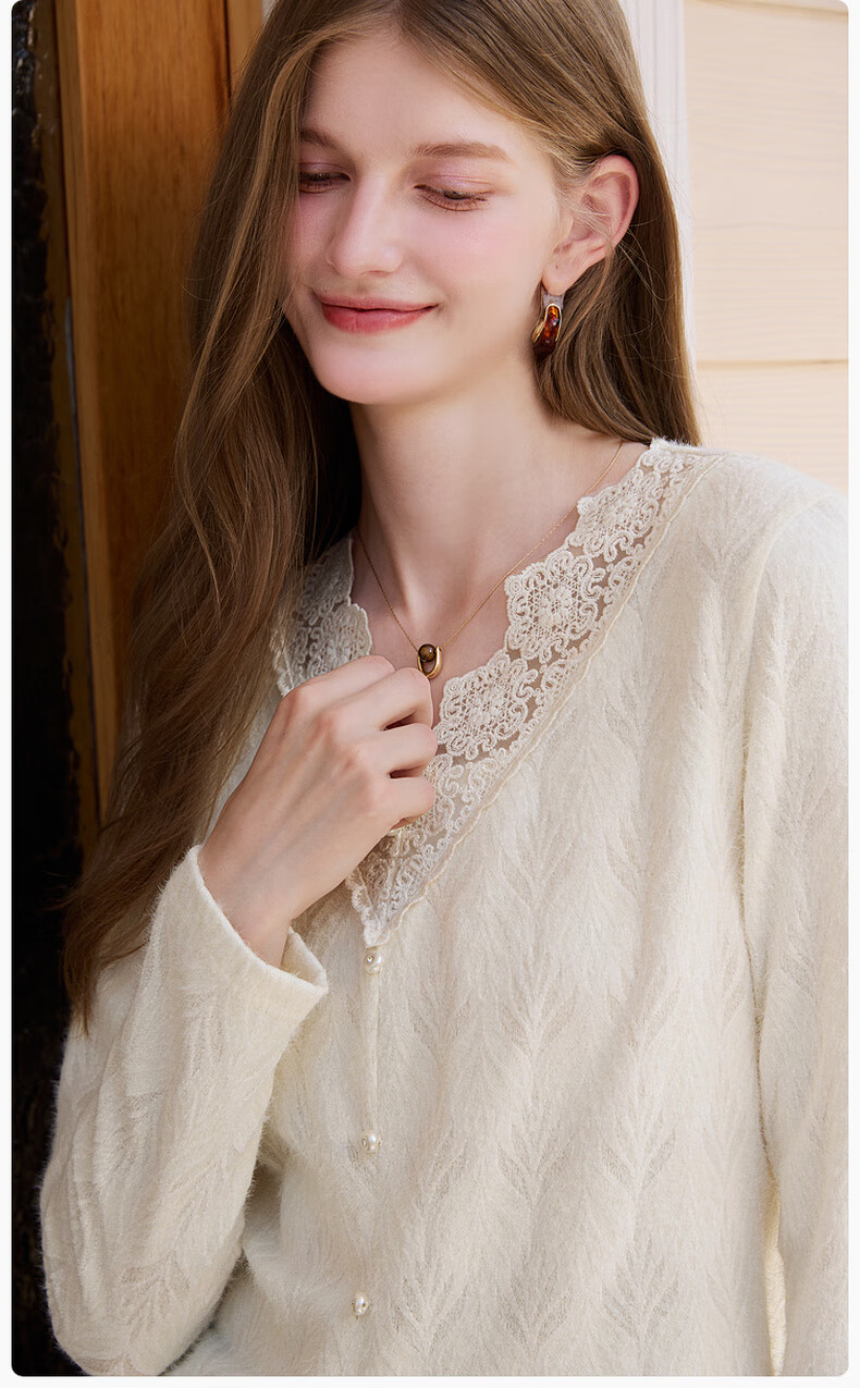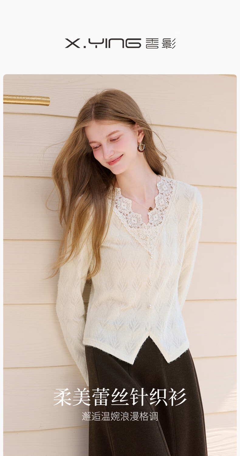 Xiangying Lace V-neck Shirt Women's Long Sleeve 2025 Winter New Temperament Waist Design French Knitted Top Lubai S 155/80A/85-95Jin Jin is equal to 0.5 kg