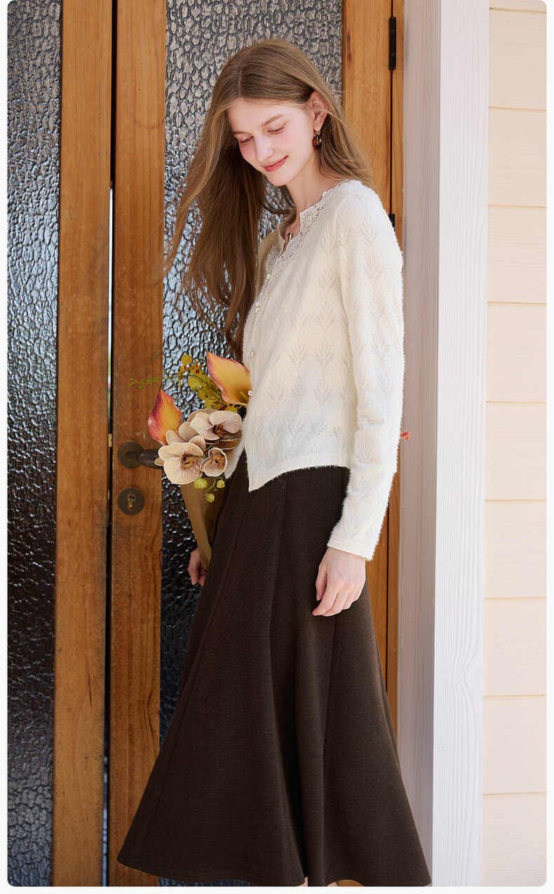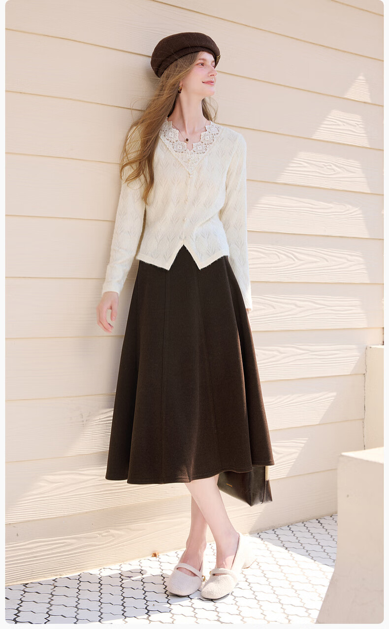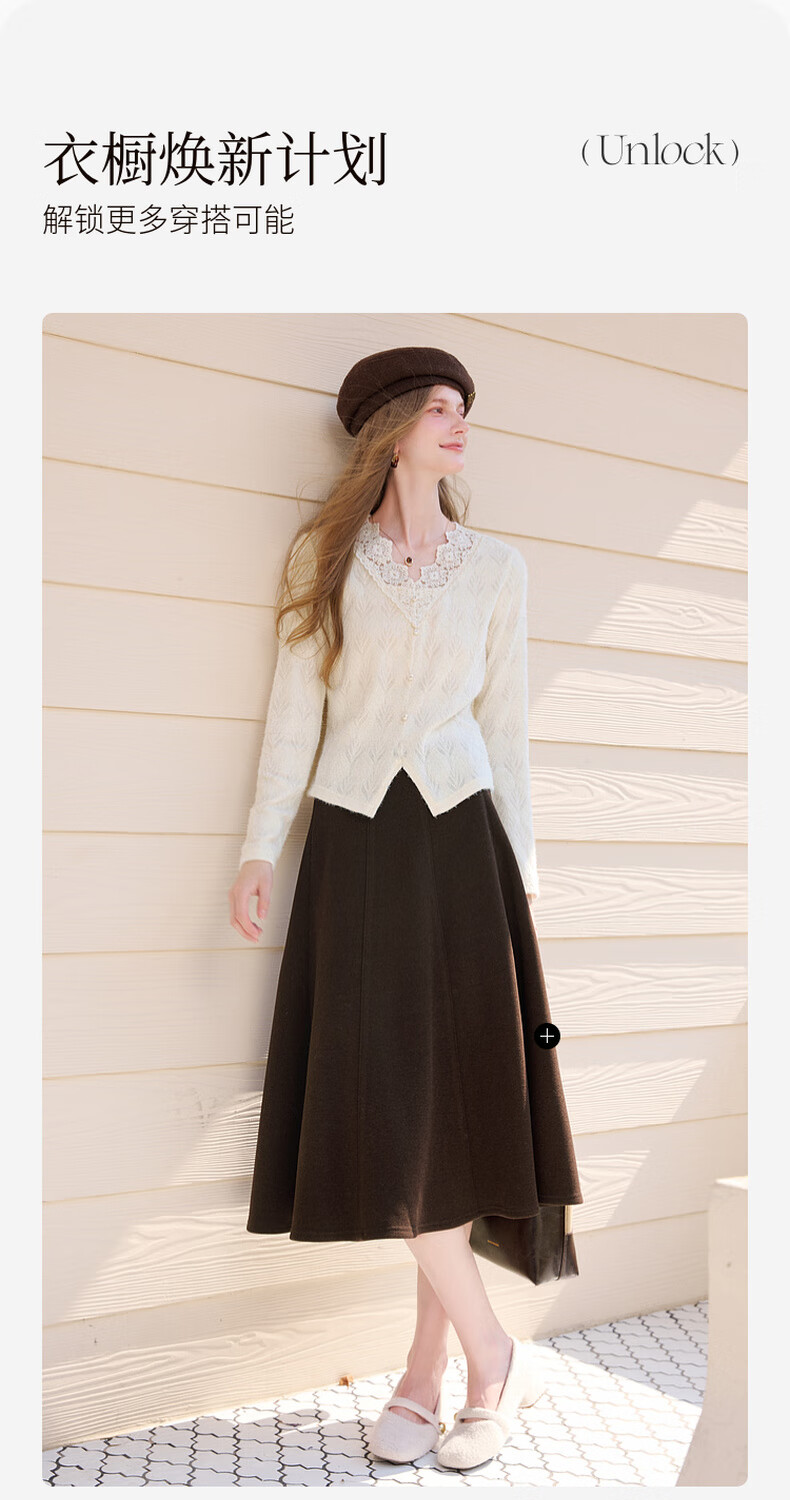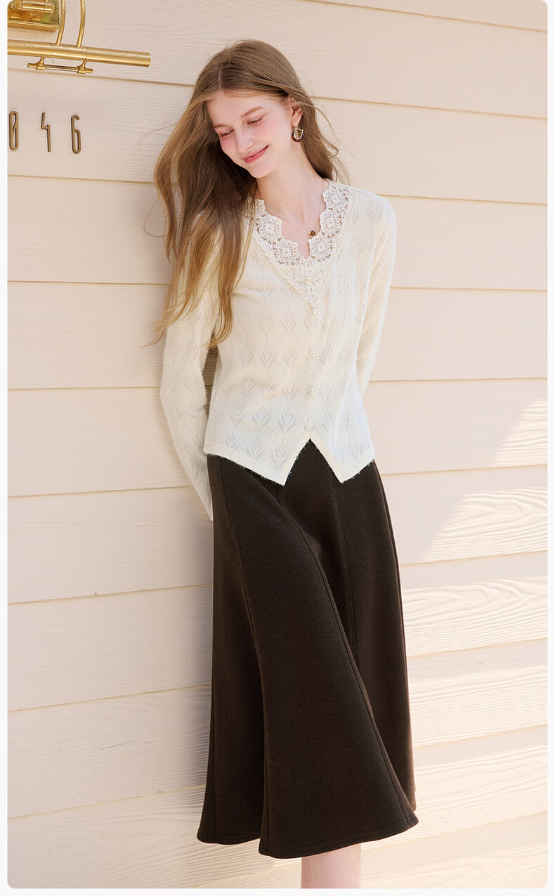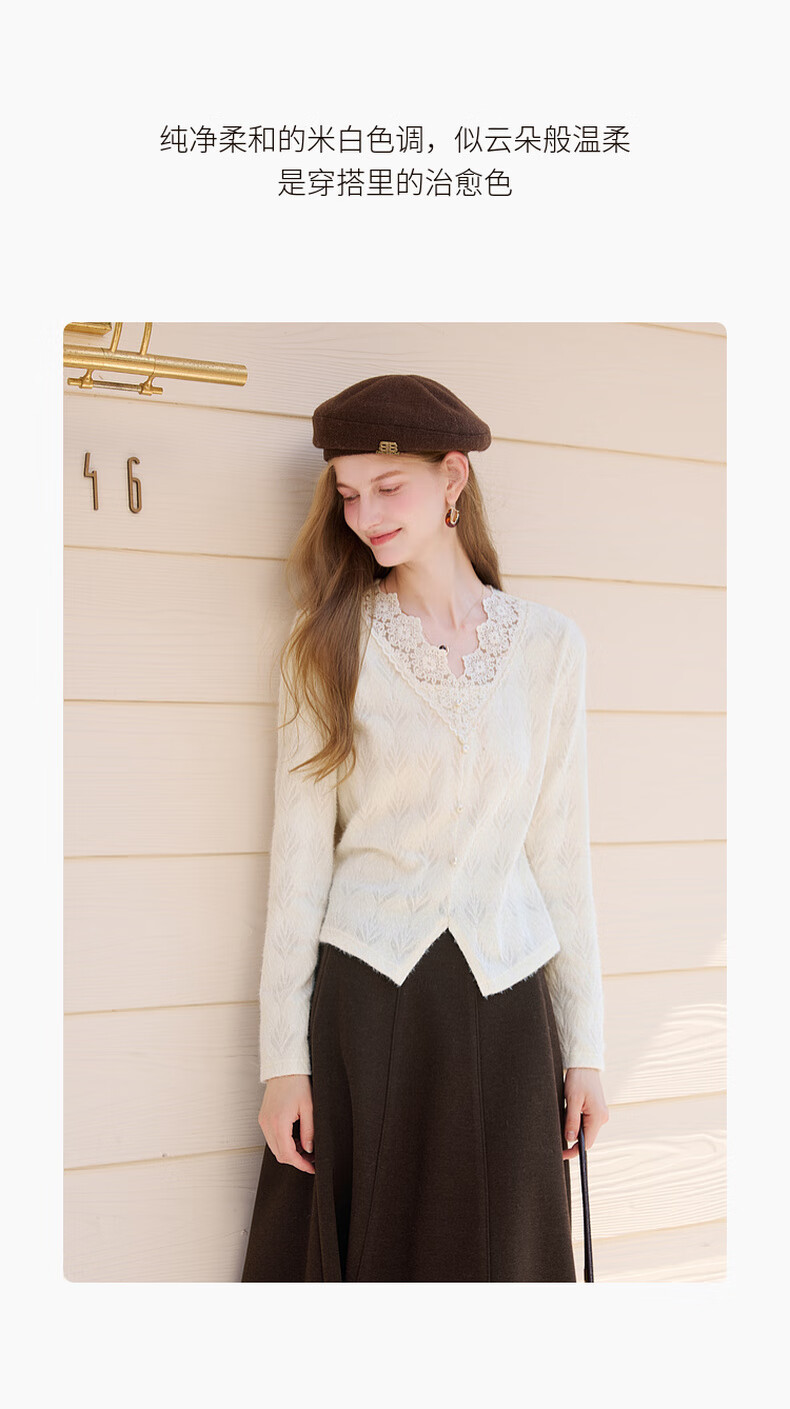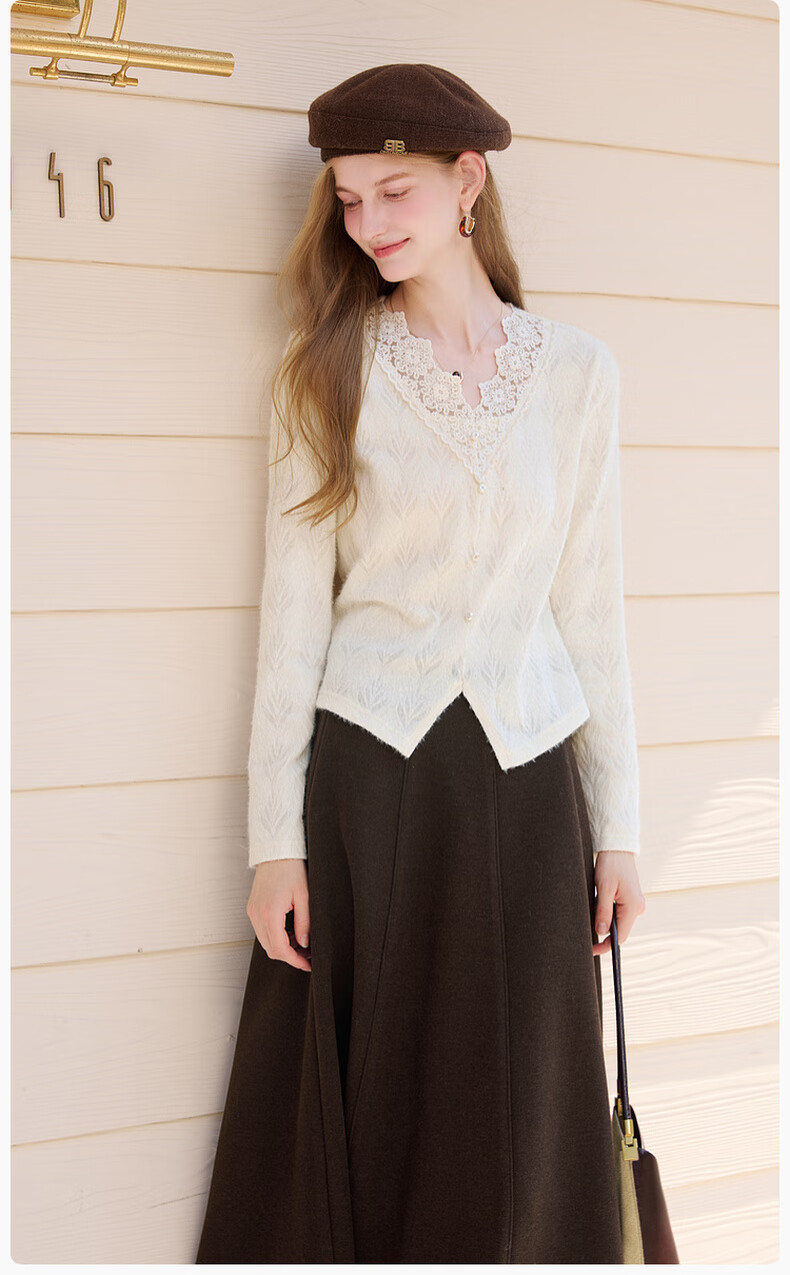 Xiangying Lace V-neck Shirt Women's Long Sleeve 2025 Winter New Temperament Waist Design French Knitted Top Lubai S 155/80A/85-95Jin Jin is equal to 0.5 kg